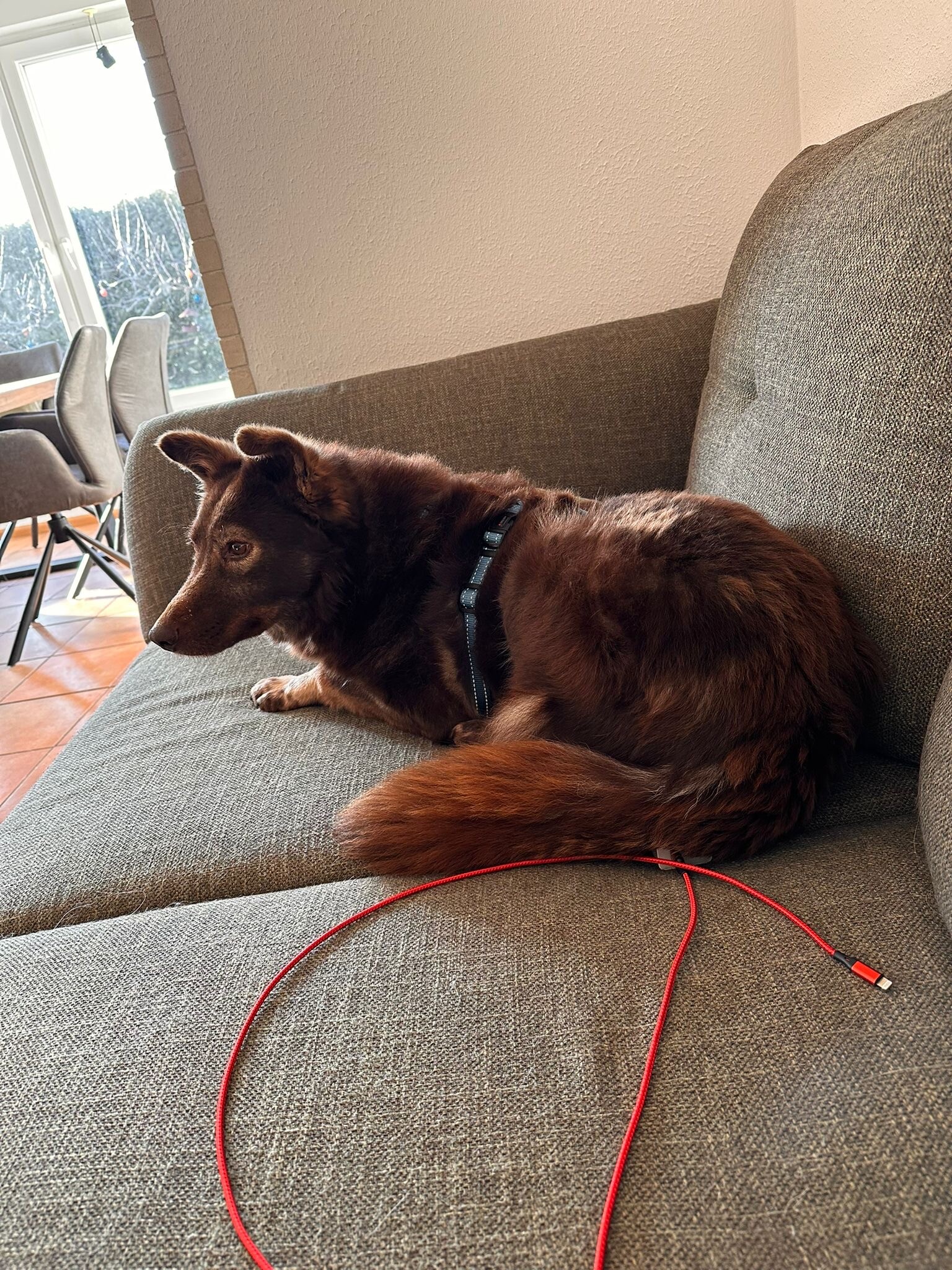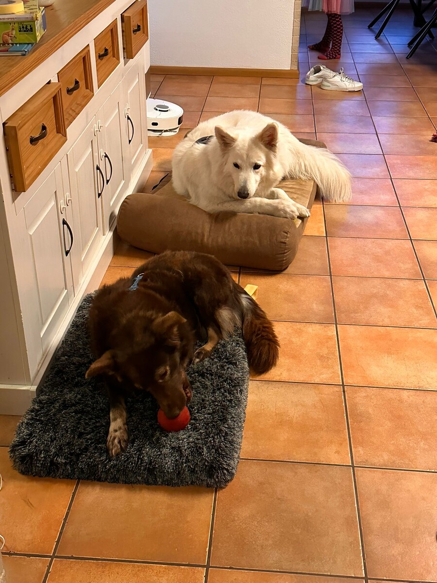 Im Pflegehaushalt lebt Jolie problemlos mit zwei Katzen und einer Hündin zusammen – sie zeigt sich dabei absolut verträglich und sozial. Auch Kinder kennt sie: Wird es ihr zu wild, zieht sie sich einfach zurück, statt hektisch oder unsicher zu reagieren.