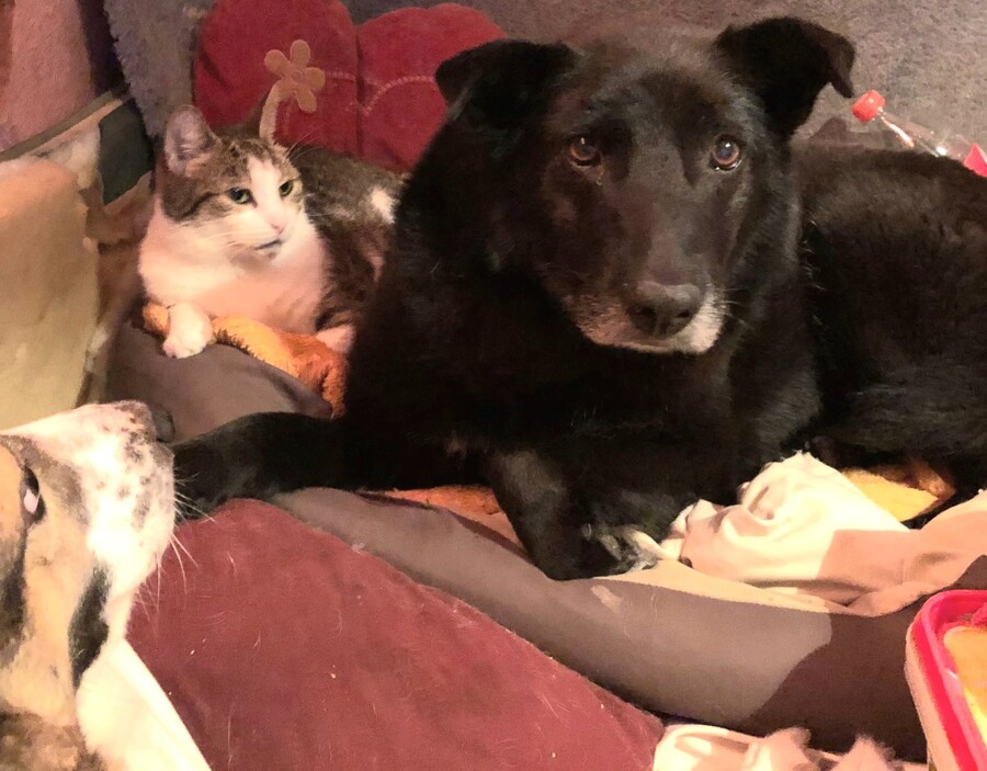 Die liebenswerte Hündin Hope (geschätzt 2017 geboren) hat eine Schulterhöhe von 55cm und ist kastriert. Hope hat viele Jahre voller Angst hinter sich, jetzt lebt sie bei ihrer Pflegestelle im Haus problemlos mit anderen Hunden und Katzen zusammen. Die gute Seele hatte öfter Mal die Gelegenheit, das Katzenfutter zu vertilgen, was noch auf ihren Hüften zu sehen ist, aber derzeit mit Bewegung und Futterkontrolle reguliert wird. Also: Diät läuft.