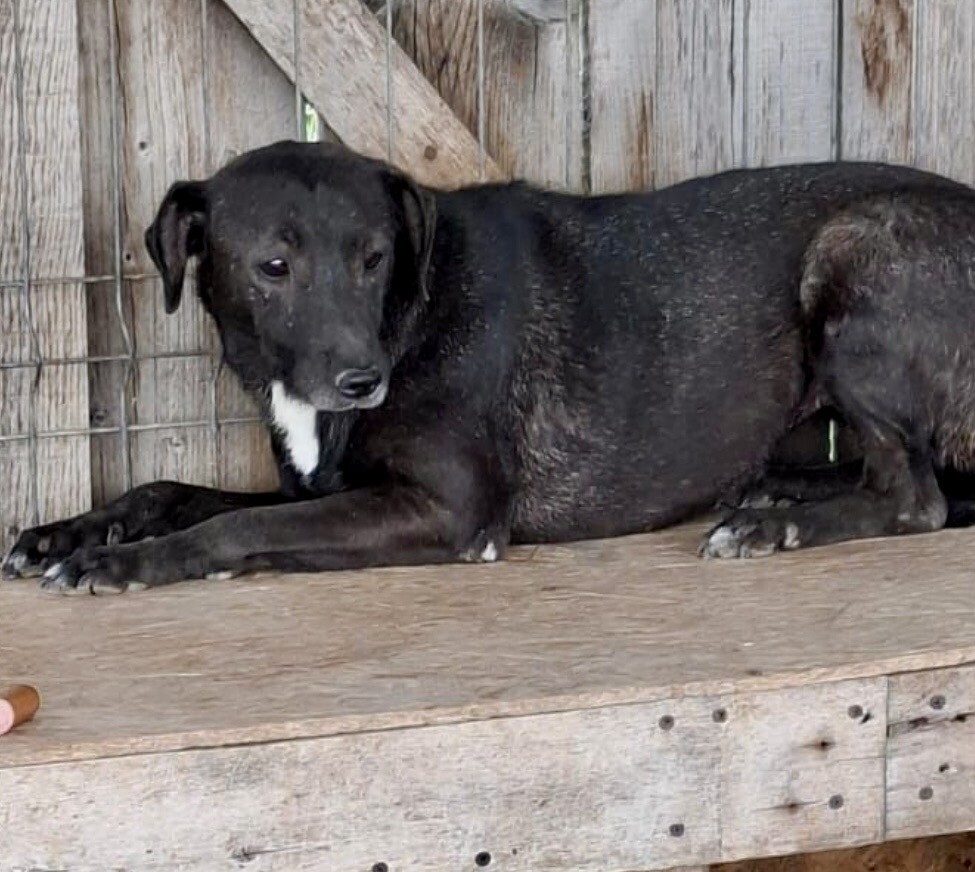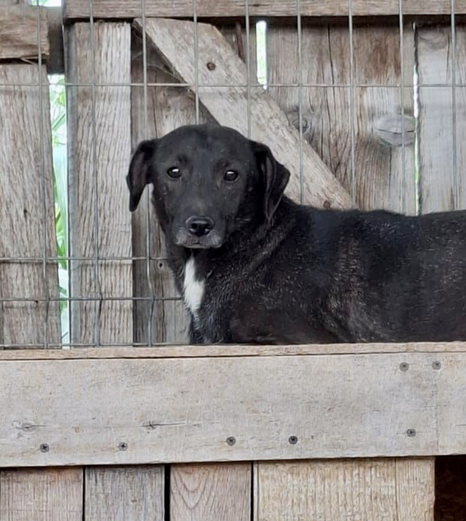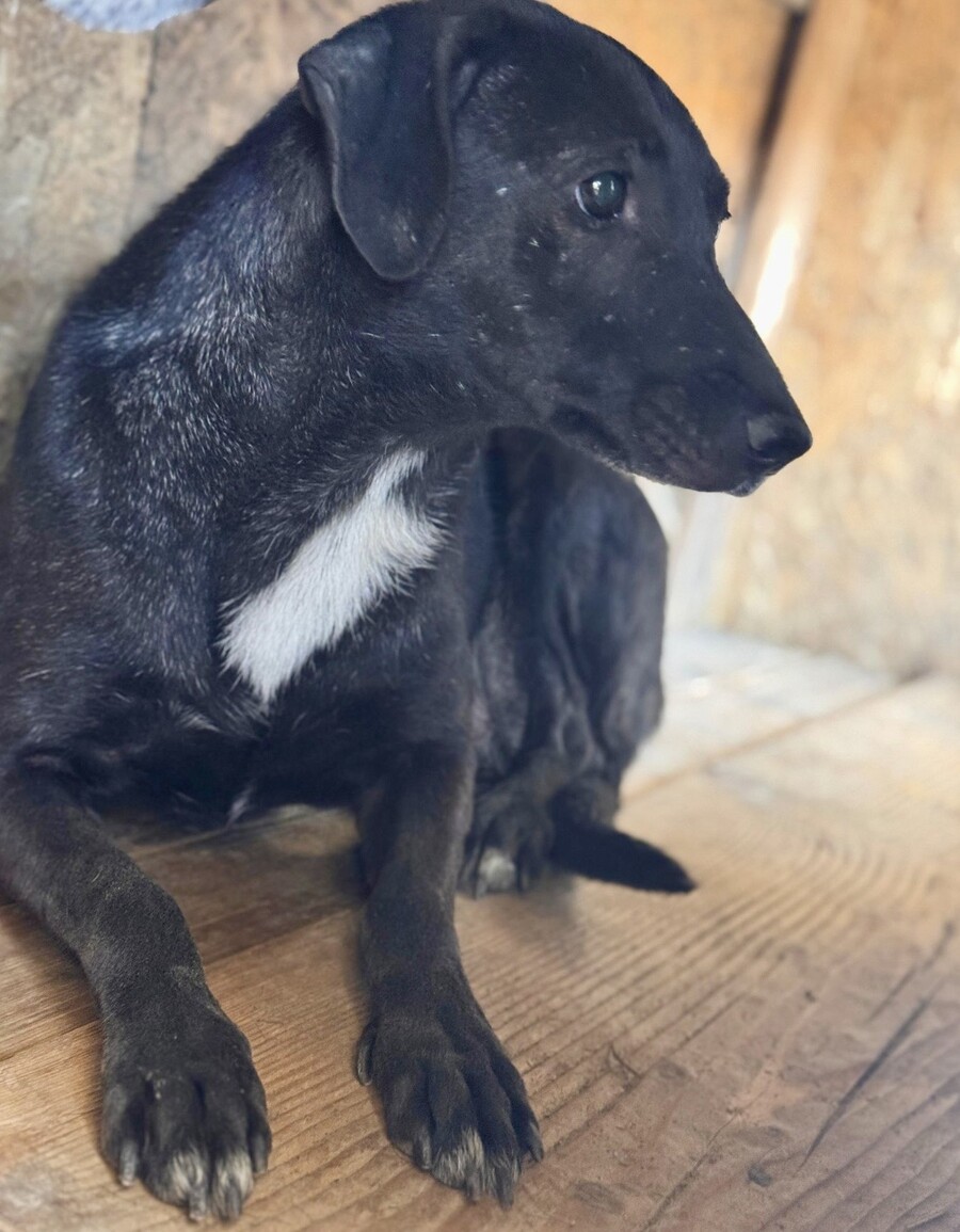 Linda, geboren 2018 und etwa 50 cm groß, gehört zu den Hündinnen, die sich ihr Leben lang eher im Hintergrund gehalten haben. Bei den ersten Besuchen lief sie weg und versteckte sich sofort. Jede Bewegung, jeder Blick schien ihr zu viel. Doch beim letzten Besuch – und nun auch im August 2025 – geschah etwas Kleines, aber Bedeutendes: Linda ließ sich außerhalb ihrer Hütte fotografieren.