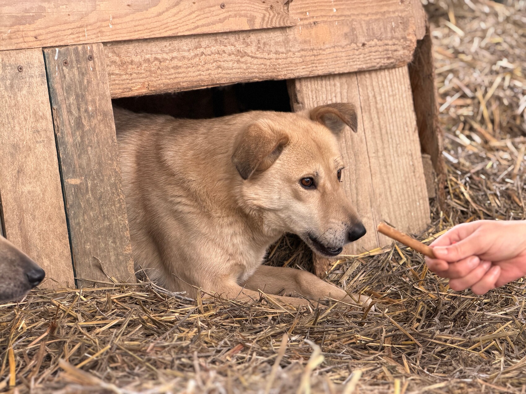 Wichtig zu wissen: Maya ist kein Goldie-Mix, auch wenn ihr sanfter Blick das vermuten lassen könnte. Und mit ihren rund acht Jahren gehört sie nicht mehr zu den Jüngsten – dafür aber zu den Hunden, die mit einer tiefen, reifen Zärtlichkeit lieben.