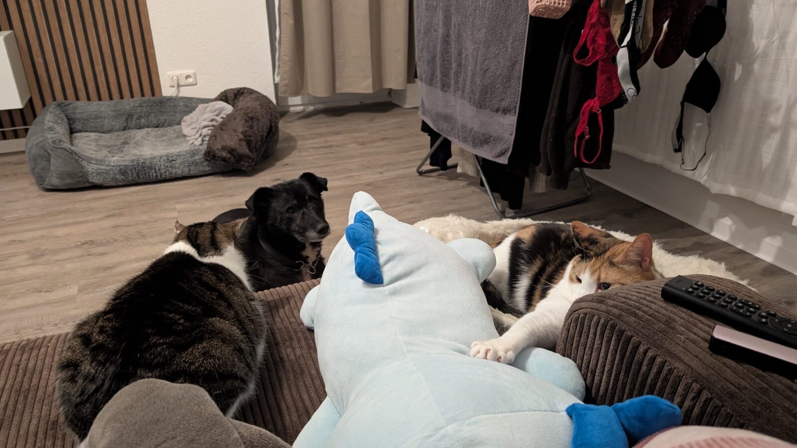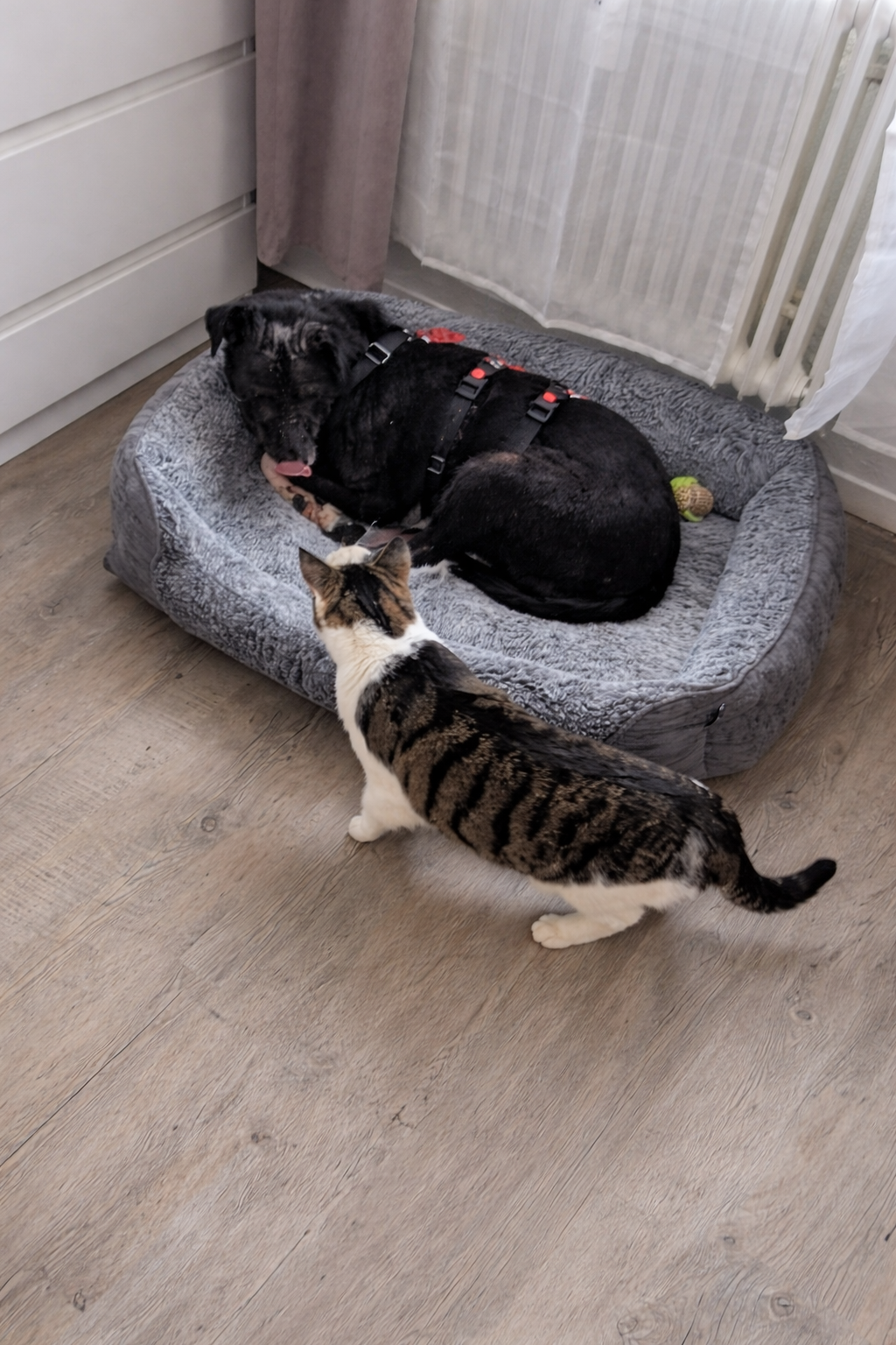 Mit anderen Hunden, Katzen und Kindern ist Liwi gut verträglich, wobei sie bei Kindern darauf angewiesen ist, nicht bedrängt zu werden. Sie entscheidet selbst, wann sie Nähe zulassen möchte.