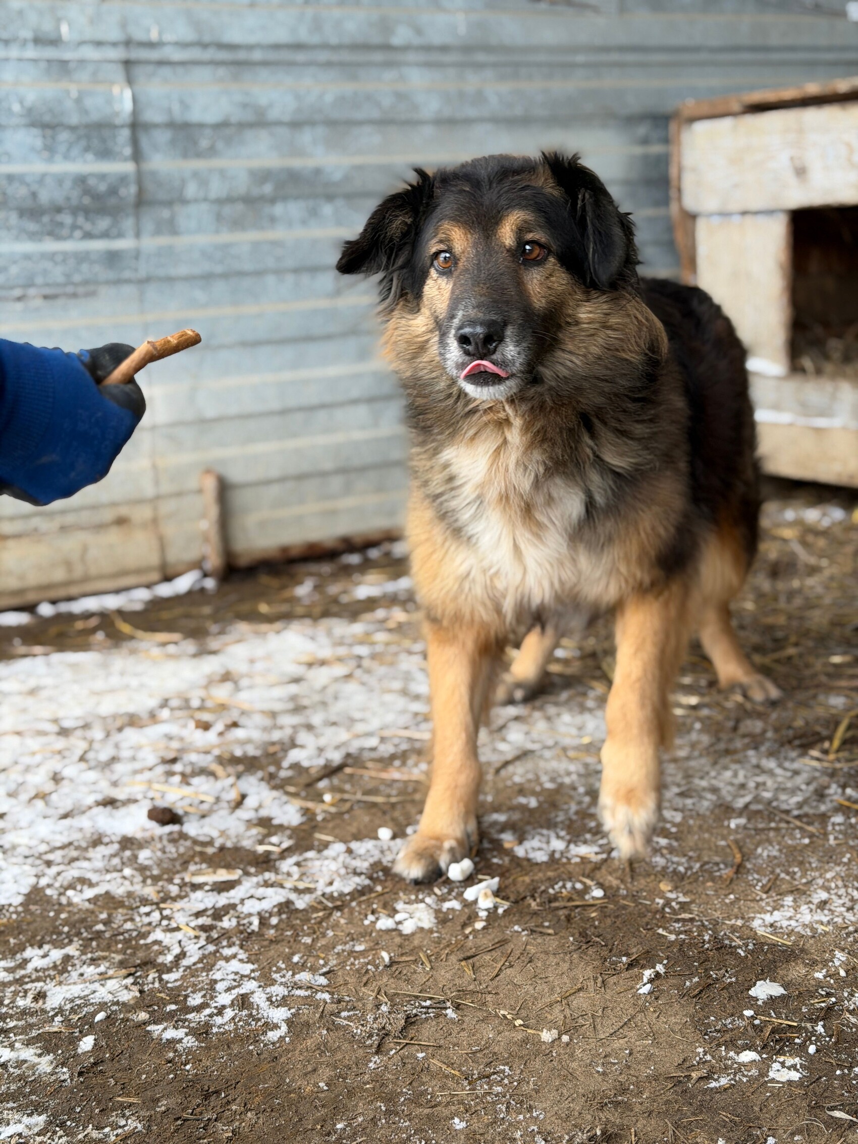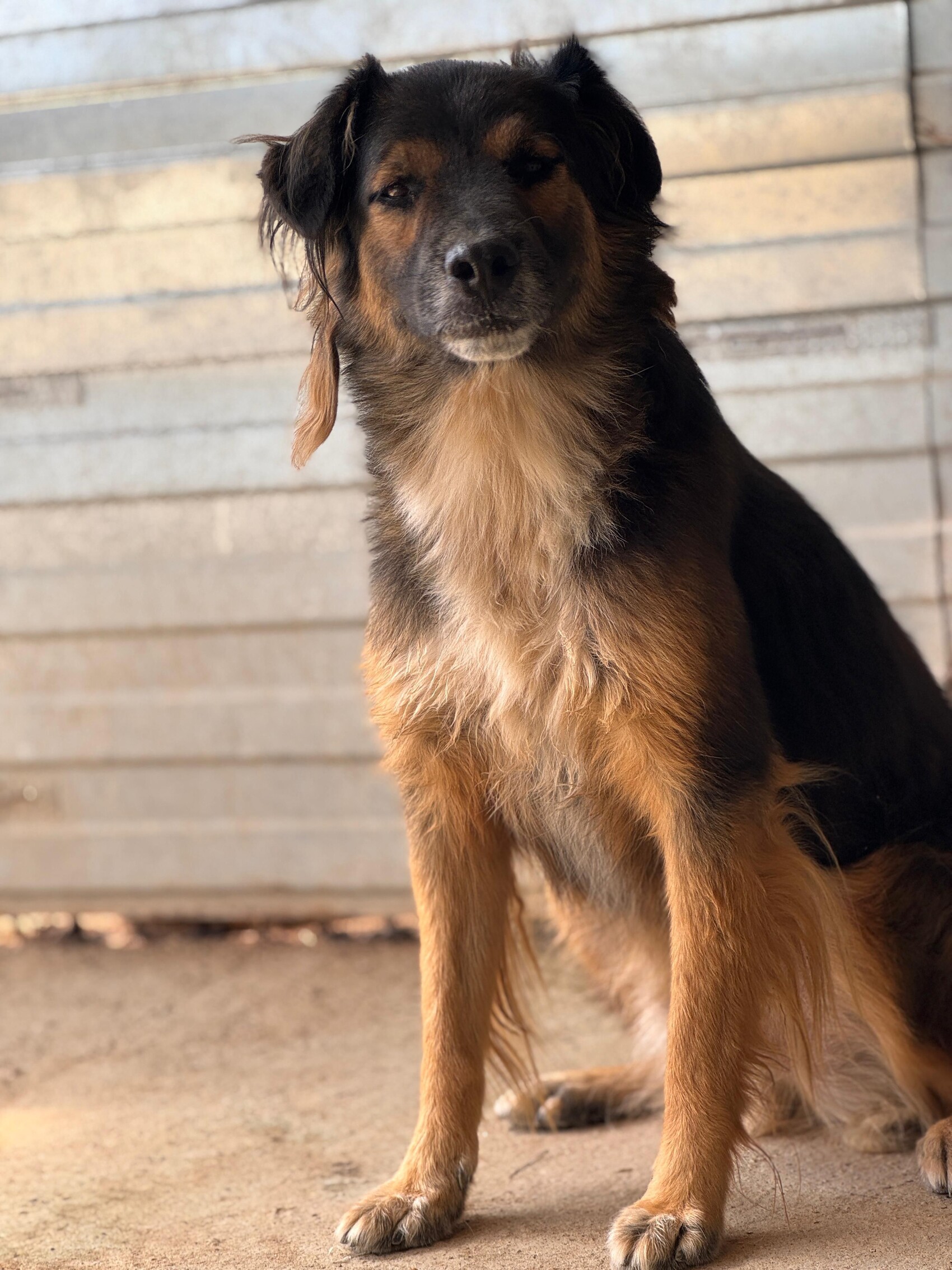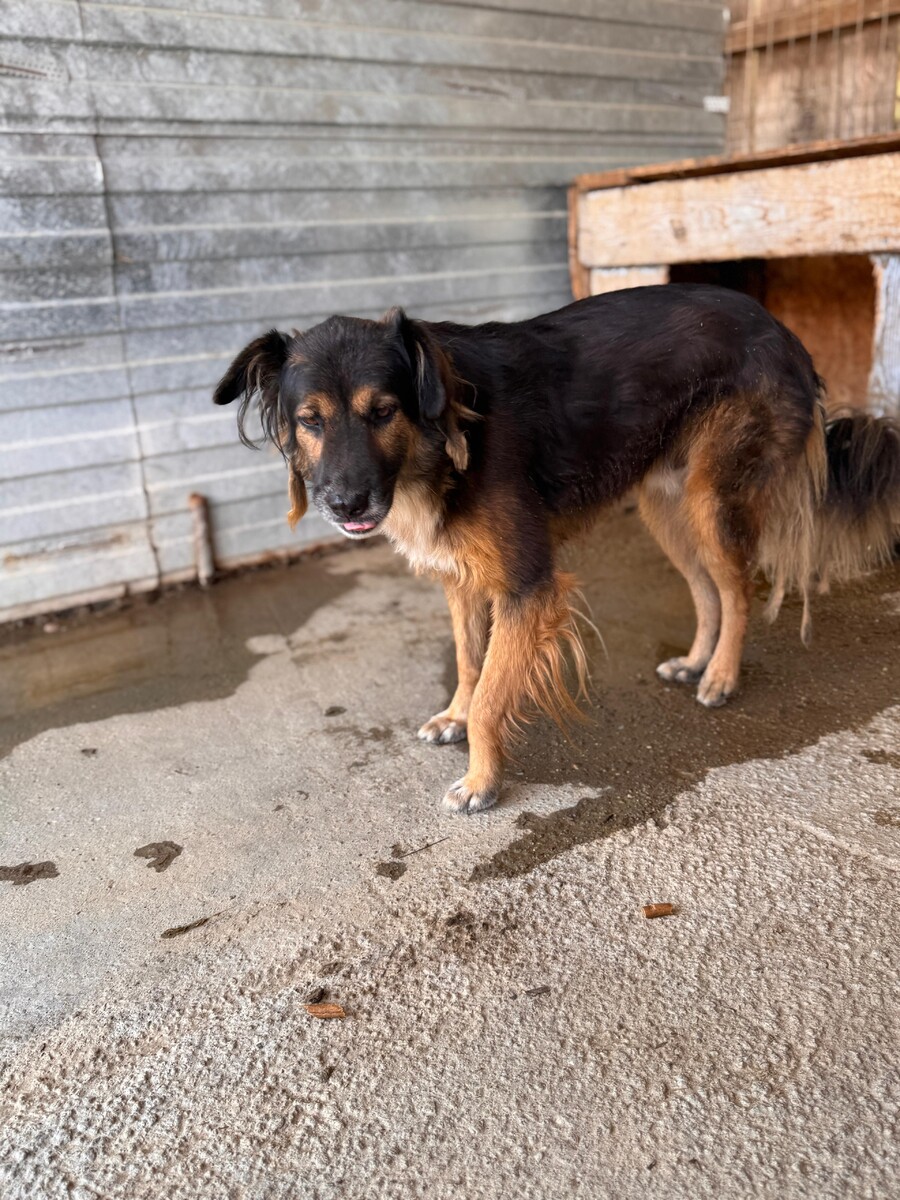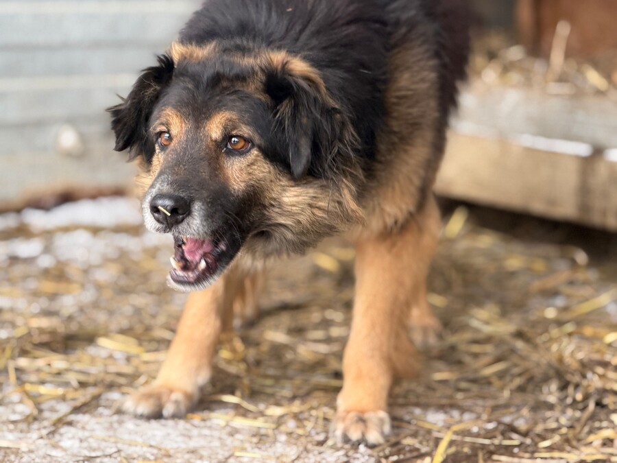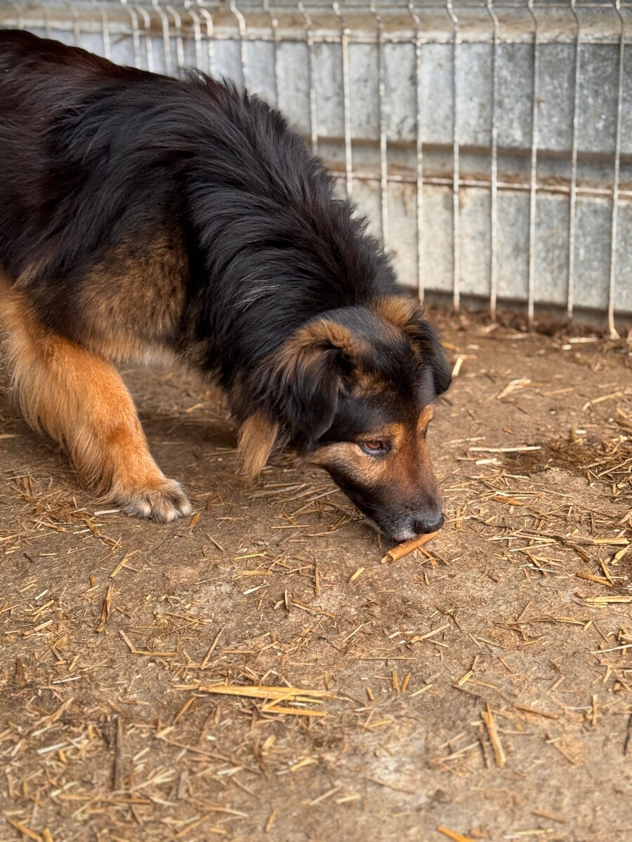 Leo ist ein ca. 2020 geborener, etwa 55 cm großer Rüde, der mit seiner Erscheinung sofort ins Auge fällt – ein echter Prachtkerl mit seinem wunderschönen Fell. Er zeigt sich freundlich und vorsichtig zugleich und begegnet Besuchern mit ehrlichem Interesse.
