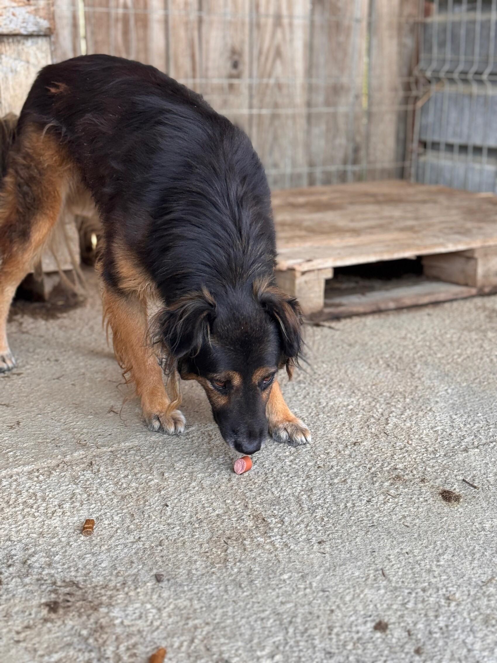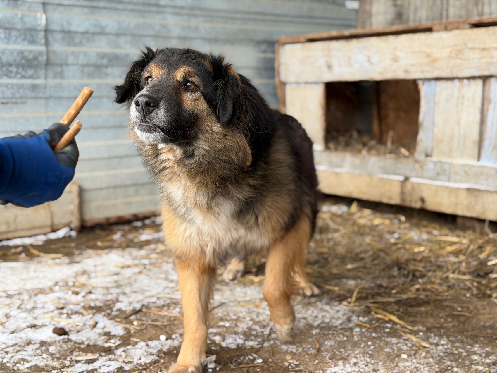 Leo ist ein besonderer Hund – und das ist ausdrücklich positiv gemeint. Anfangs ist er etwas scheu, beobachtet genau und denkt mit. Das konnten wir beim letzten Rumänien-Besuch gut sehen: Tanja aus unserem Team setzte sich ruhig zu ihm, ließ ihm Zeit und Raum. Leo zeigte sich neugierig, blieb zunächst vorsichtig, kam dann aber mit etwas Geduld und Leckerchen von selbst näher. Seine Cleverness und Lernbereitschaft wurden dabei deutlich sichtbar. Er ließ sich dann auch nach kurzem Zögern ganz behutsam anfassen und zart berühren.