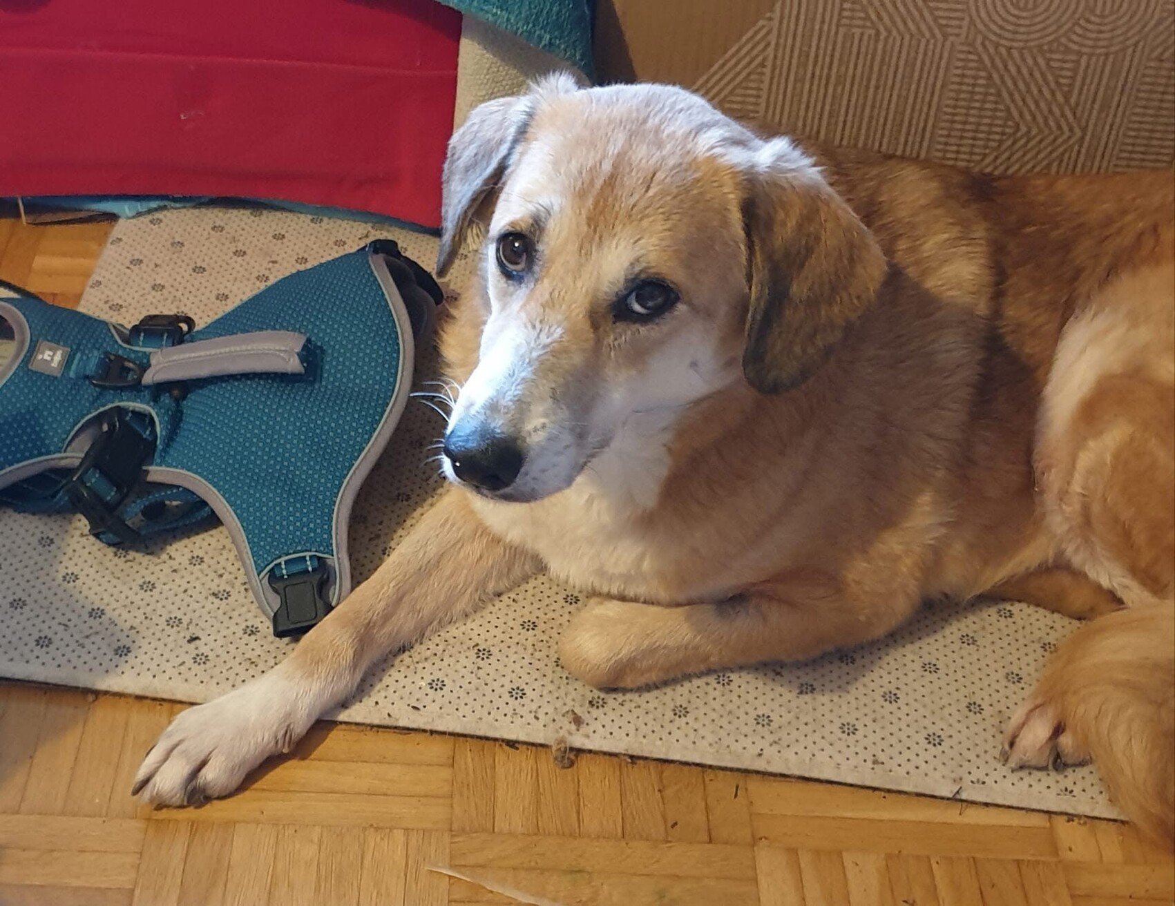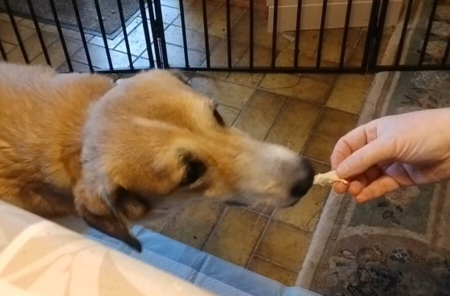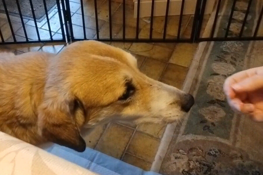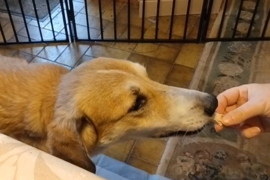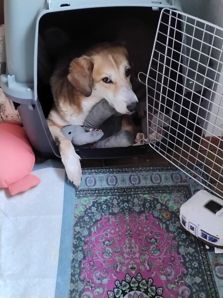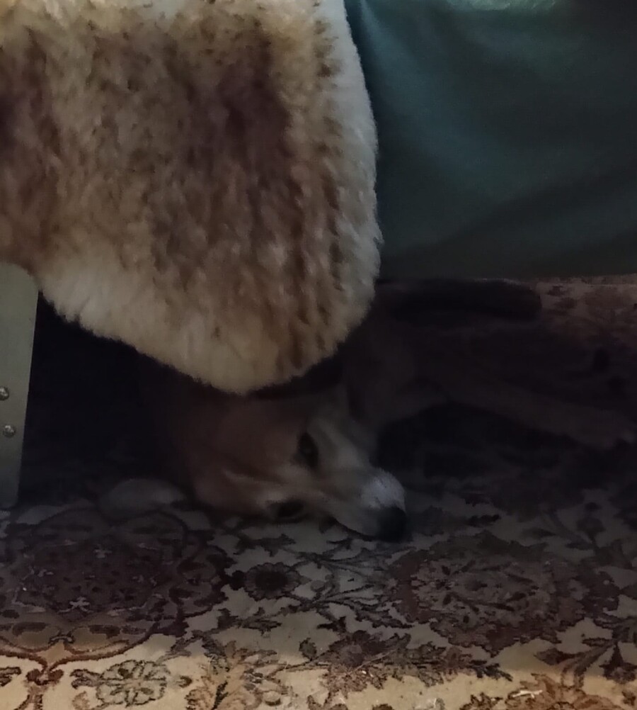 In der Wohnung sucht sie sich sichere Orte, an denen sie zur Ruhe kommen kann. Besonders wohl fühlt sie sich in ihrer selbst gewählten „Höhle“, einem ausgezogenen Schlafsessel, unter dem sie einen geschützten Rückzugsplatz gefunden hat. Die Welt außerhalb der Wohnung kennt sie bisher noch nicht. Da sie momentan nicht angeleint werden kann, sind Spaziergänge oder Außenreize für sie noch nicht möglich. Sie braucht Zeit, Geduld und einen stabilen Rahmen, um zu lernen, dass sie in ihrer neuen Lebenssituation sicher ist. Und genau das lernt sie derzeit bei ihrer Pflegemama.