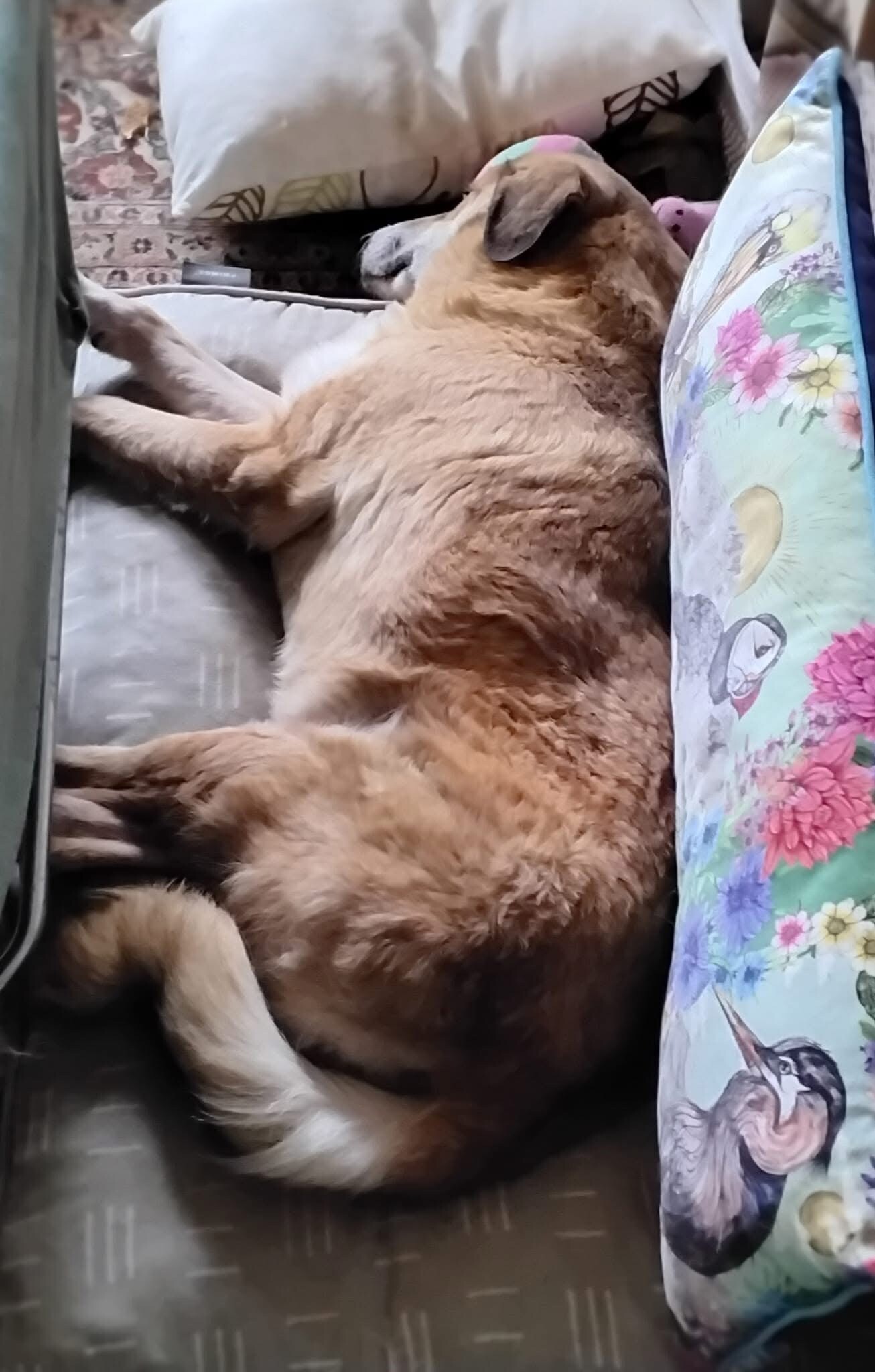 Miss Edda lebt seit dem 25. Oktober 2025 auf ihrer Pflegestelle in Bayern und darf dort zunächst vollständig und in ihrem Tempo ankommen. Auch wenn ihr Pass ein Alter von 13 Jahren angibt, wirkt sie deutlich jünger. Bestes Beispiel: Ihre Sprungkraft. Sie schafft es problemlos, im Stand über einen Esstisch hinweg auf das Sofa zu springen. Mit ihren etwa 55 cm Schulterhöhe ist sie eine mittelgroße Hündin, eher schlank und insgesamt eine sehr Hübsche.