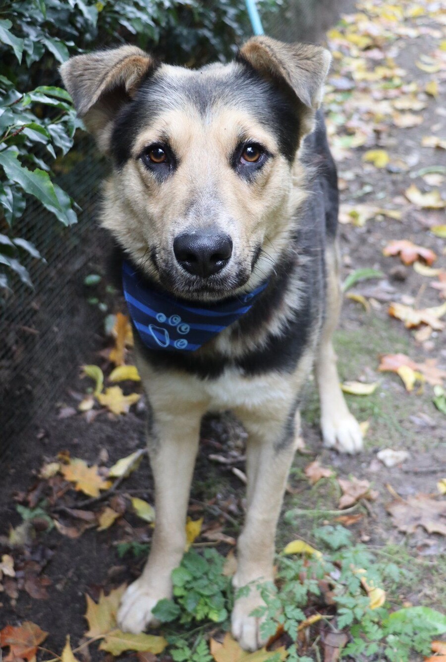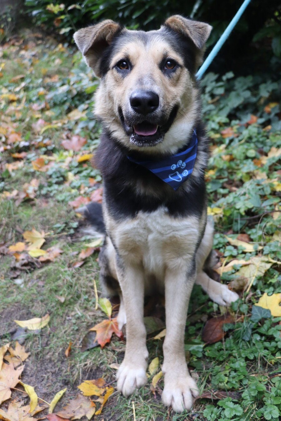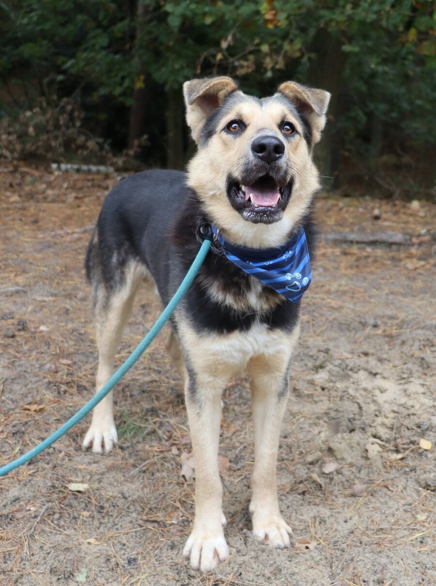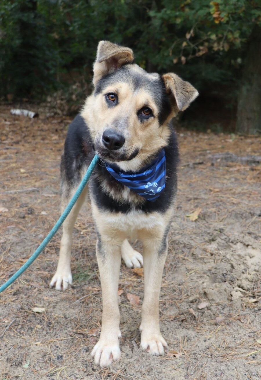 Er lernt mit Freude das Hunde‑1x1 und lässt sich gut über Leckerlis motivieren. Im Kontakt mit anderen Hunden zeigt er an der Leine ein pubertäres Verhalten, weshalb eine geduldige und klare Führung wichtig ist. Seine schneeweißen Zähne und sein Verhalten haben uns dazu veranlasst, sein Alter tierärztlich neu einschätzen zu lassen – und tatsächlich ist er deutlich jünger als im Pass angegeben. Statt der dort vermerkten vier Jahre schätzen wir ihn auf etwa 1,5 bis maximal 2 Jahre.