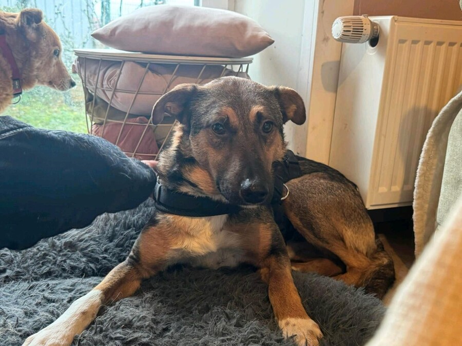 Er kam am 22.11.2025 auf seine Pflegestelle nach Deutschland. Zuvor hatte er im rumänischen Tierheim eine schwere Zeit: Sein engster Gefährte, Zwingerkollege und bester Freund ist einige Zeit vor ihm ausgereist und das Alleinsein machte Alibaba zu schaffen. Er wurde zunehmend trauriger und zog sich immer mehr zurück. Umso größer war das Glück, als sich auch eine Pflegestelle für ihn fand.
