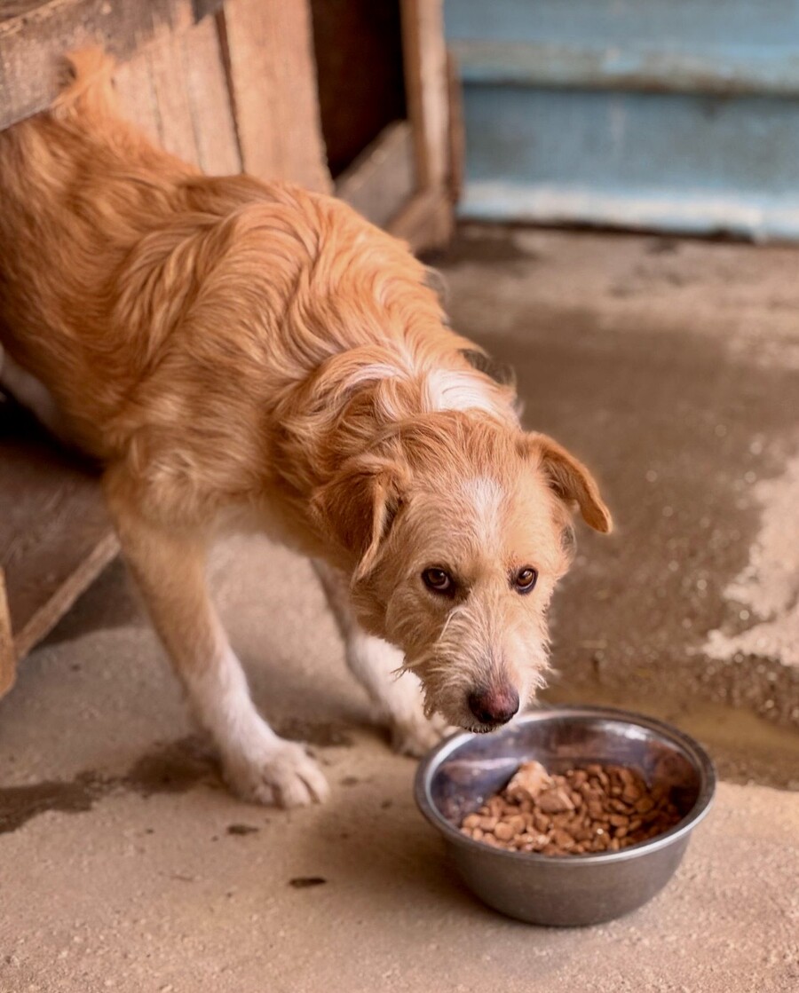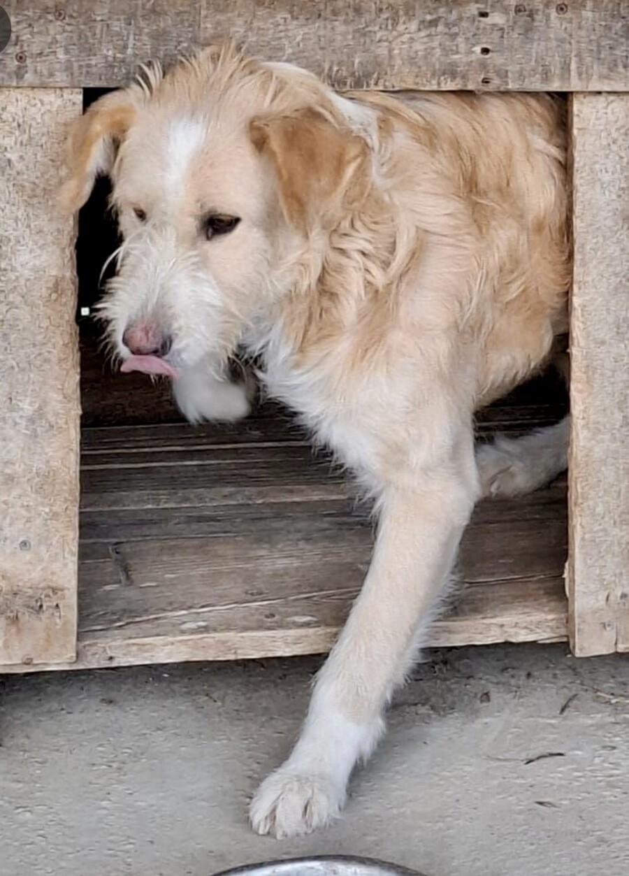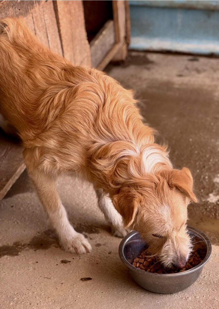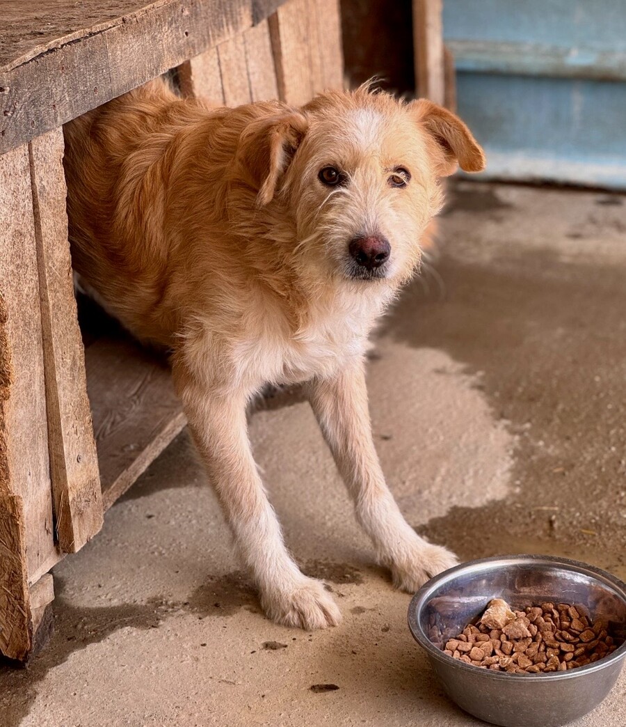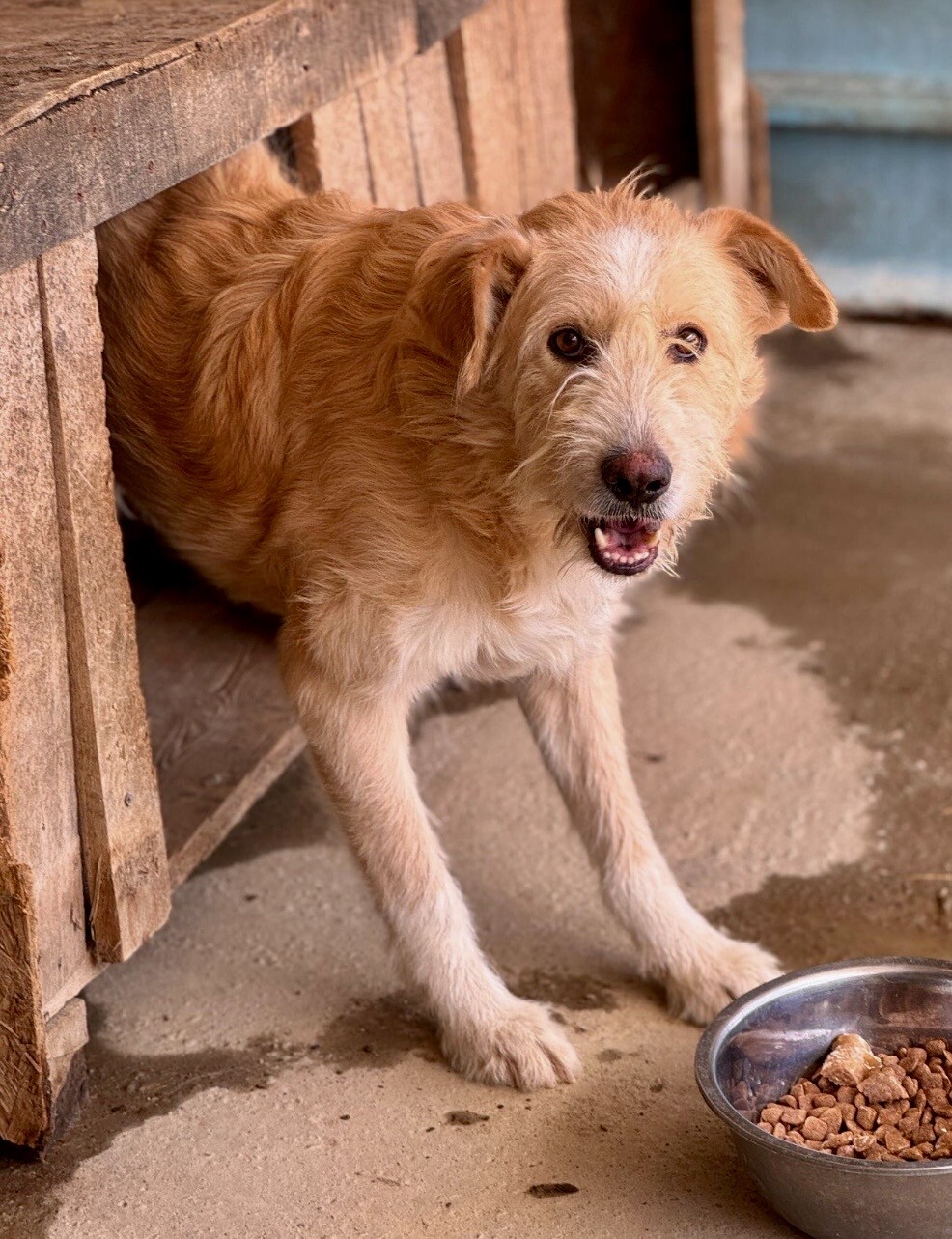 Rufus, geboren 2020 und geschätzt etwa 55 cm groß, ist ein hübscher freundlicher Rüde mit einem zotteligen Fell, das man einfach berühren möchte. Er gehört nicht zu den Hunden, die dem erstbesten Besucher um den Hals fallen. Rufus ist zurückhaltend, beobachtet erst und entscheidet dann vorsichtig, ob er sich annähern möchte.
