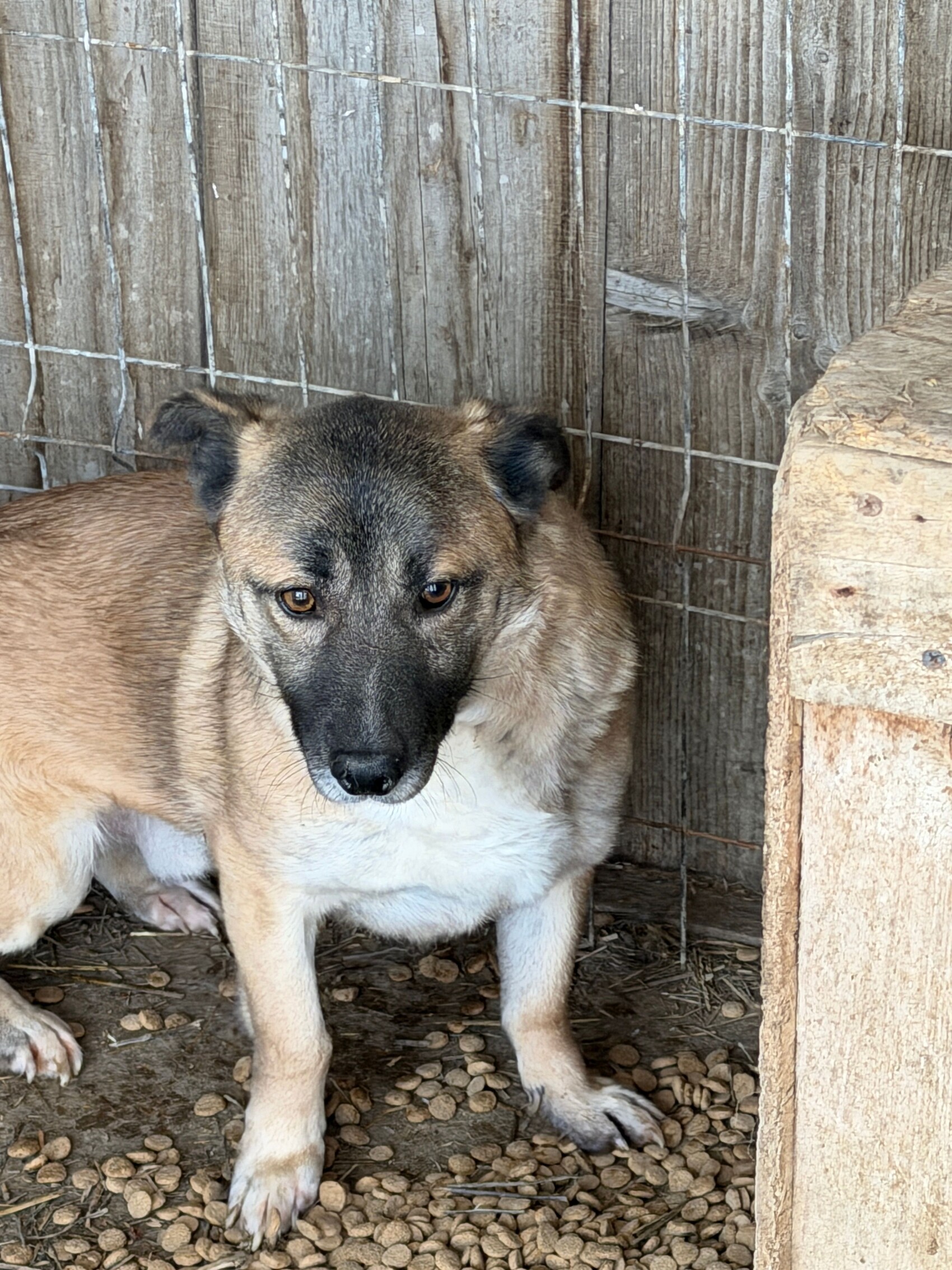 Mikka, ein kleiner noch scheuer Rüde aus dem Jahr 2018 und mit seinen gerade mal 35 cm Schulterhöhe, trägt ein stilles, tragisches Schicksal mit sich. Er ist einer der „Verlassenen“ 170 Hunden– ein hübscher, ansprechender Schatz, der jedoch große Sorgen gegenüber Menschen hat. Er geht nicht nach vorne, zeigt keinerlei Aggression, sondern versucht, sich unsichtbar zu machen, wenn es ihm zu viel wird.
