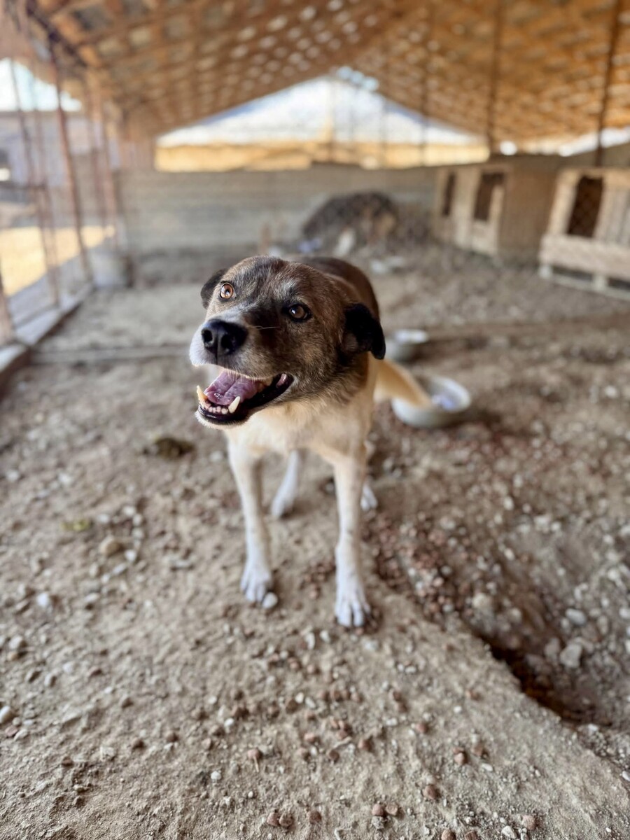 Theo, geboren 2019 und etwa 50 cm groß, ist ein freundlicher und aufgeschlossener Rüde, der sich über menschlichen Besuch immer sehr freut. Er kommt gern ans Gitter, um sich begrüßen zu lassen, nimmt Futter aus der Hand und lässt sich streicheln.