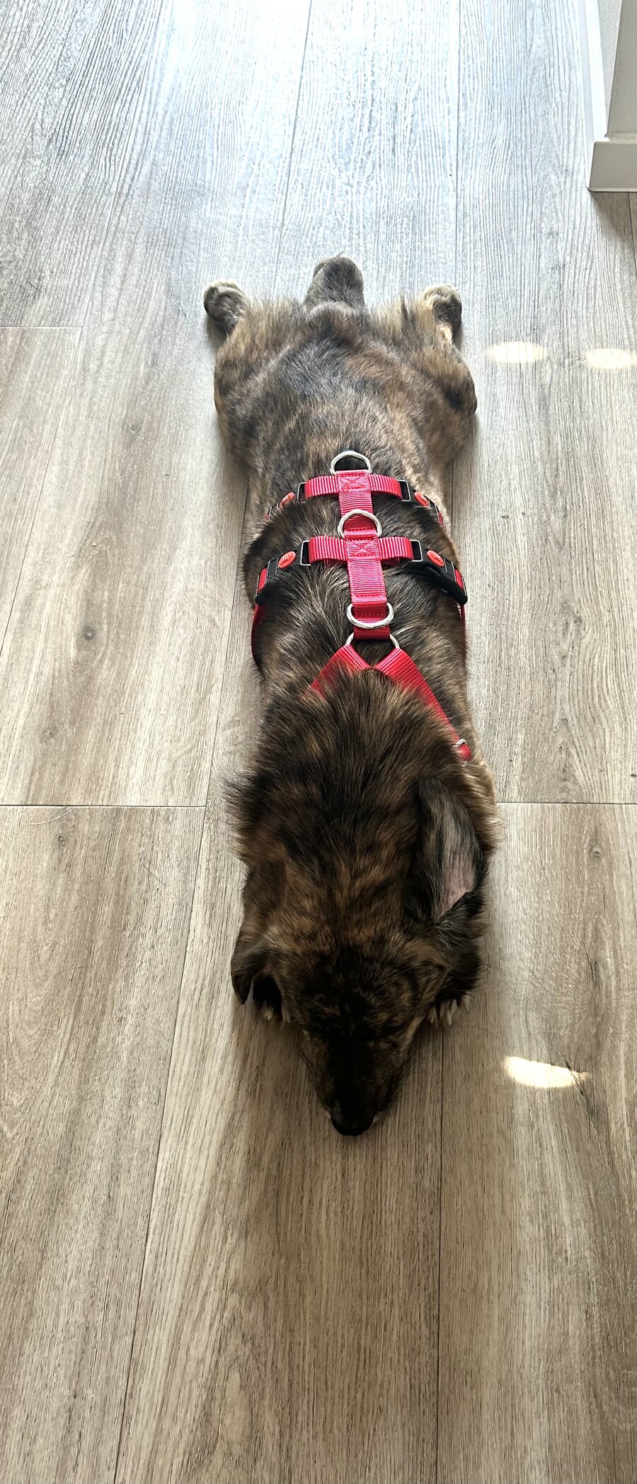 Im Alltag ist Nele eine leise, angenehme Begleiterin. Sie schläft nachts entspannt durch, bewegt sich im Haus ruhig und unaufdringlich und macht alles mit, was man von ihr braucht. Das Geschirr an- und auszuziehen ist für sie überhaupt kein Problem – sie bleibt gelassen und schaut einen mit ihren sanften Augen an. Zudem ist Nele bereits stubenrein.