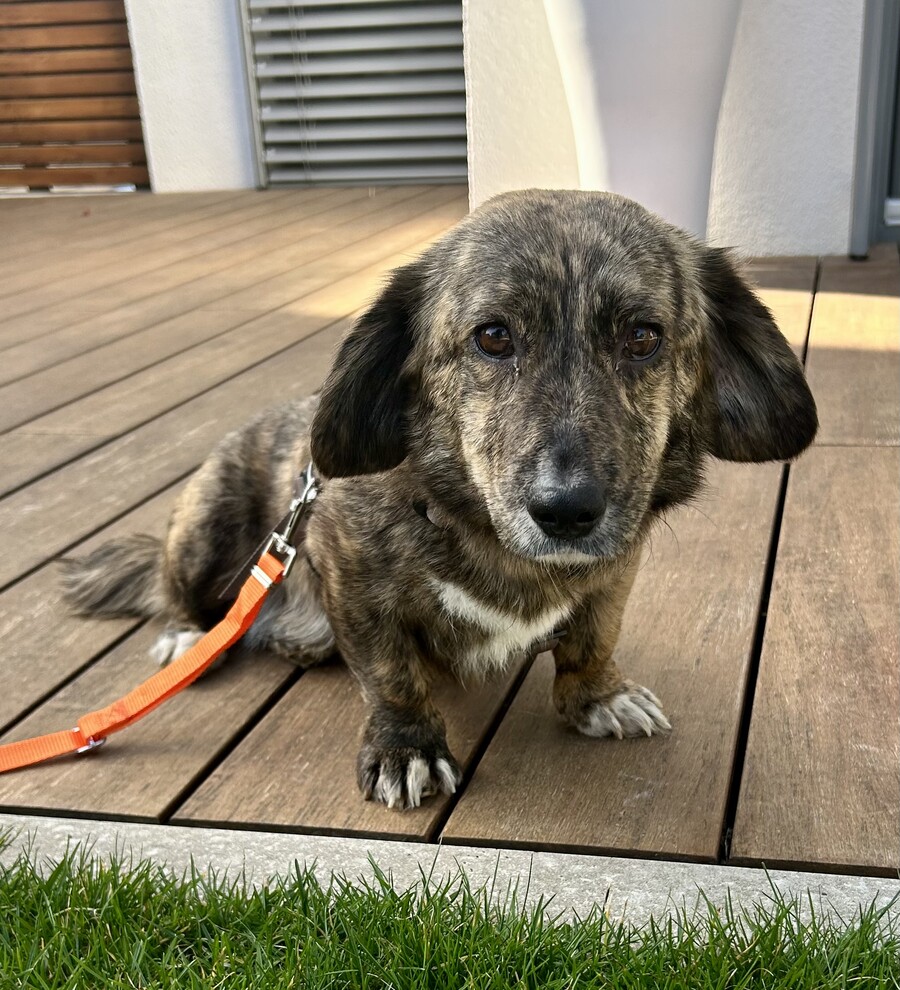 Update von der Pflegestelle: Seit Nele am 28. Februar bei uns in Stuttgart angekommen ist, verzaubert sie uns jeden Tag ein bisschen mehr. Sie ist nicht nur eine wunderschöne Dackelmix-Dame mit diesem weichen, warmen Blick – sie hat auch ein Herz, das genauso sanft ist wie ihr Gesicht.