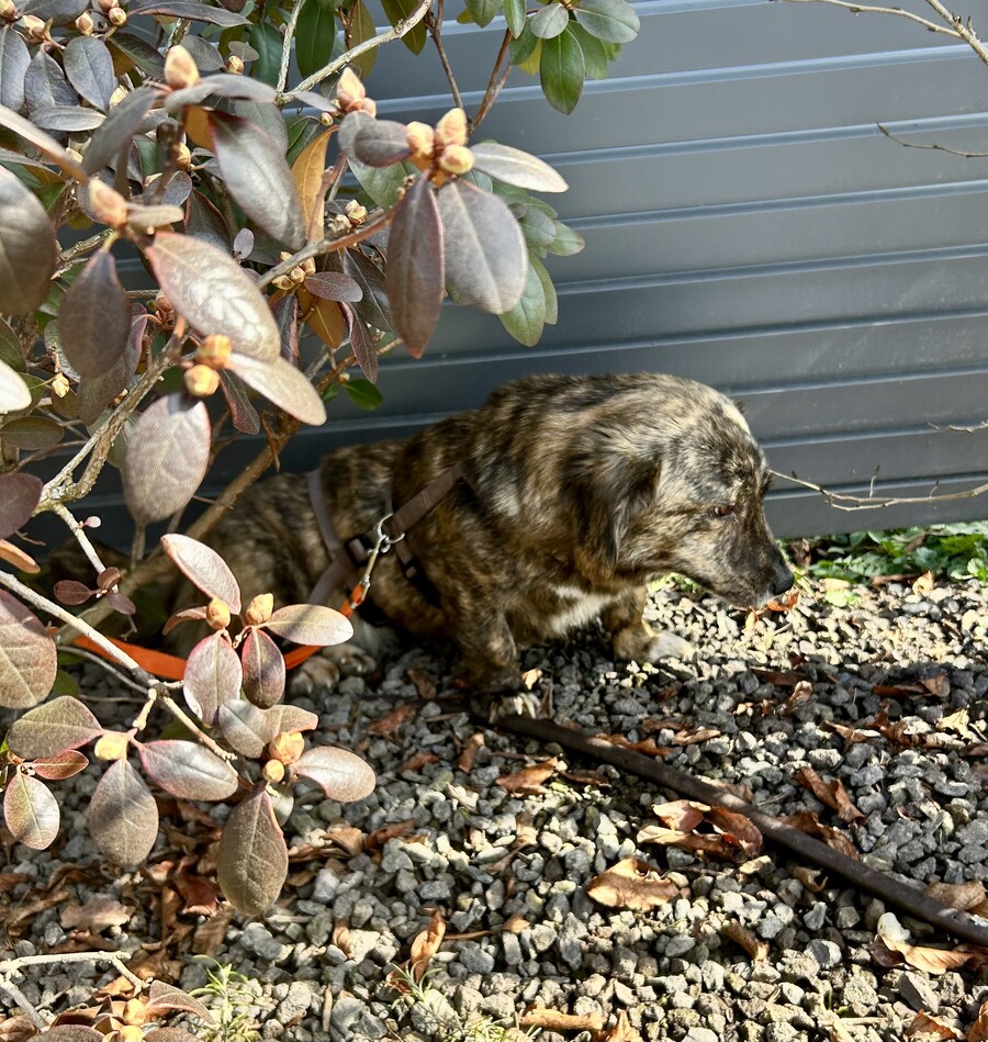 Von Tag zu Tag werden die Runden beim Spaziergang immer größer - was uns riesig freut, denn auch sowas stärkt die Bindung. Im Garten – da blüht sie auf. Dort schnuppert sie, beobachtet, genießt die Sonne und wirkt, als würde sie endlich durchatmen dürfen.