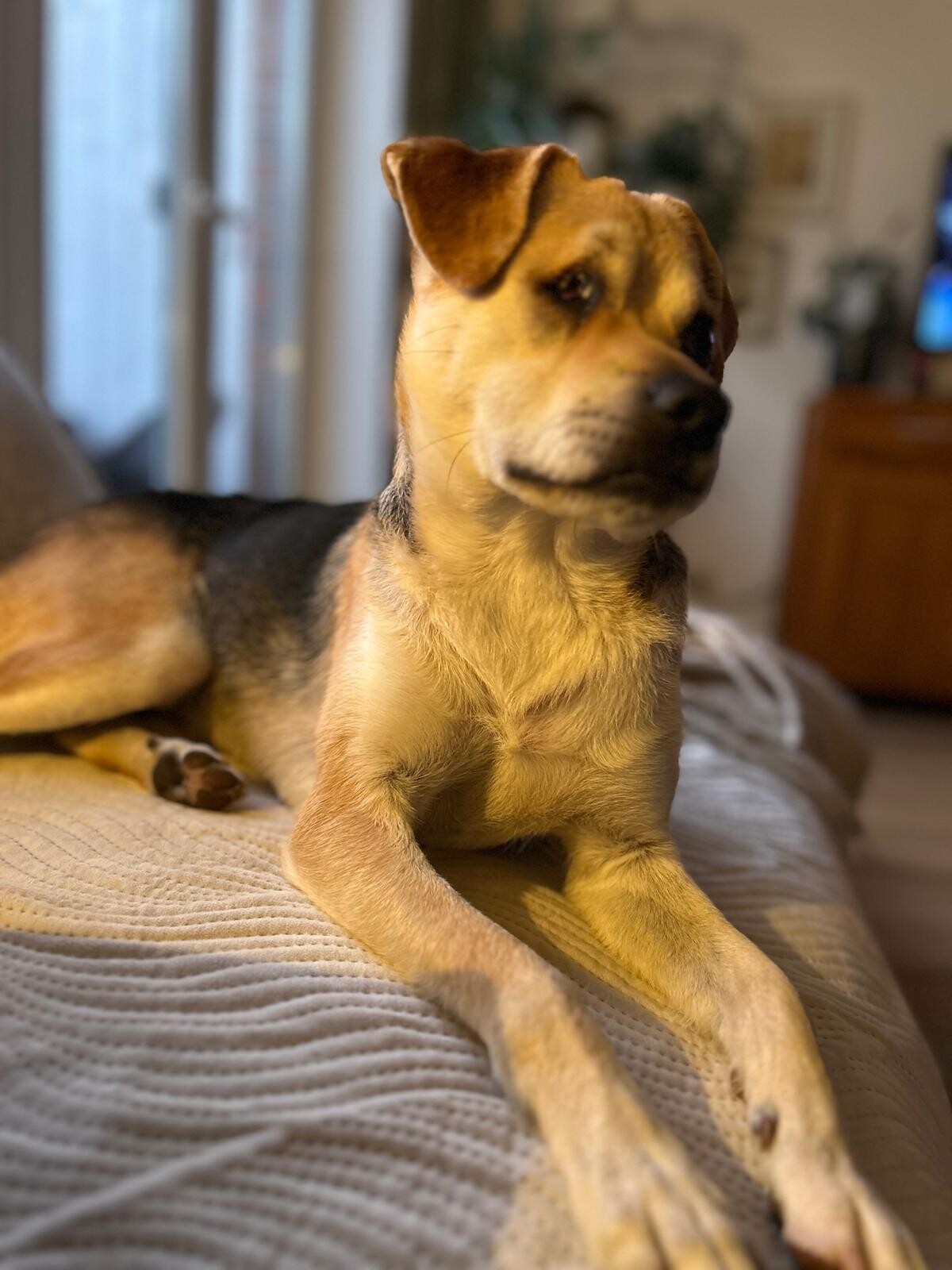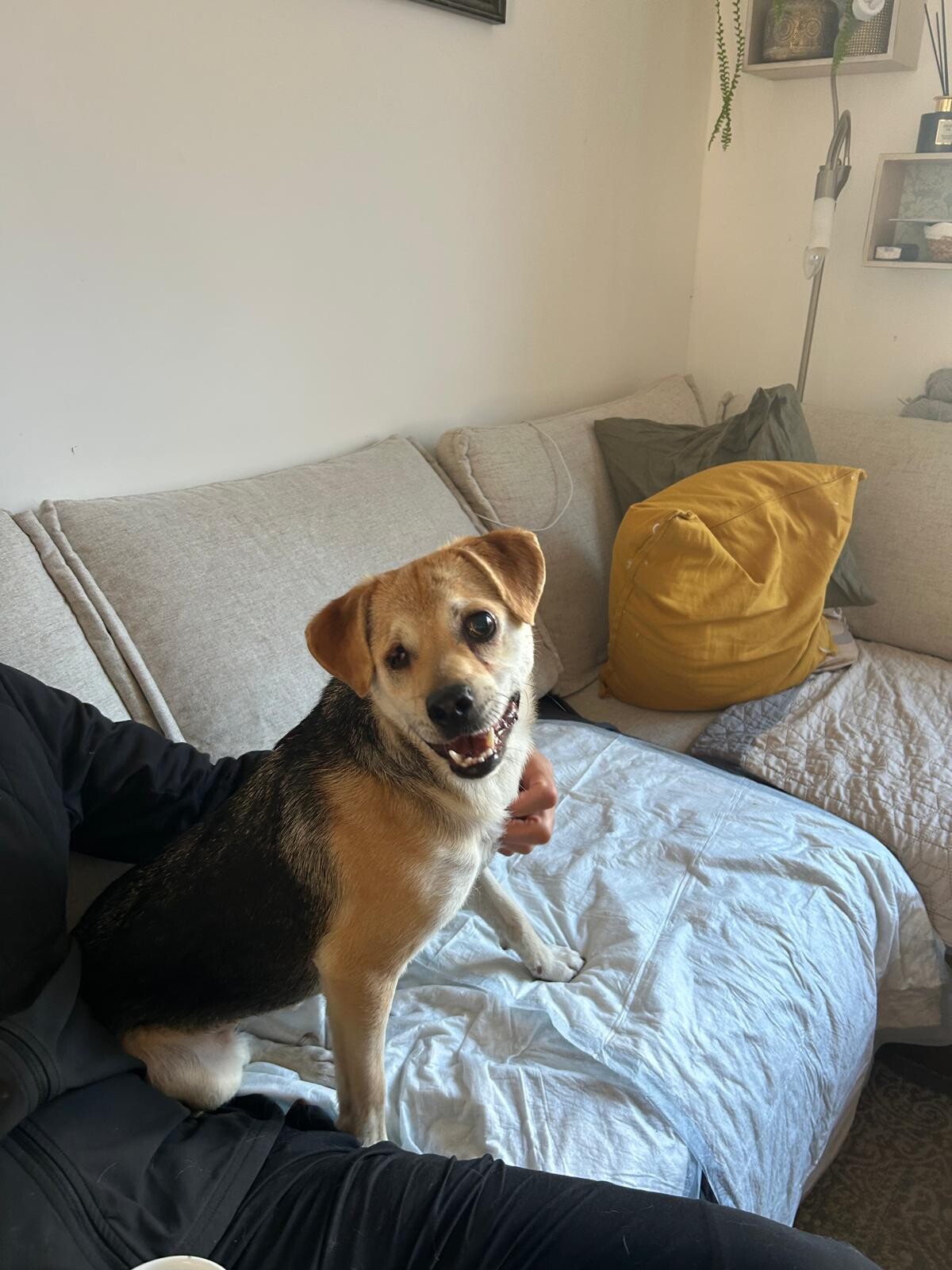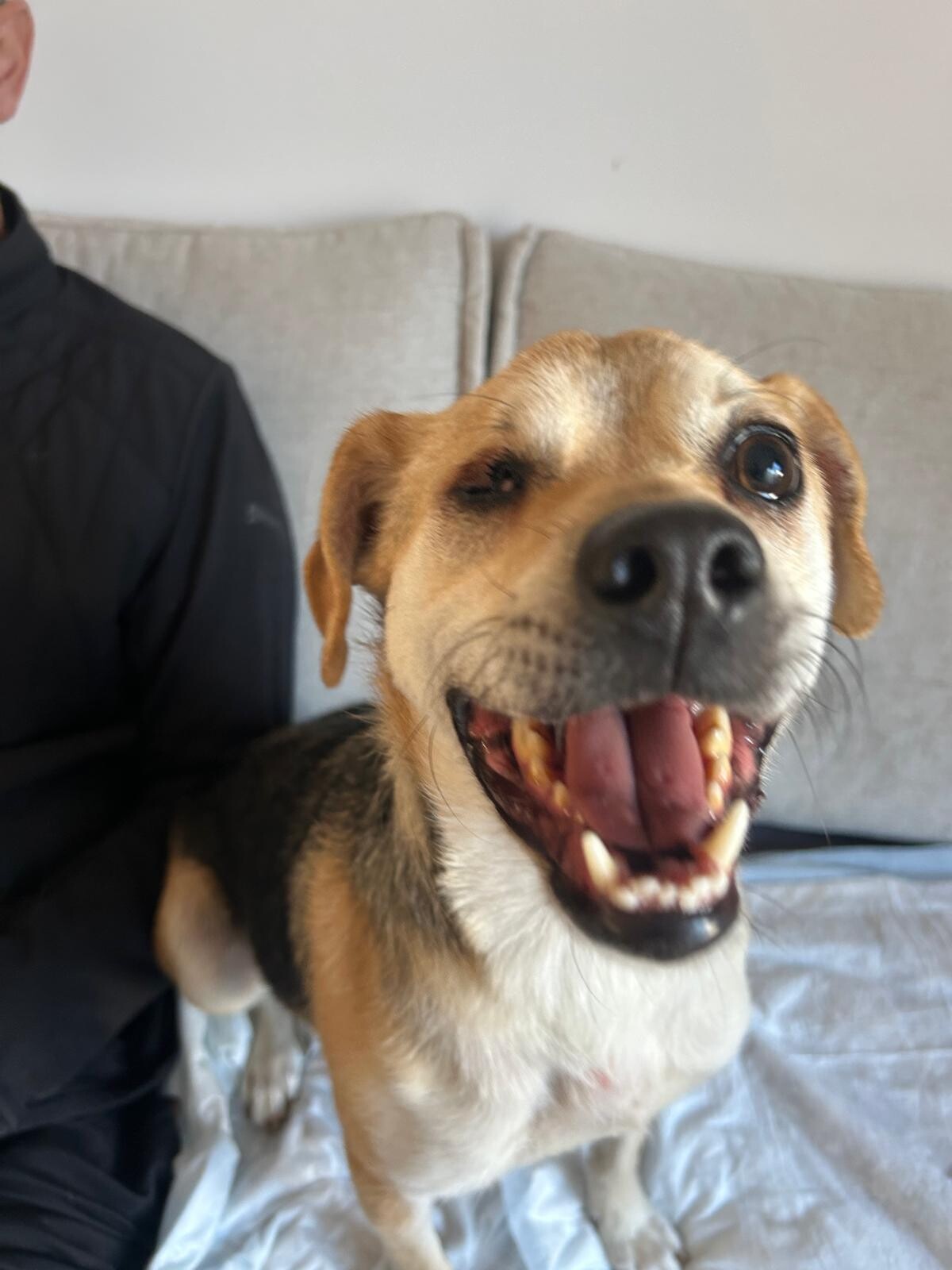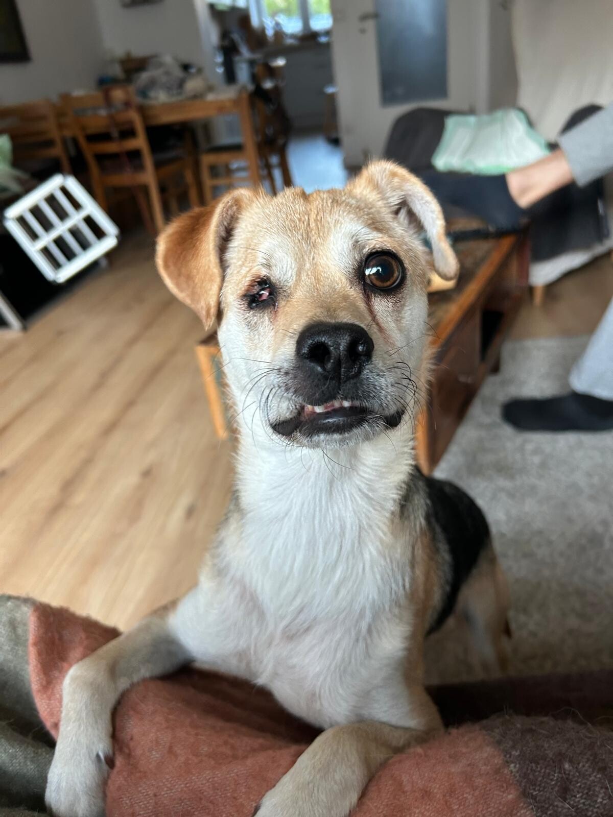 Leider ist er in Rumänien in einem Autounfall geraten und hat dabei das Sehvermögen auf einem Auge verloren. Außerdem entstand eine Fraktur an der Rute, wodurch sein Schließmuskel nicht mehr vernünftig funktionierte. Auch wenn der Schließmuskel anfangs nicht richtig funktioniert hat, kann er mittlerweile durch die richtige Ernährung den Kot gut absetzen. Dies gelingt ihm immer besser und kleine Malheure in der Wohnung passieren so gut wie gar nicht mehr. Nur ab und zu muss man ihm noch den Popo abwischen. Wir haben die Hoffnung, dass sich die beschädigten Nerven regenerieren.