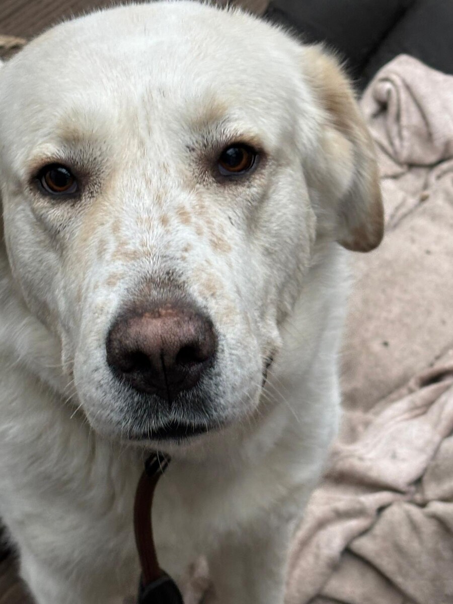 Mascha ist laut Pass im August 2020 geboren. Ihre Pflegestelle schätzt sie auf eine etwa 4 Jahre alte Hündin mit einer Schulterhöhe von ca. 65 cm. Die helle Schönheit mit „Sommersprossen“ ist eine rundum angenehme Begleiterin.