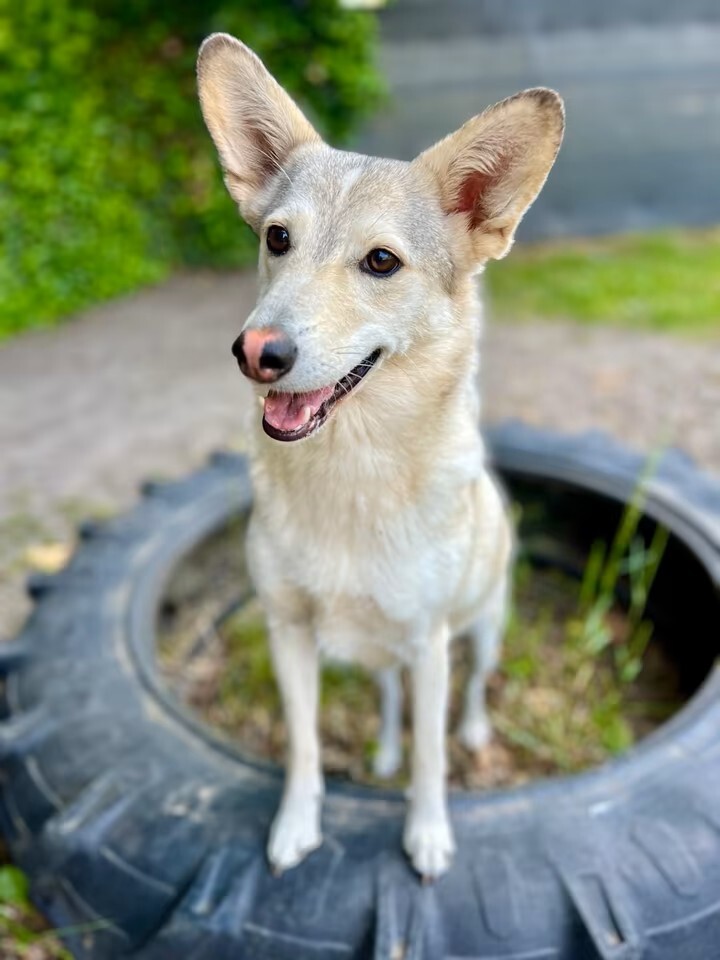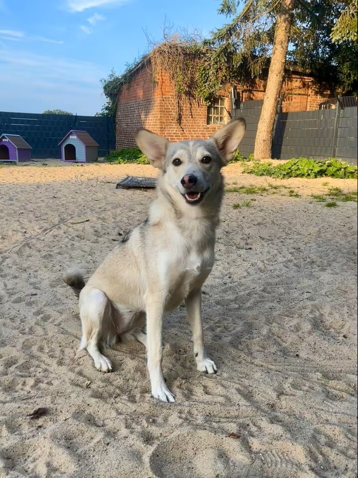 Yuki, geboren ca. Mai 2022 und etwa 46 cm groß, ist eine hübsche, junge Husky-Mix-Hündin, die sich Menschen wünscht, die ihr Sicherheit und eine souveräne Führung geben können. Fremden begegnet sie zunächst unsicher, was sich oft durch Bellen äußert. Mit klarer Anleitung und Einfühlungsvermögen lässt sie sich jedoch gut umlenken.