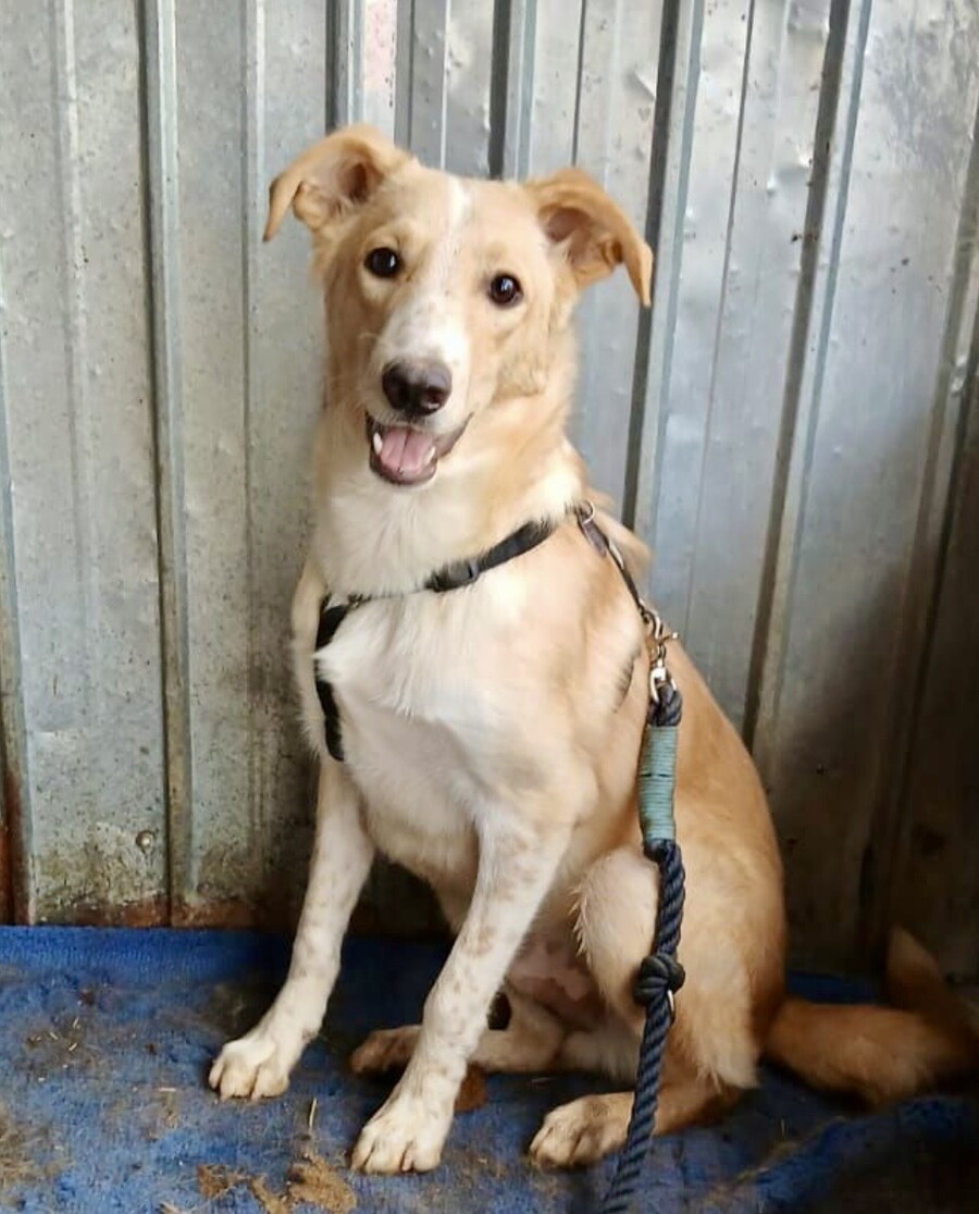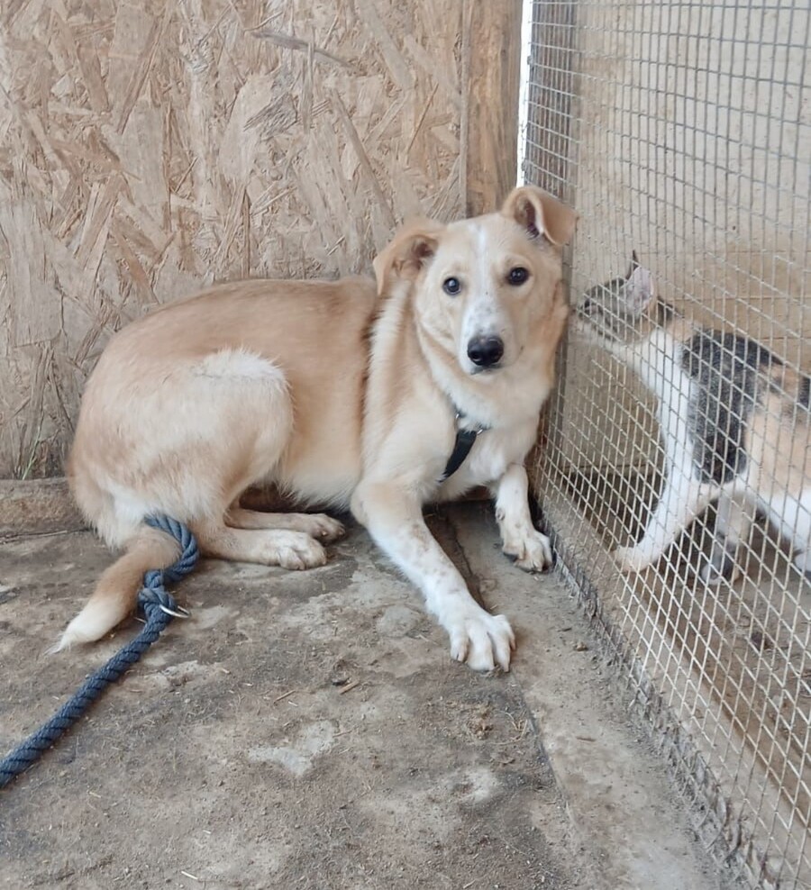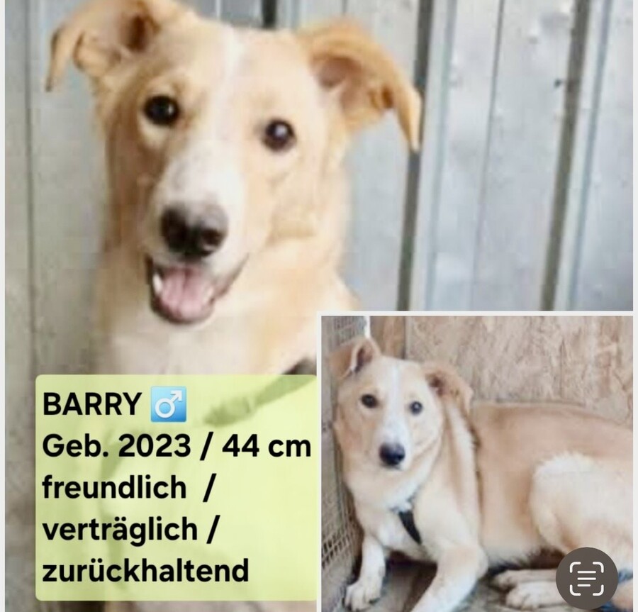 Barry, 2023 geboren und etwa 44 cm groß, ist ein hübscher blonder Junghund, der im Shelter noch sehr unsicher ist. Gemeinsam mit seinem Bruder Milan wartet er darauf, dass endlich jemand ihn sieht und ihm eine Chance gibt. Er gehört zu den kleineren Hunden im Shelter – und gerade deshalb sollte er so schnell wie möglich ausreisen dürfen, damit er in jungen Jahren lernen kann, dass die Welt da draußen auch schön sein kann.