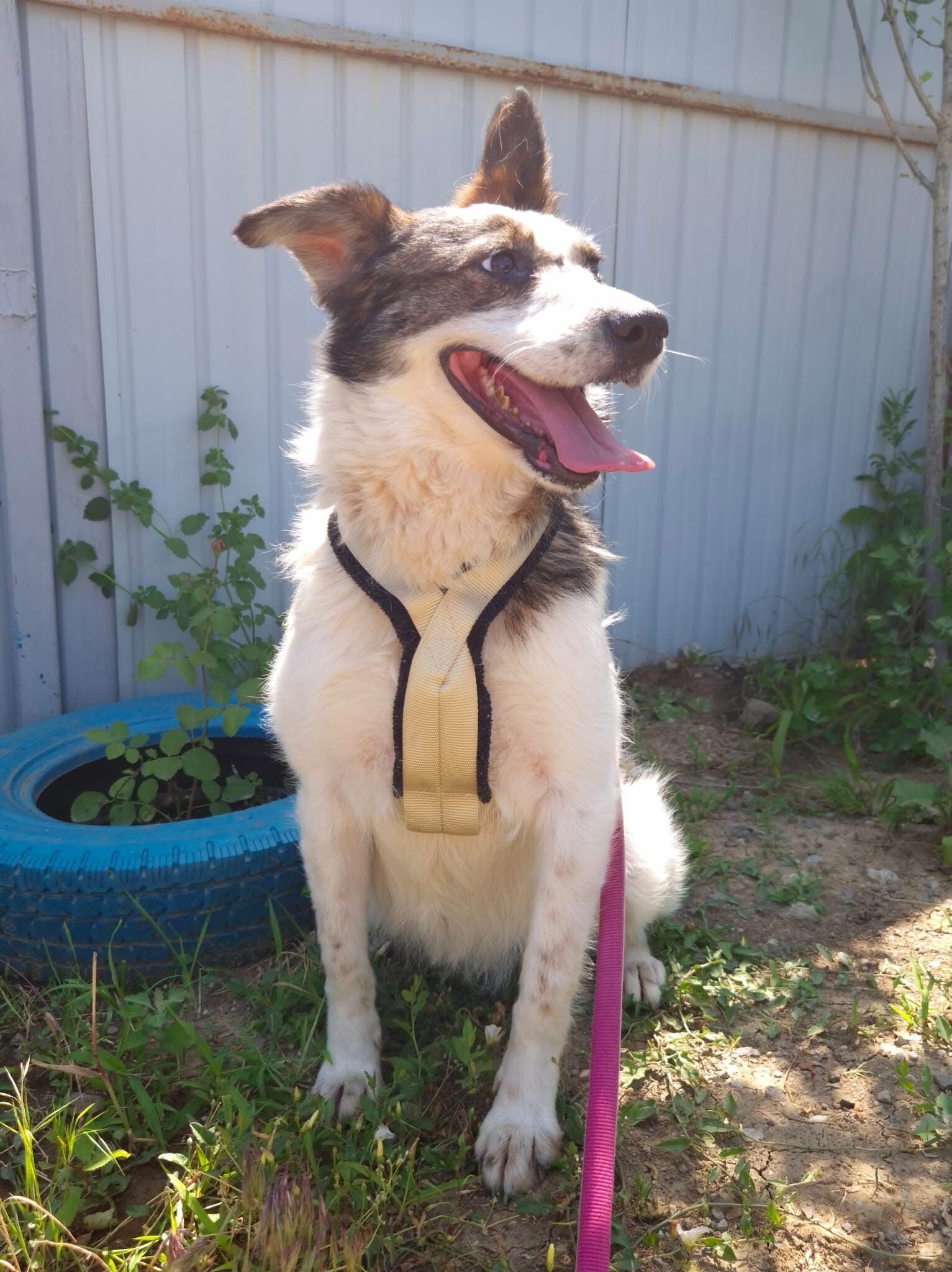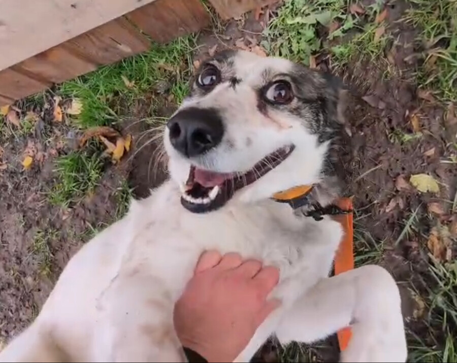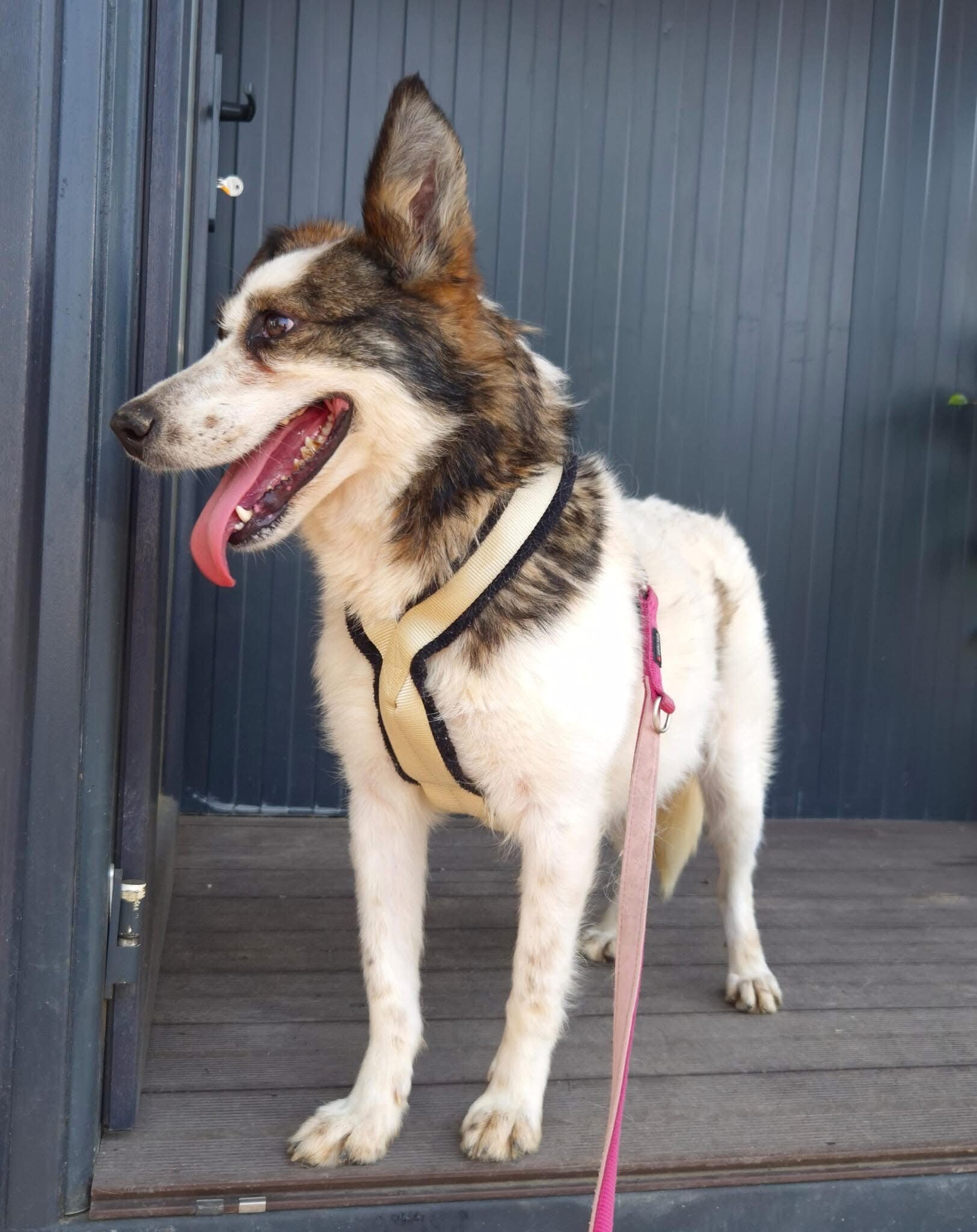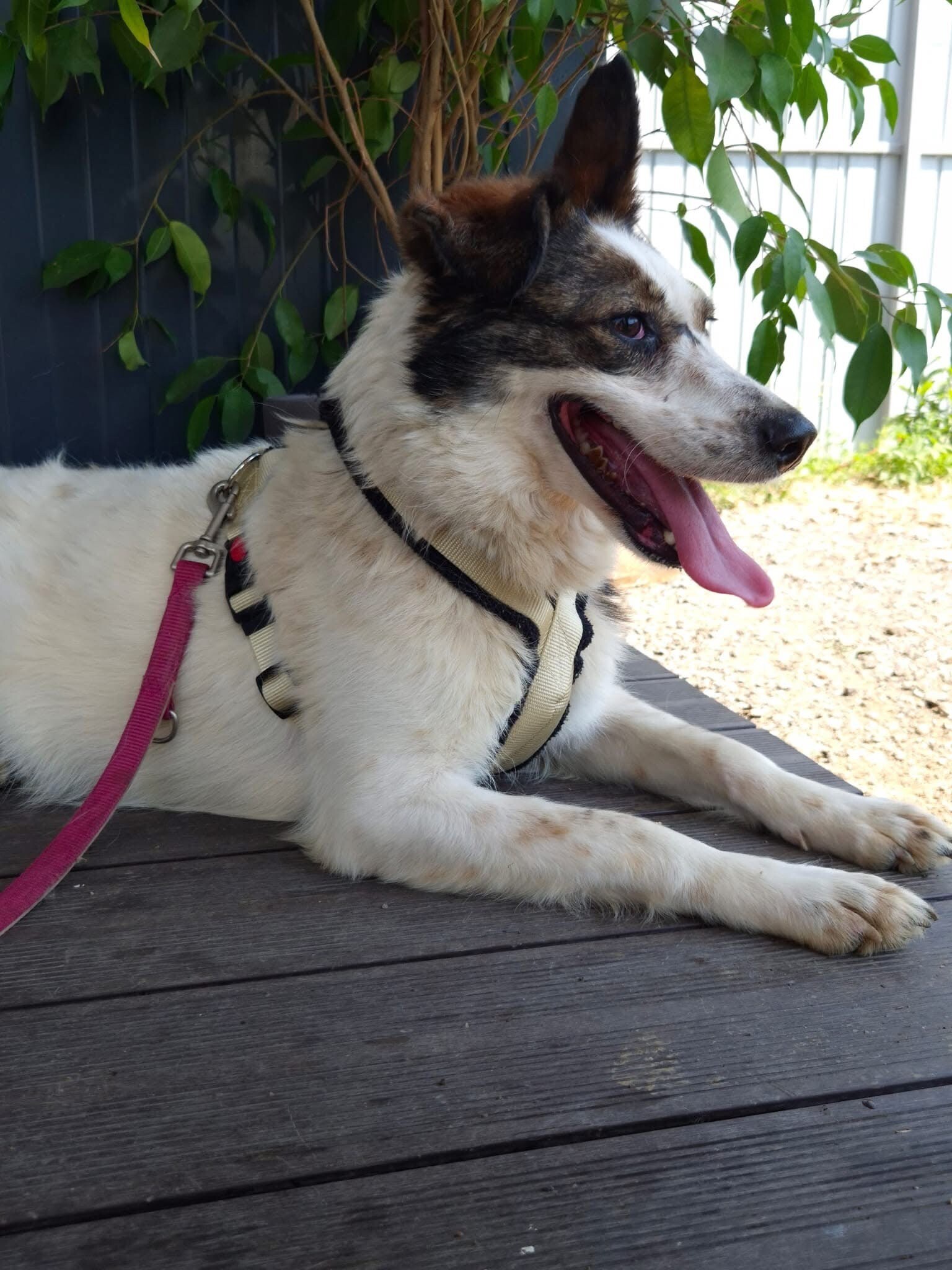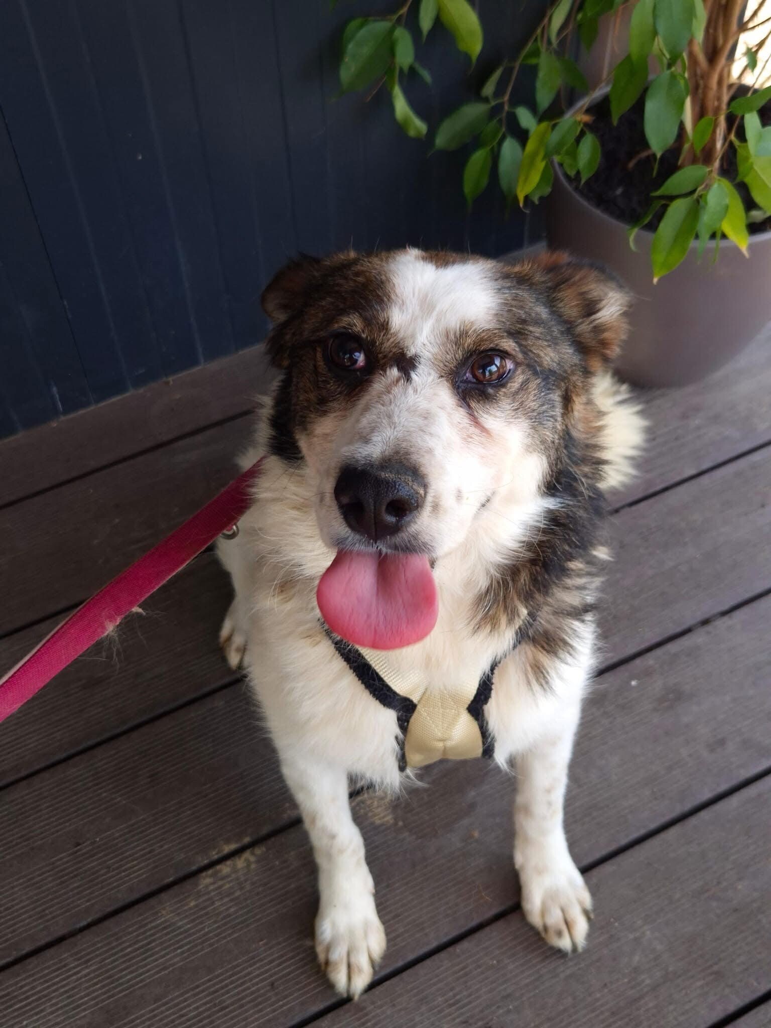 Hiwa, geboren 2021 und etwa 47 cm groß, ist eine liebevolle, verschmuste und verträgliche Hündin mit einem sonnigen Gemüt. Ihr fröhlicher Gesichtsausdruck und ihr charmantes Aussehen mit einem Steh- und einem Schlappohr machen sie zu einem echten Herzenshund.