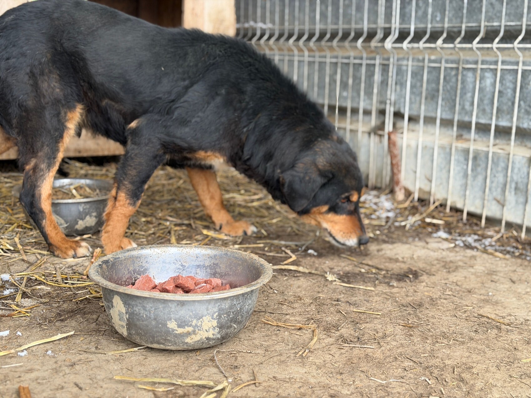 Lange Zeit hielt er sich fast ausschließlich in seiner Hütte auf. Mit Futter ließ er sich zumindest zur Hälfte herauslocken – ein kleines Zeichen, dass in ihm noch Hoffnung glimmt. Und tatsächlich: Er zeigte Interesse an den mitgebrachten Dingen, ein leiser Funke Neugier, der zeigt, dass er sich selbst noch nicht aufgegeben hat.