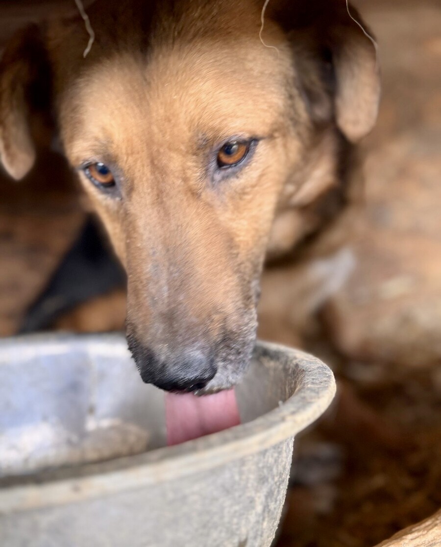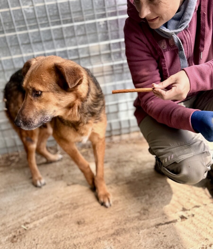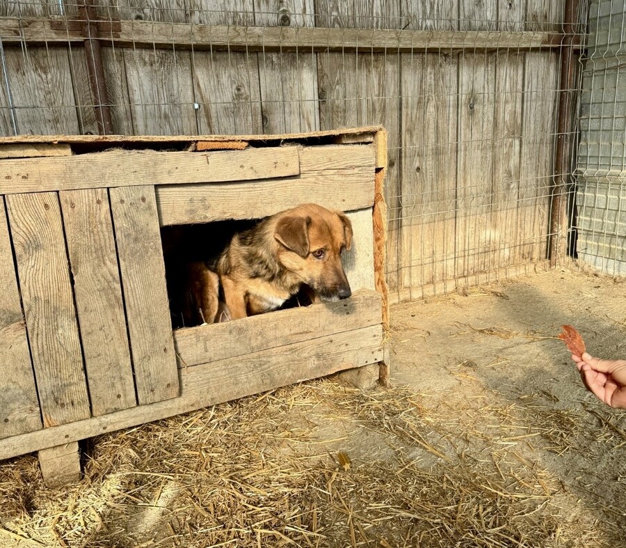 Seine Entwicklung ist wirklich berührend: Im Dezember 2024 versteckte er sich noch konsequent in seiner Hütte, doch im April 2025 kam er bereits von selbst auf Besuchende zu und ließ sich streicheln. Ein ruhiger, bescheidener Schatz, der einfach Zeit braucht – und dann leise aufblüht.