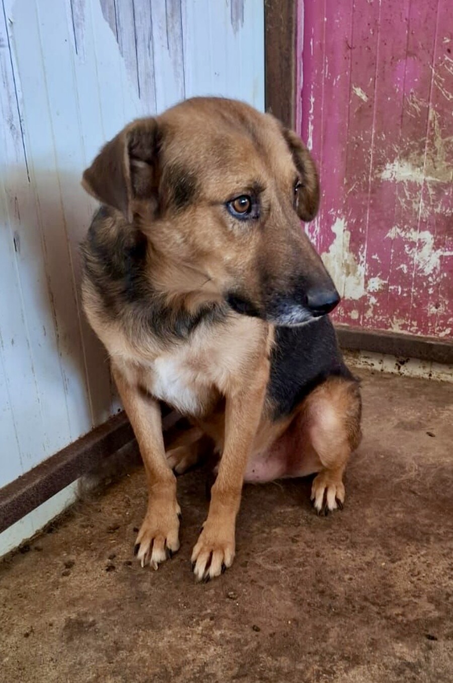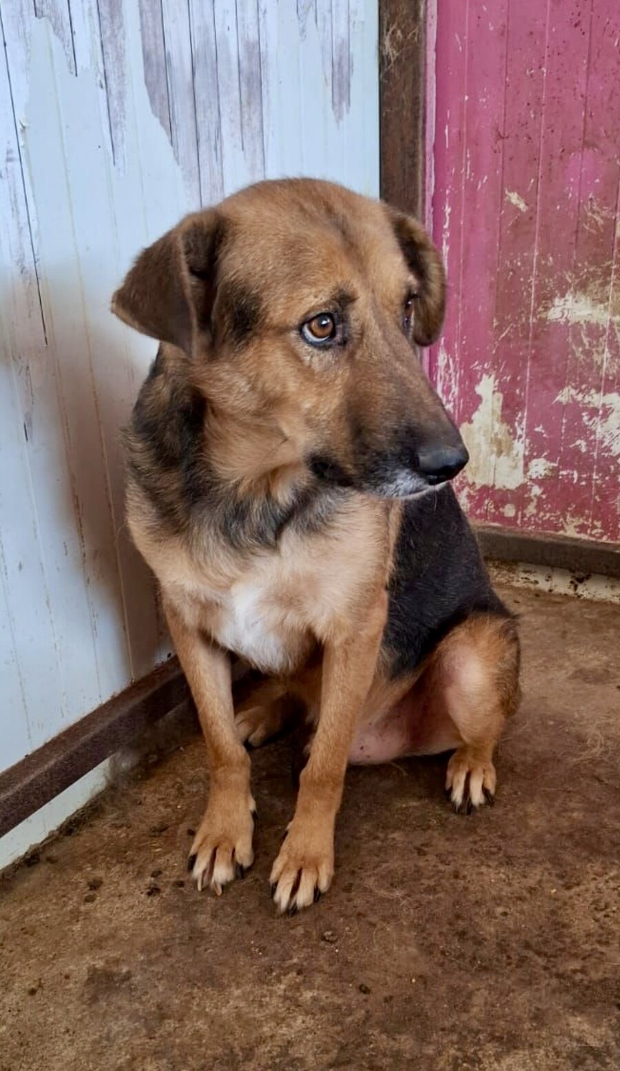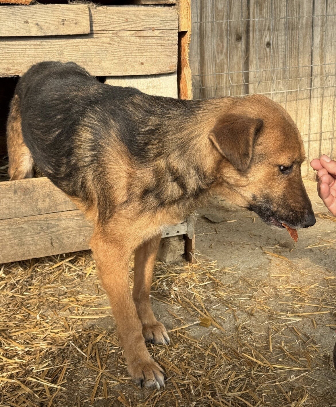 Seine Entwicklung ist wirklich berührend: Im Dezember 2024 versteckte er sich noch konsequent in seiner Hütte, doch im April 2025 kam er bereits von selbst auf Besuchende zu und ließ sich streicheln. Ein ruhiger, bescheidener Schatz, der einfach Zeit braucht – und dann leise aufblüht.
