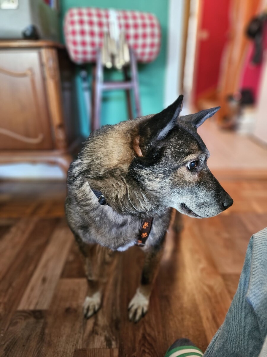 Findus kam als Notfall aus Rumänien zu seiner Pflegestelle nach Deutschland. Er hat starkes Übergewicht, das mehr ist als Kummerspeck, und dadurch Schmerzen beim Laufen, sodass er aktuell humpelt und Medikamente sowie Nahrungsergänzungsmittel bekommt. Es ist eine Ellenbogenarthrose, die mit Gewichtsverlust plus konsequente Bewegung sehr gut in den Griff bekommen werden kann.