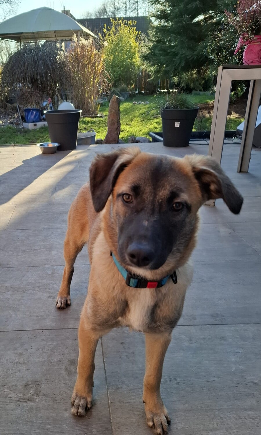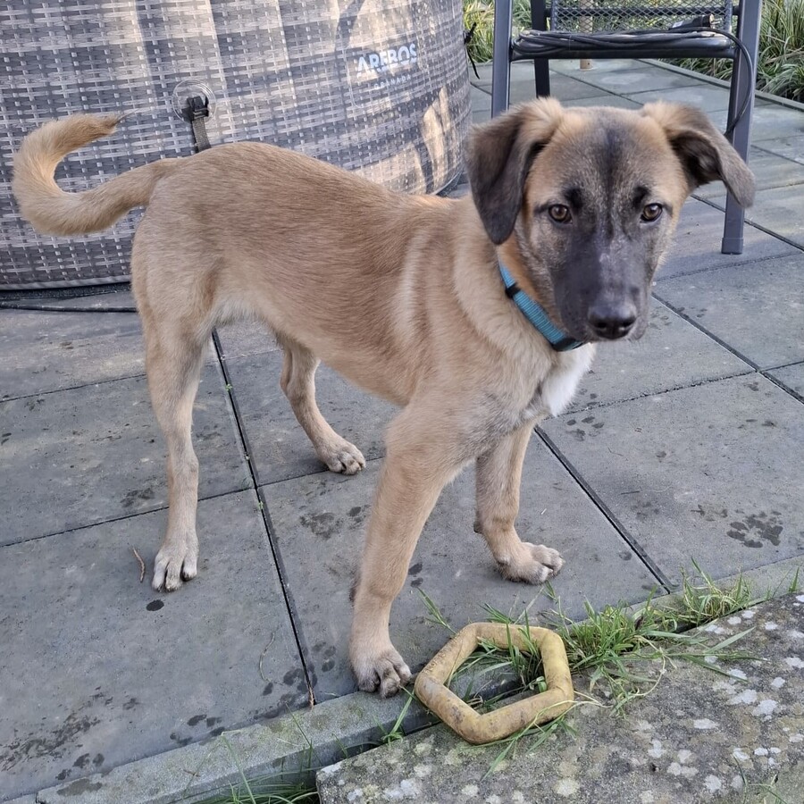 Lea, geboren am 02.06.2025, ist eine junge Hündin mit einer Schulterhöhe von ca. 48 cm und aktuell etwa 15,5 kg Gewicht. Seit dem 03.10.2025 lebt sie auf ihrer Pflegestelle in Ascheberg/Holstein.
