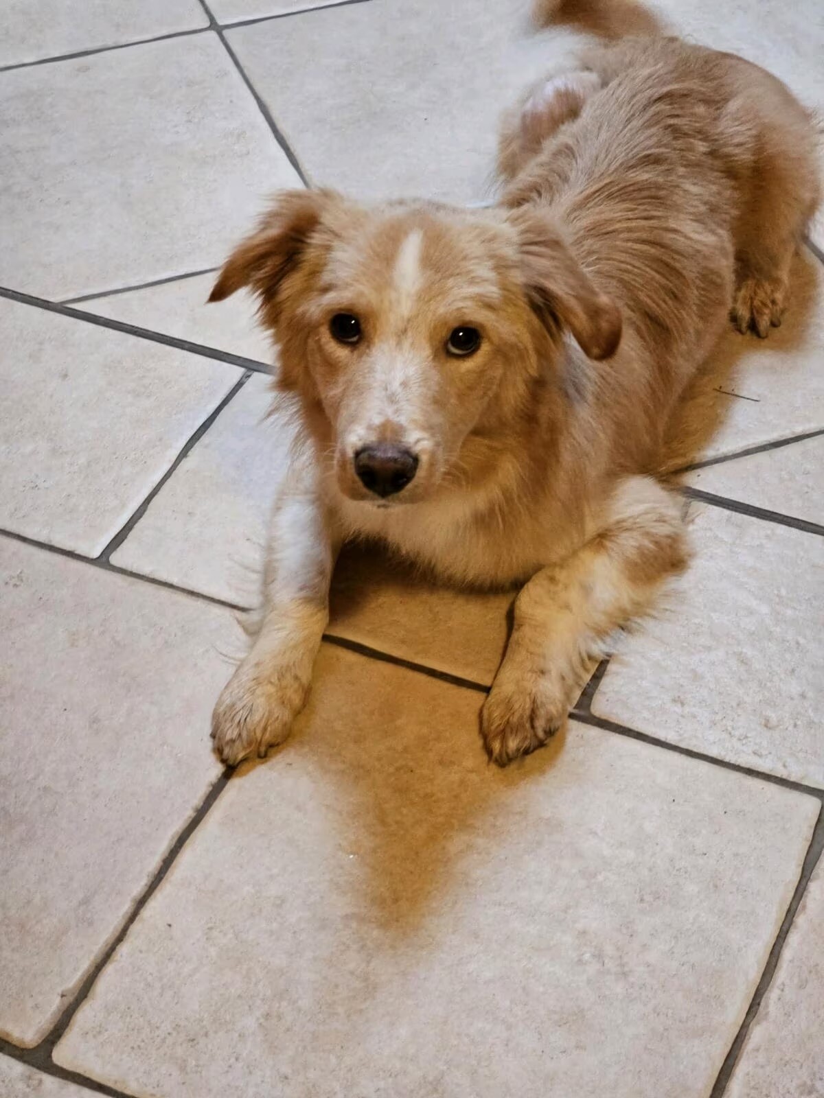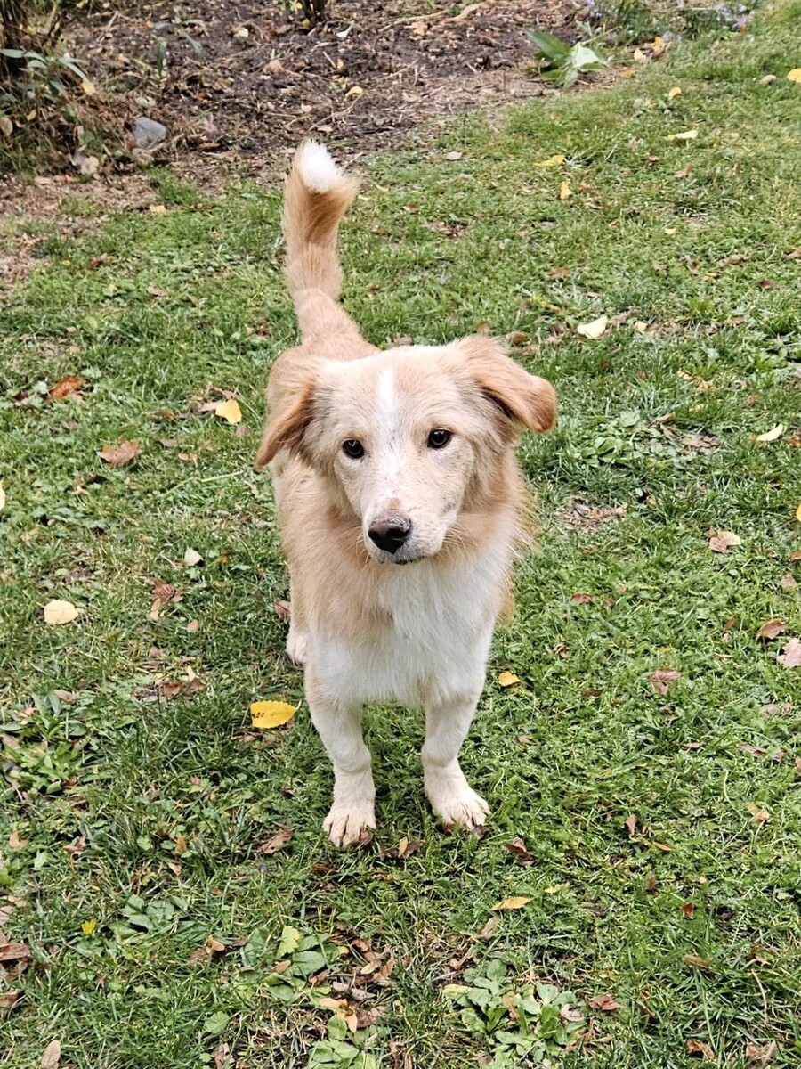 Antaeus ist 2023 geboren und hat eine Schulterhöhe von 35cm. Er ist kastriert und mit 10 kg Körpergewicht noch untergewichtig.