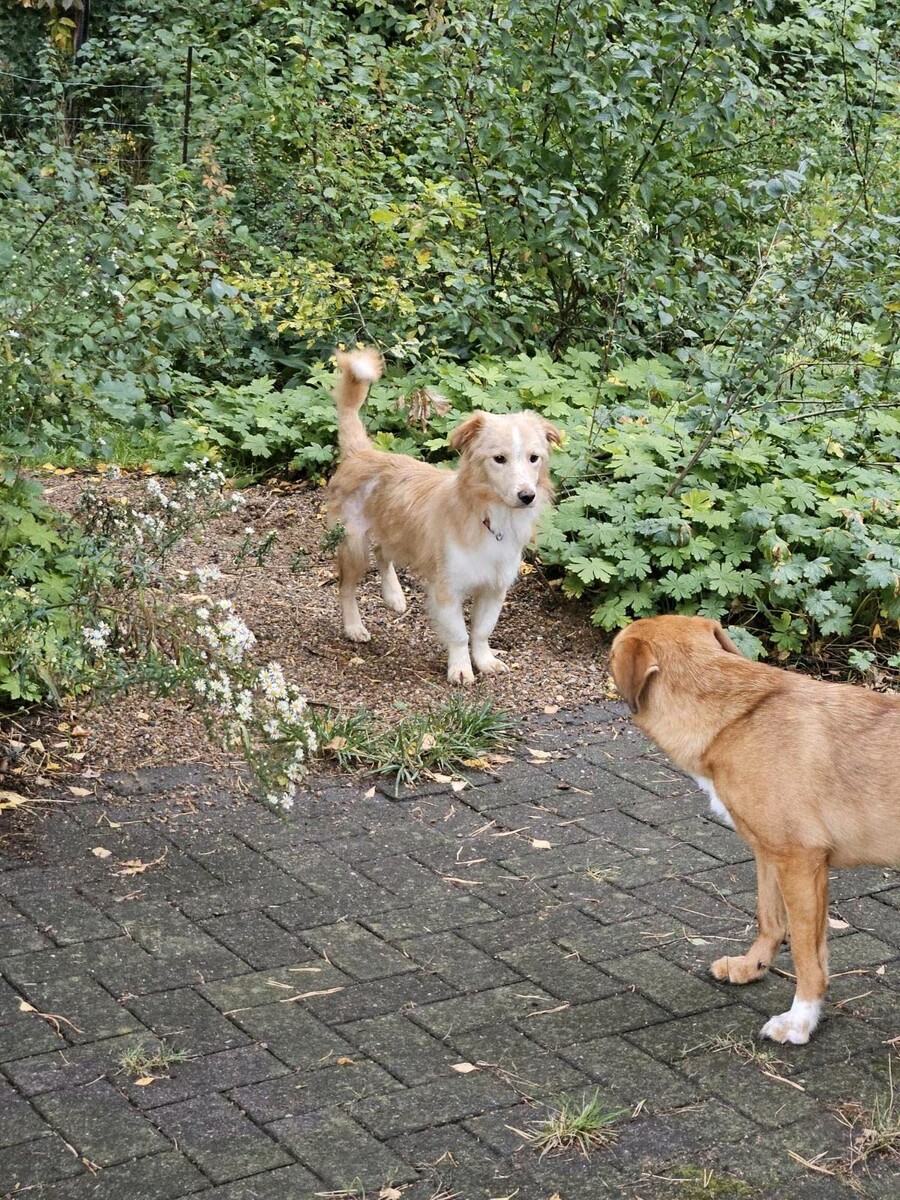 Der freundliche junge Rüde ist am 4.10. in Deutschland angekommen. Jetzt ist alles neu und Antaeus meistert die Umstellung großartig. Er braucht ein paar Minuten um sich einzustellen und dann zeigt sich der kleine Kerl aufgeschlossen und zugänglich. Antaeus genießt die Nähe zu seinen Menschen sehr, egal ob bei Aktivitäten oder Streicheleinheiten. Bei Spaziergängen ist der hübsche Rüde ein angenehmer Begleiter, der weder an der Leine zieht, noch auf pöbelnde Hunde einsteigt. Antaeus orientiert sich gerne am Menschen, bei Hunden Annäherungen bevorzugt er ein gemäßigtes Tempo, ist aber grundsätzlich verträglich und interessiert.