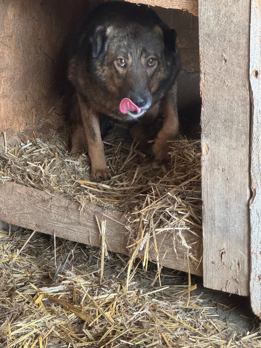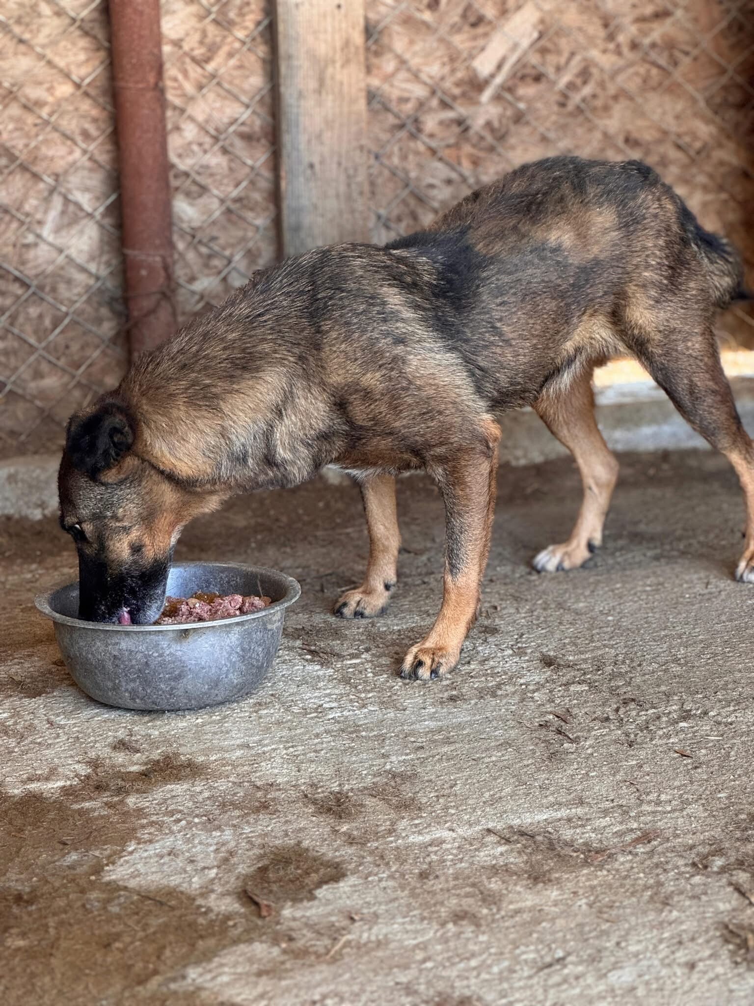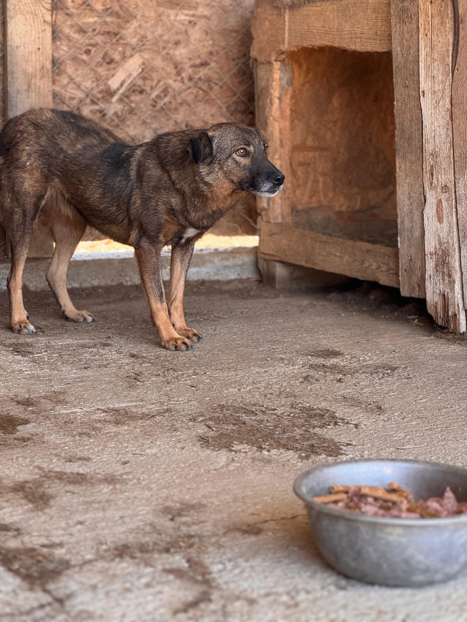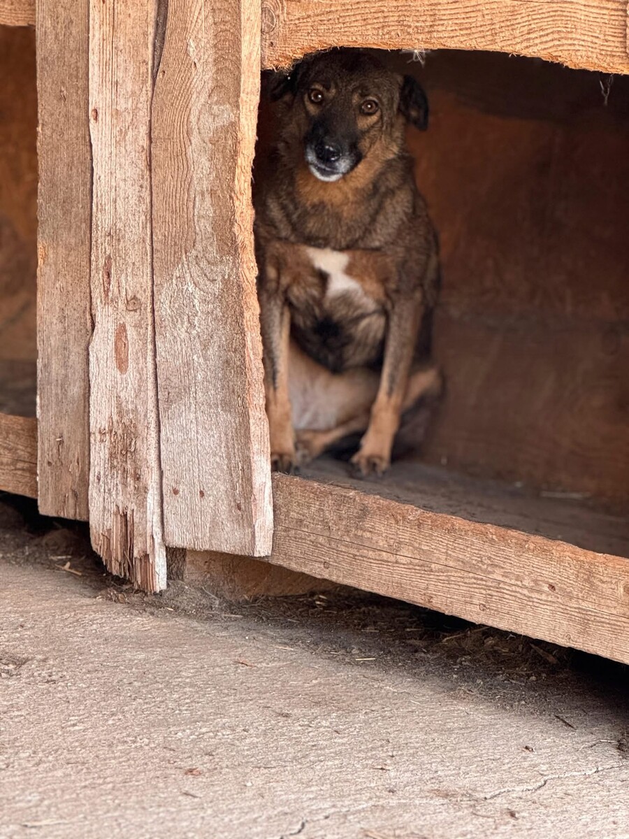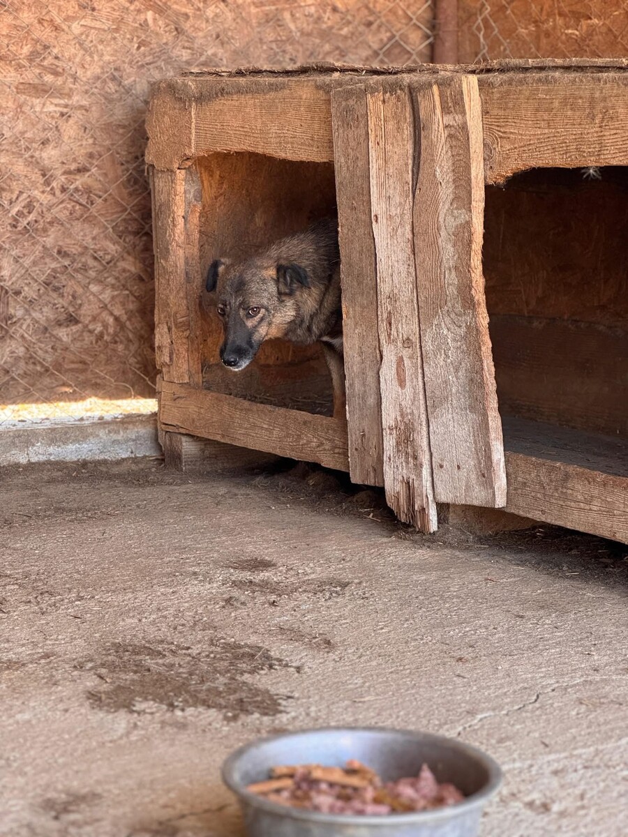 Im Shelter von Campurelu kommt sie neugierig zum Gitter, zieht sich dann wieder zurück, wagt erneut einen Schritt nach vorne – ein deutliches Zeichen dafür, dass sie gerne möchte, sich aber noch nicht traut, voll und ganz zu vertrauen. Angereichtes Futter nimmt sie bereits aus der Hand, und auch beim Nassfutter zeigt sie sich mutig und kommt aus ihrer Hütte hervor.