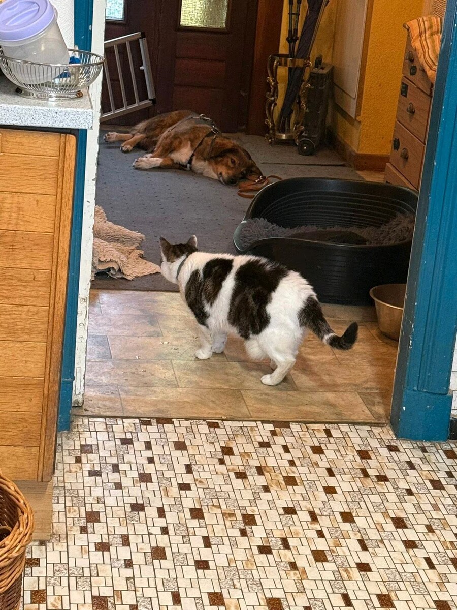 Sie verträgt sich mit meinen Hunden, hat kein Problem mit hundegewohnten Katzen.
