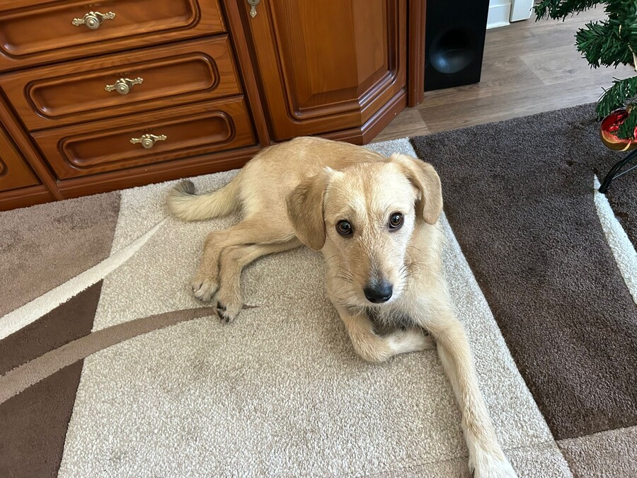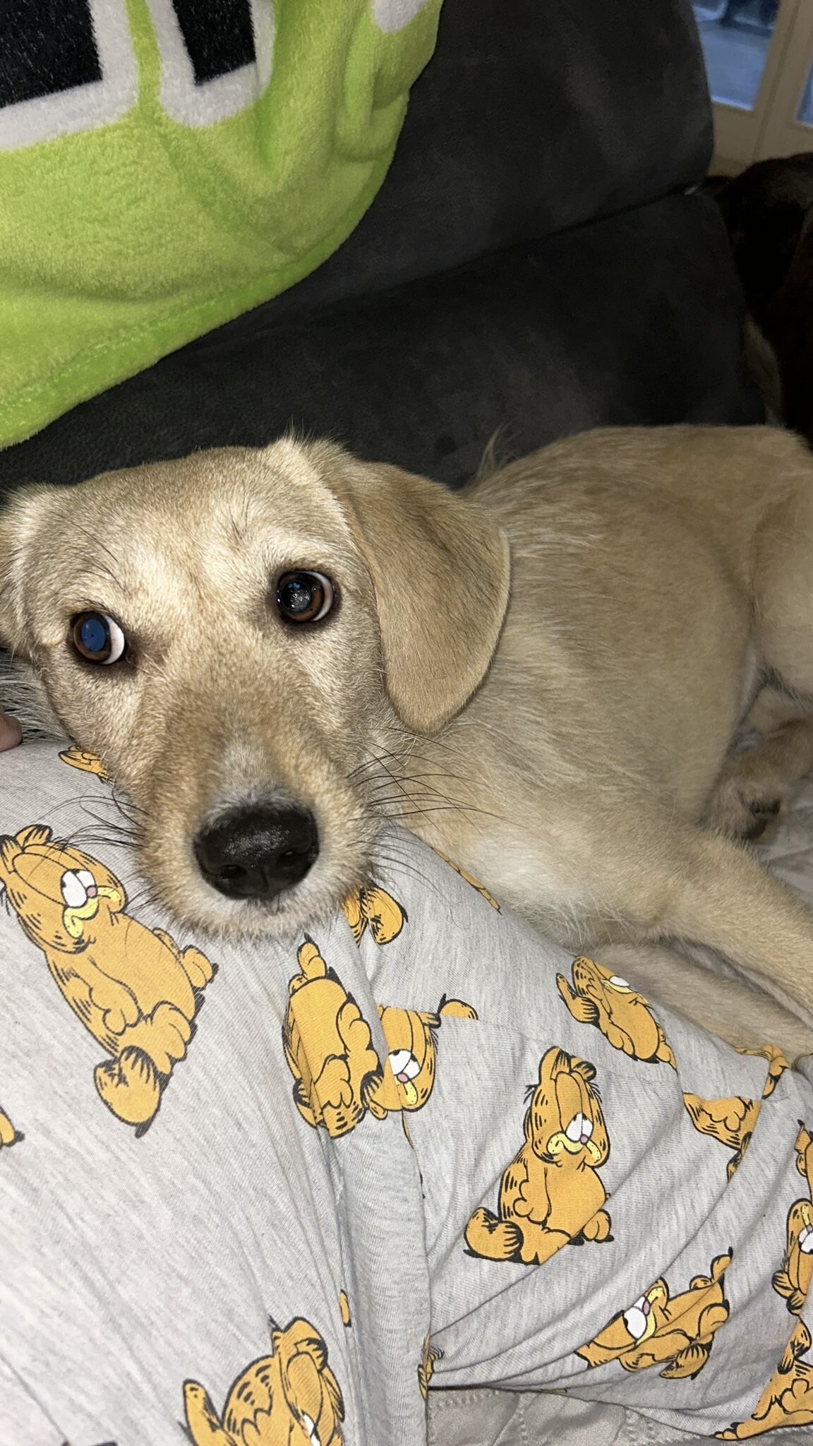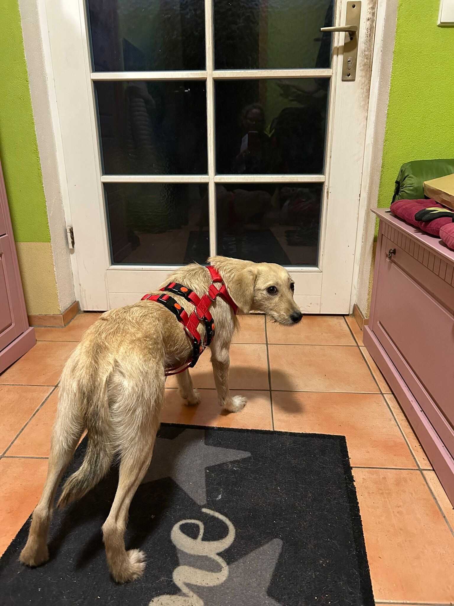 Sie ist vor Kurzem bei ihrer Pflegemama angekommen und ist unendlich dankbar, es bis hier hin geschafft zu haben. Sie wurde in Rumänien auf einem Feld alleine mit anderen Welpen gefunden. Aufgrund ihrer Vorgeschichte ist die noch recht dünn, aber hier wird sie nach und nach aufgepäppelt und gut versorgt.