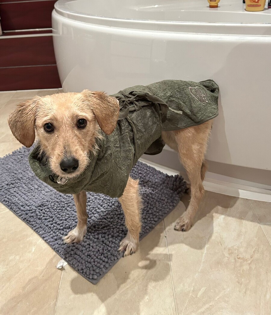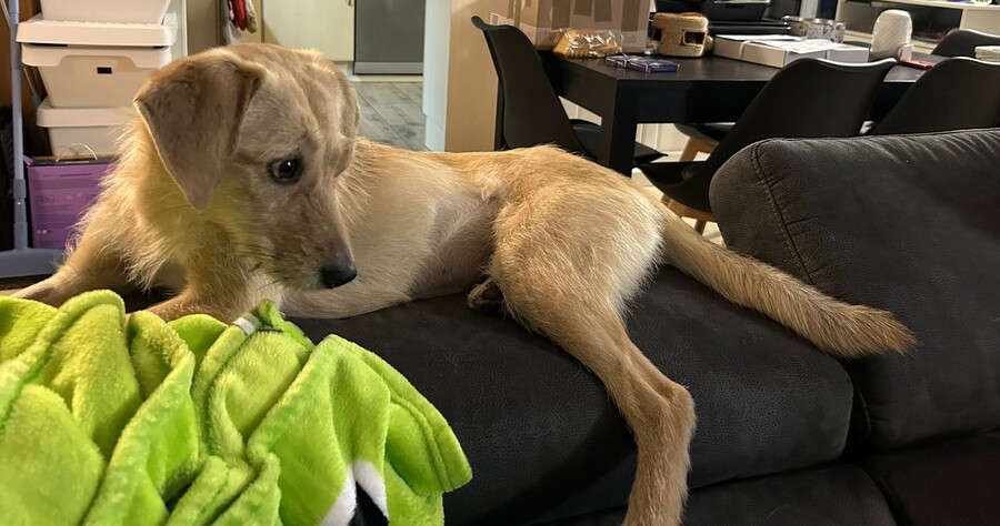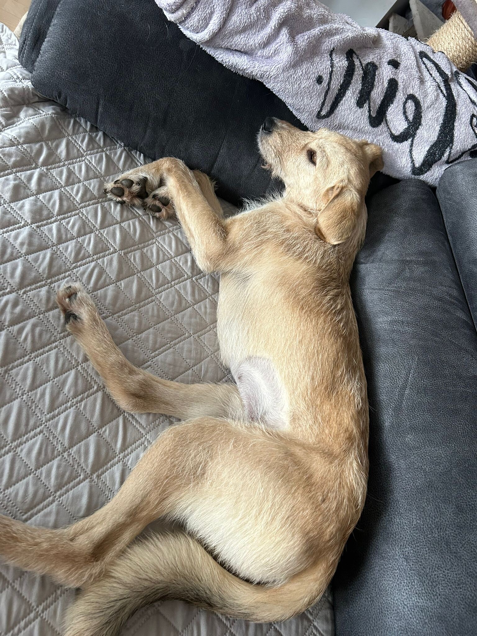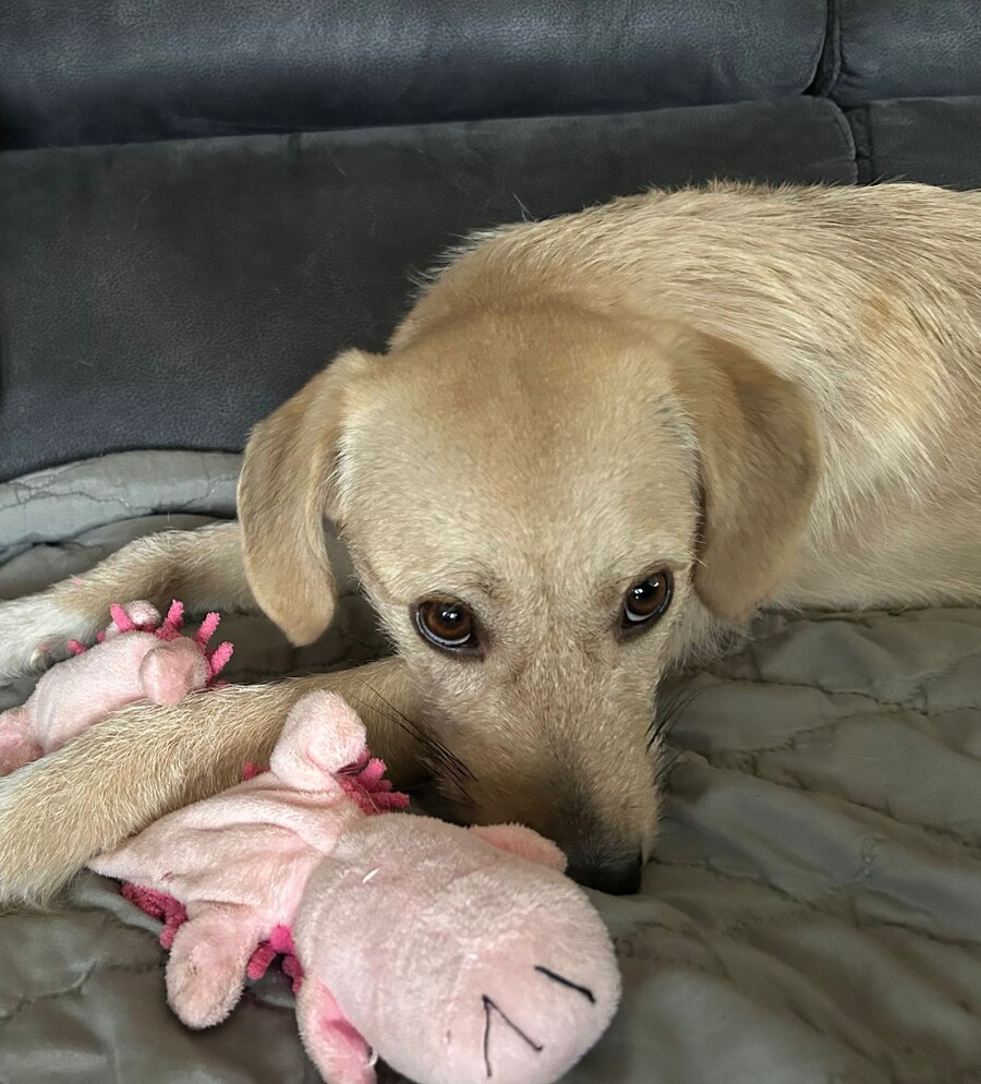 Sie ist vor Kurzem bei ihrer Pflegemama angekommen und ist unendlich dankbar, es bis hier hin geschafft zu haben. Sie wurde in Rumänien auf einem Feld alleine mit anderen Welpen gefunden. Aufgrund ihrer Vorgeschichte ist die noch recht dünn, aber hier wird sie nach und nach aufgepäppelt und gut versorgt.