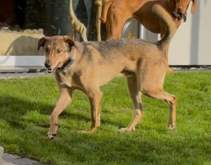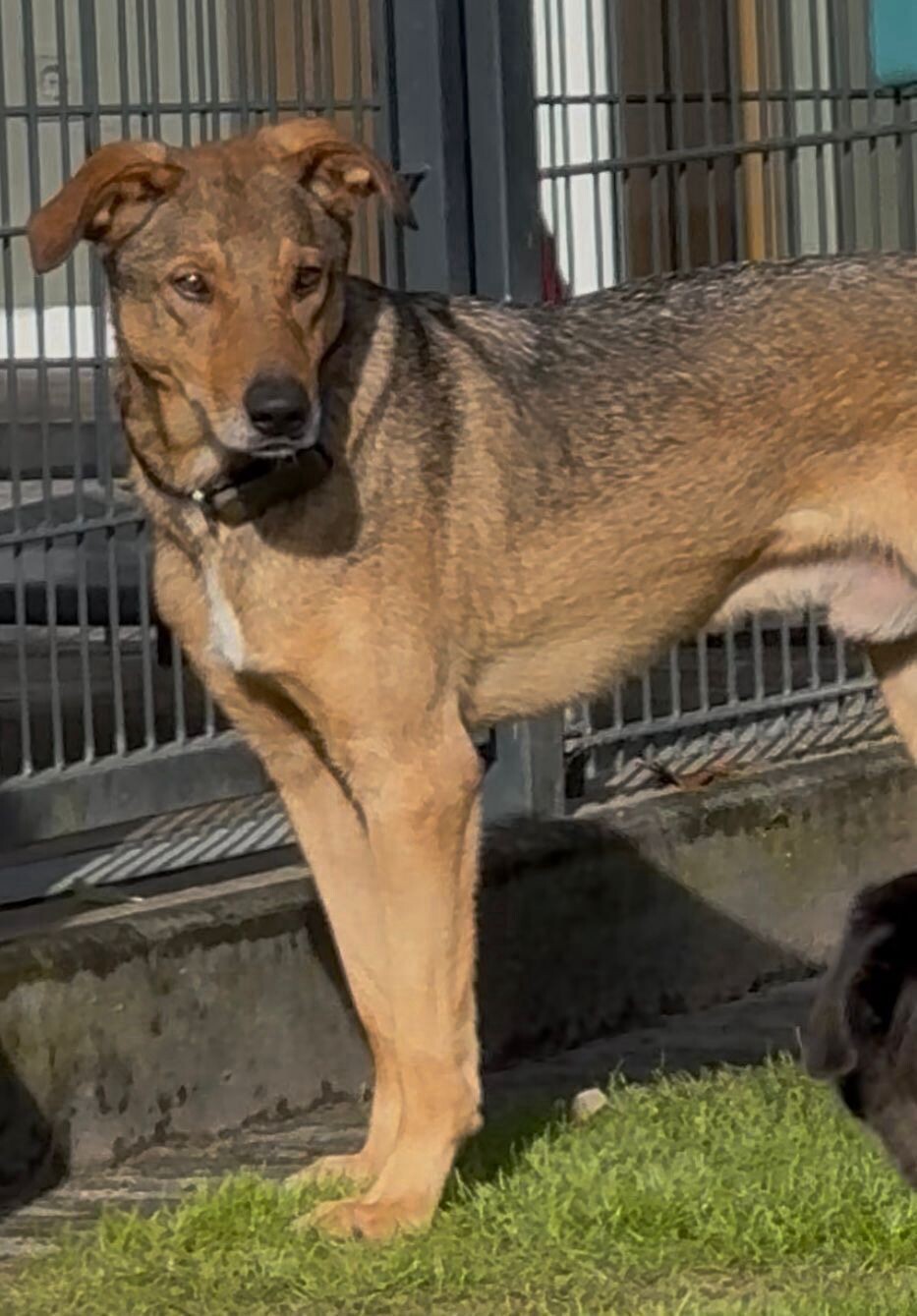 Dustin, geboren 2021, ist ein etwa 55 cm großer Rüde mit einem offenen Herzen und einem freundlichen Wesen. Schon im rumänischen Shelter fiel er durch seine Zugewandtheit, Menschenfreundlichkeit und Gelassenheit auf. Besucher wurden von ihm stets freudig begrüßt, und jede liebevolle Aufmerksamkeit nahm er dankbar an. Auch mit anderen Hunden zeigte er sich durchweg sozial und friedlich.