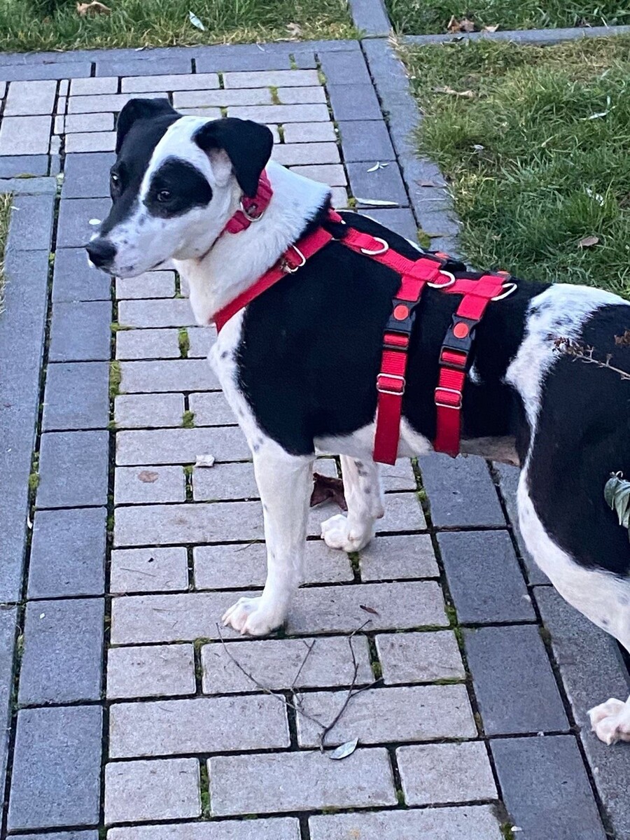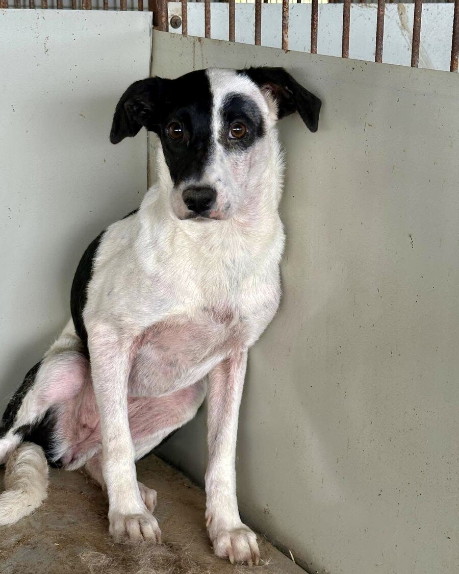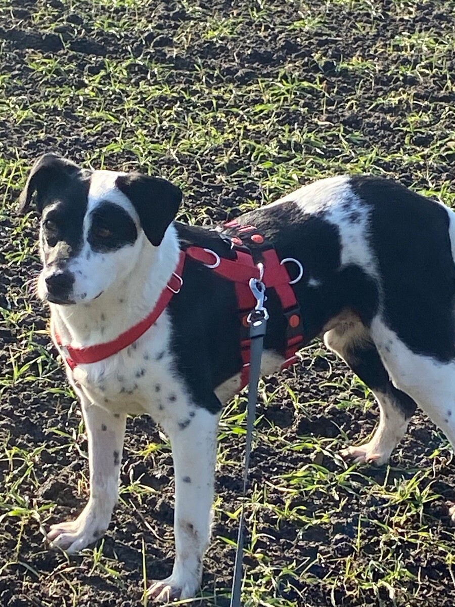 Vicky ist eine etwa 2024 geborene, rund 45 cm große Hündin mit einer ganz besonderen und auffälligen Fellzeichnung im Gesicht. Ihr wahres Strahlen liegt jedoch in ihrem Wesen. Seit dem 10.01.2026 lebt sie auf ihrer Pflegestelle.
