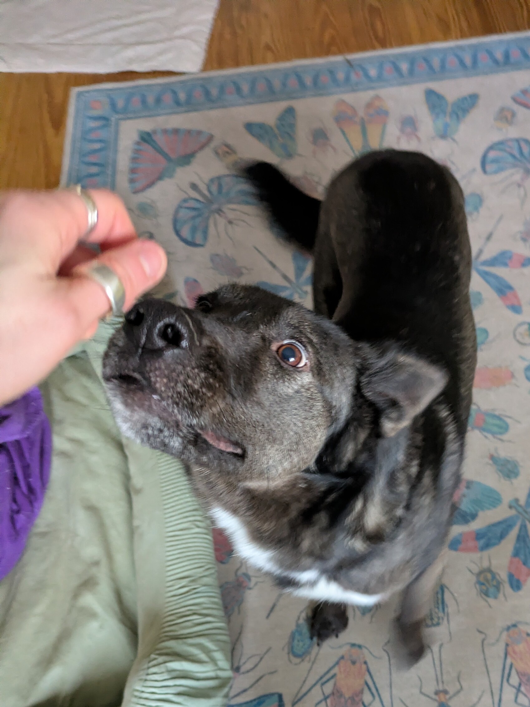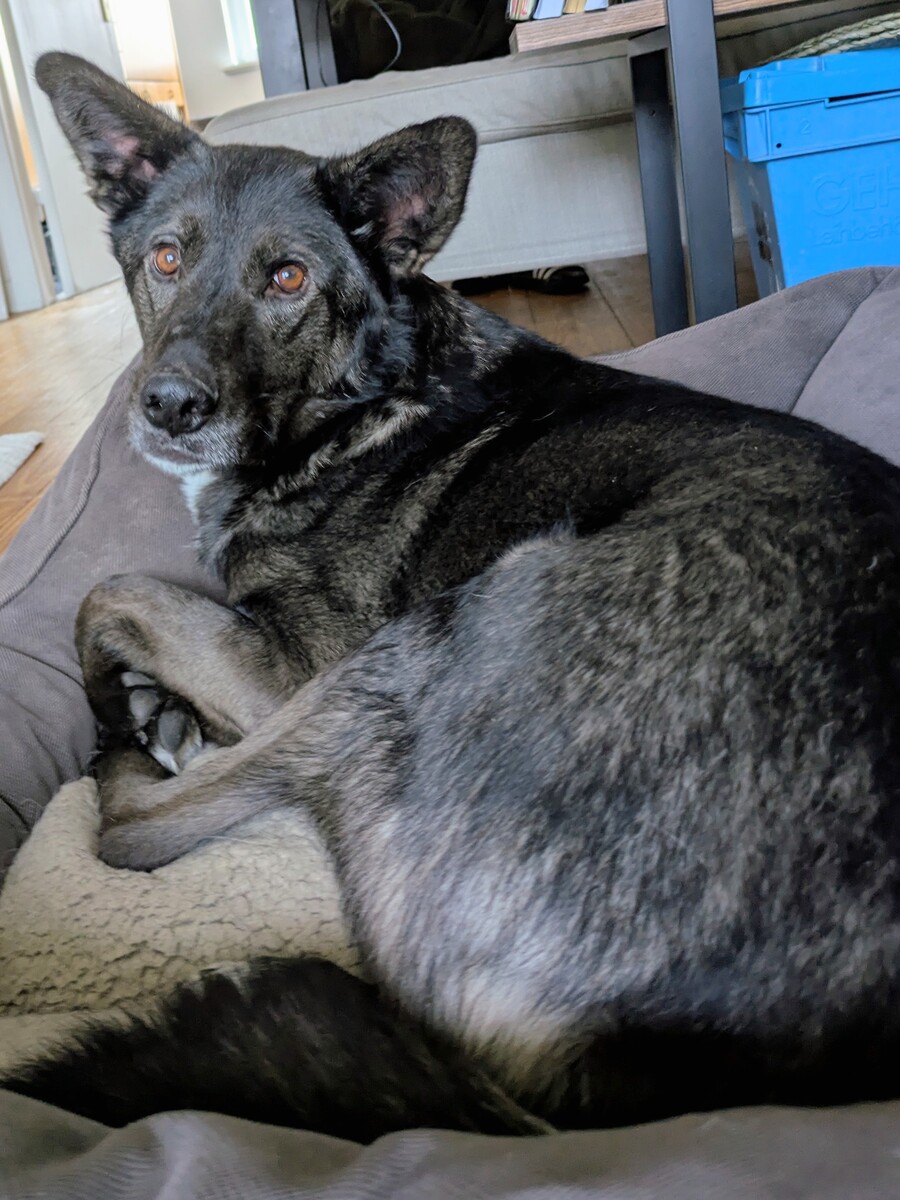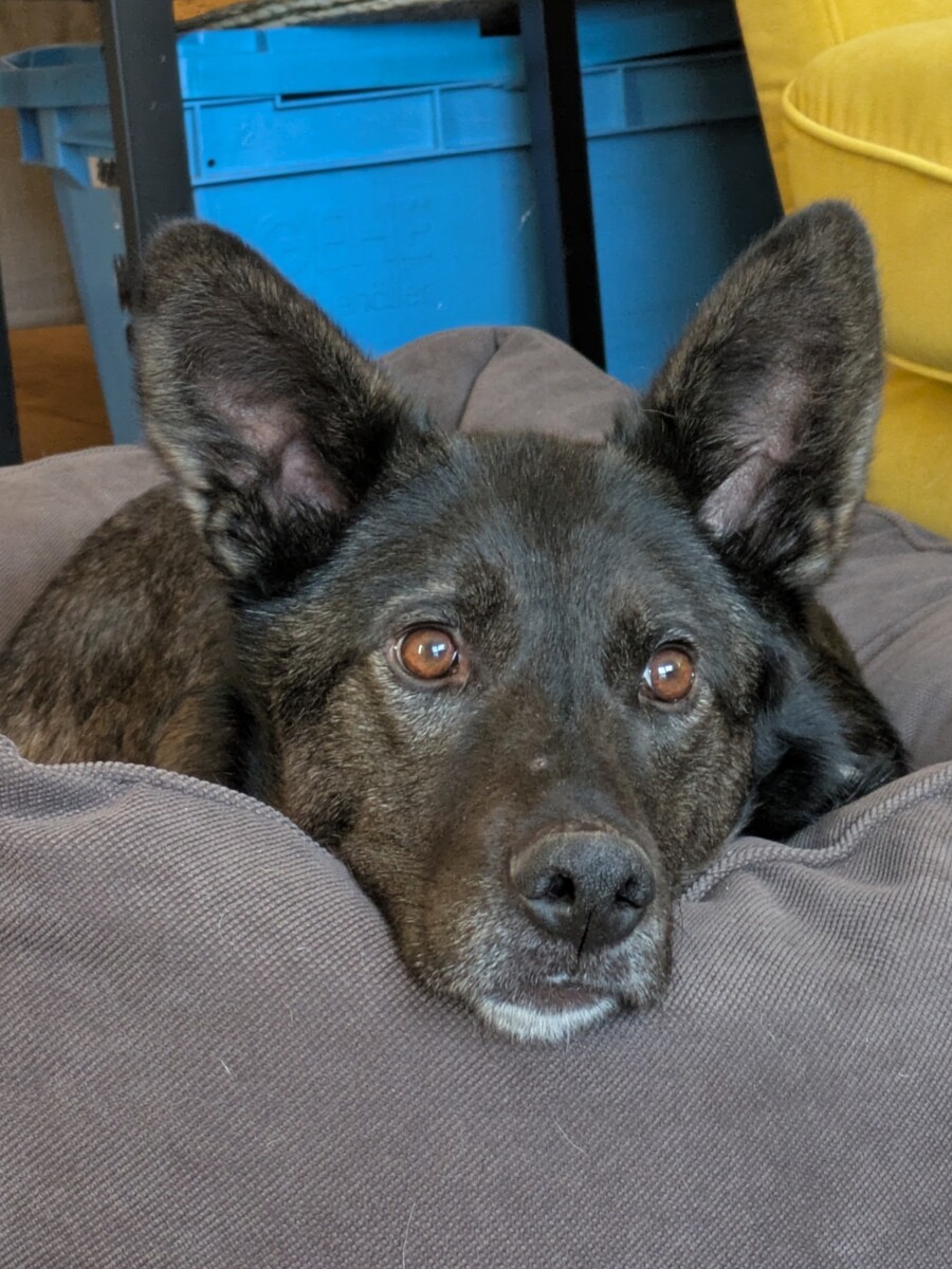 Er ist seit Mitte Januar auf seiner Pflegestelle und war von Anfang an ein wahrer Schatz: Hier zeigt er sich angenehm unaufgeregt, verschmust und genießt die Nähe seiner Bezugspersonen sehr. Er ist ein treuer Begleiter, der sich eng an „seine“ Menschen bindet.