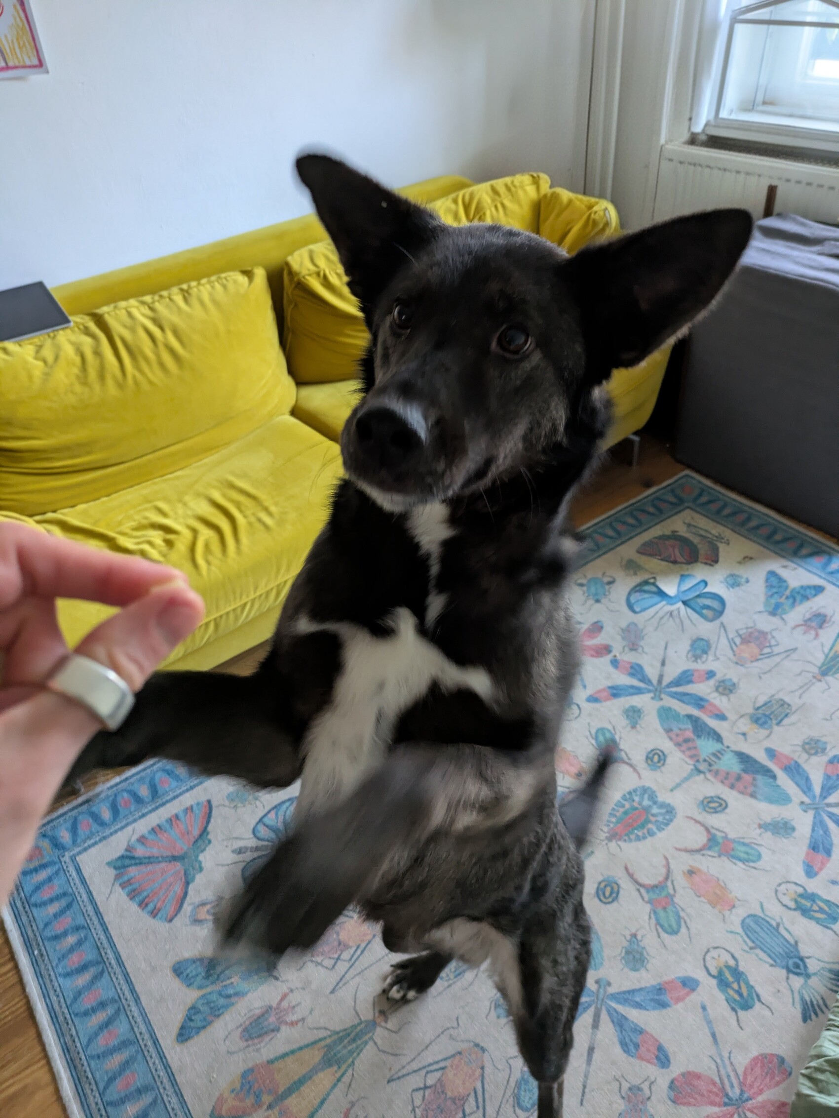 Draußen ist Ares vorsichtig, aber nicht ängstlich. Er geht gemütlich spazieren, ist leinenführig und insgesamt unkompliziert im Alltag. In der Wohnung ist er recht ruhig, stubenrein und kann bereits für eine gewisse Zeit alleine bleiben.