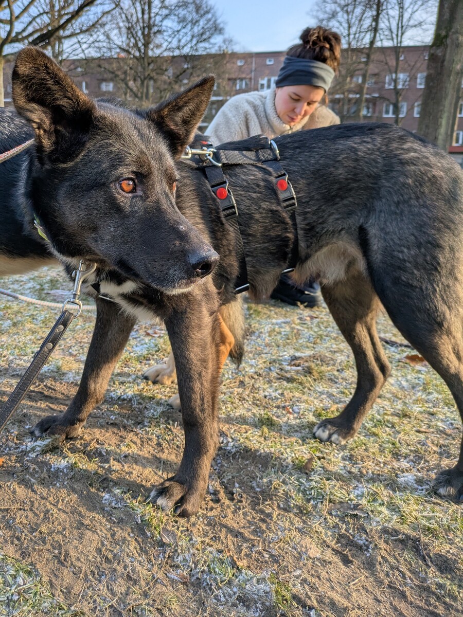 Ares (vorher bekannt als Nero) ist ein sensibler, ruhiger und sehr menschenbezogener Hund. Er ist etwa 3 Jahre alt (ca. geb. 12/2022) und zählt mit seinen 61 cm Schulterhöhe zu den eher größeren Rüden.