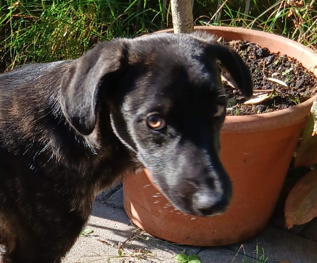 Er muß noch alles lernen, ob es die Stubenreinheit oder das Laufen an der Leine ist.
