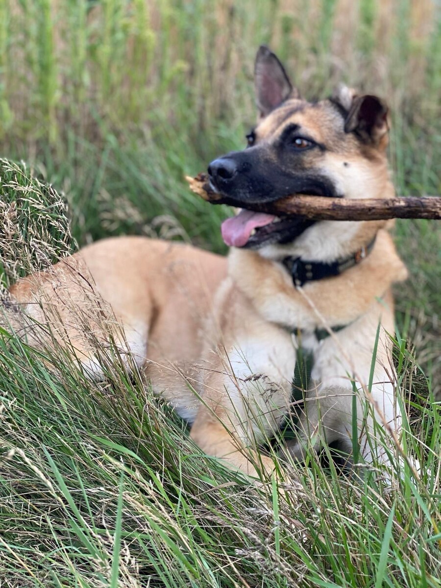 Zelda ist eine lernwillige, sensible und kluge Hündin. Die Mischlingshündin mit Schäferhund-Anteil ist etwa 2020-2021 geboren und liebt lange Spaziergänge in der Natur.