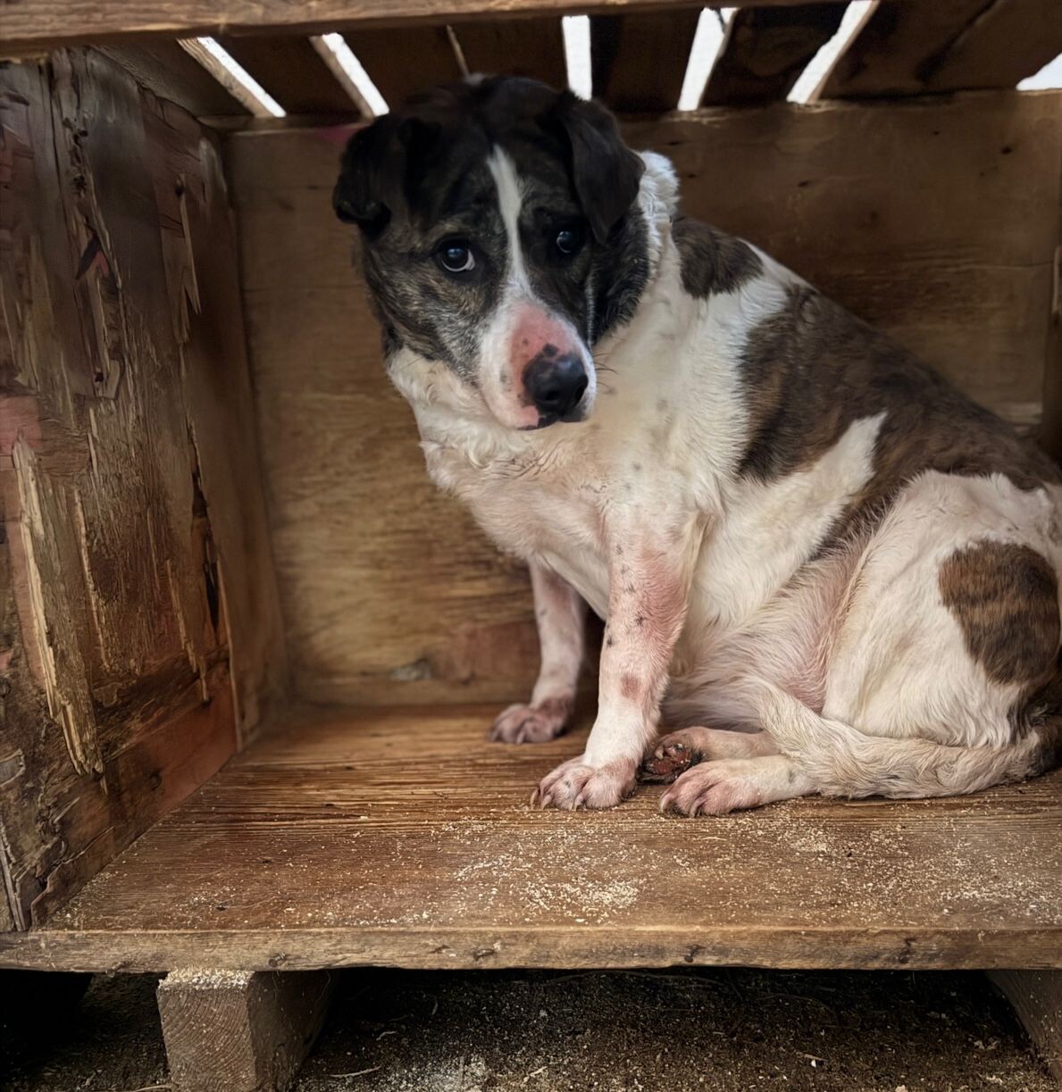 Fee (geb. ca. 2019) ist eine etwa 50 cm große Hündin, die sich aktuell in einer Pension in Rumänien befindet – und dort körperlich wie seelisch zunehmend abbaut. Sie ist ein absoluter Notfall, der dringend einen Neustart braucht.