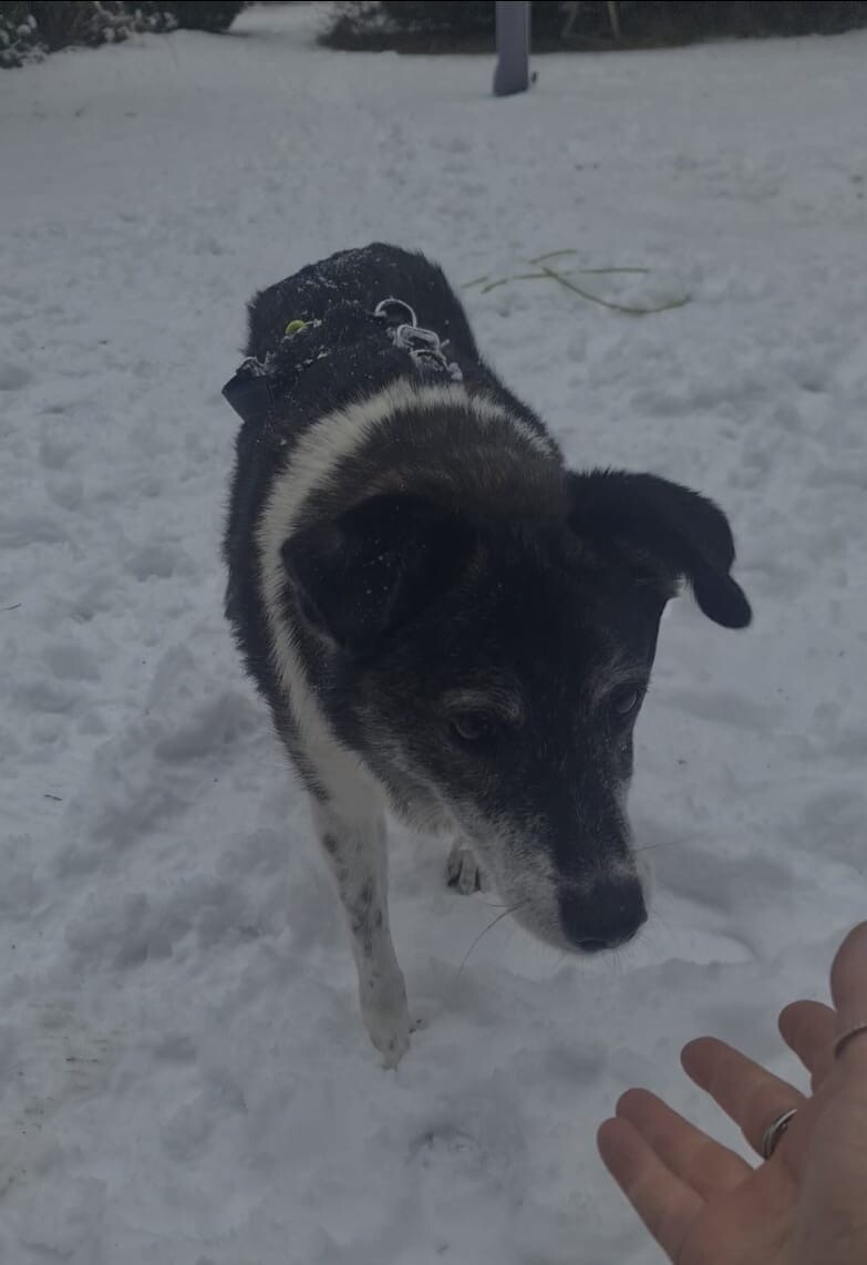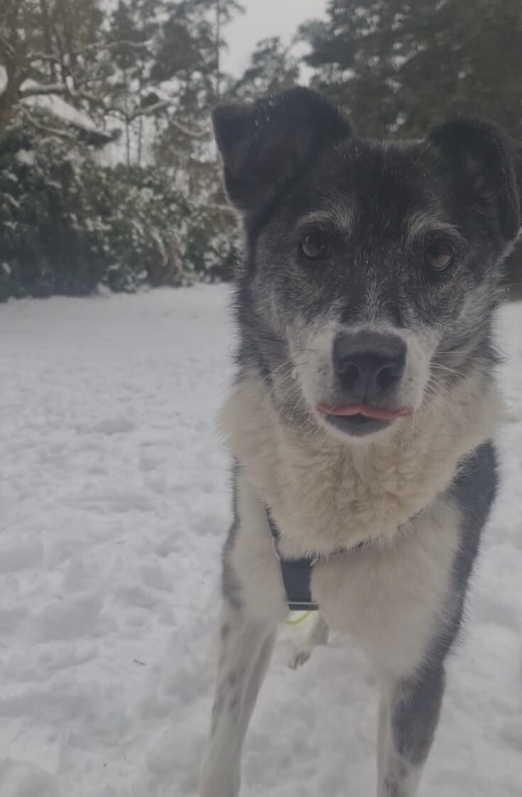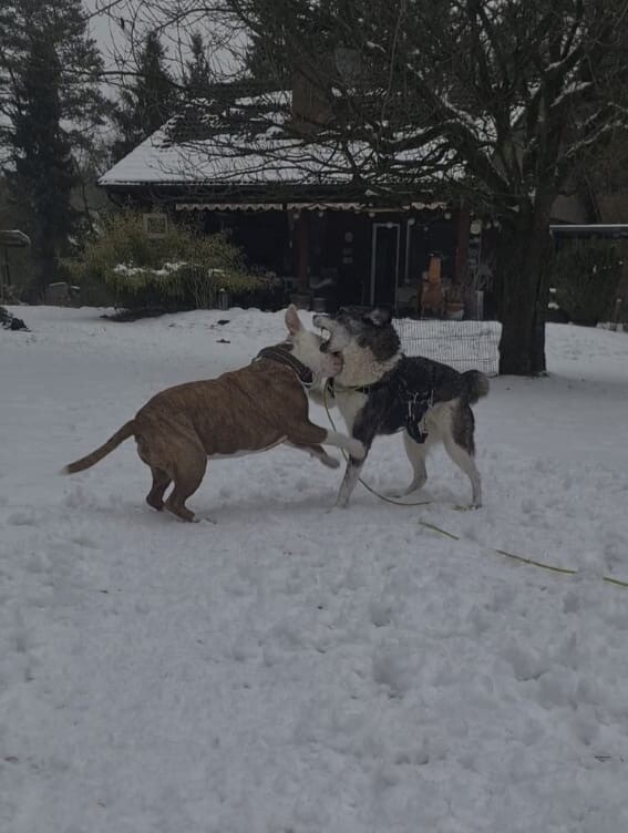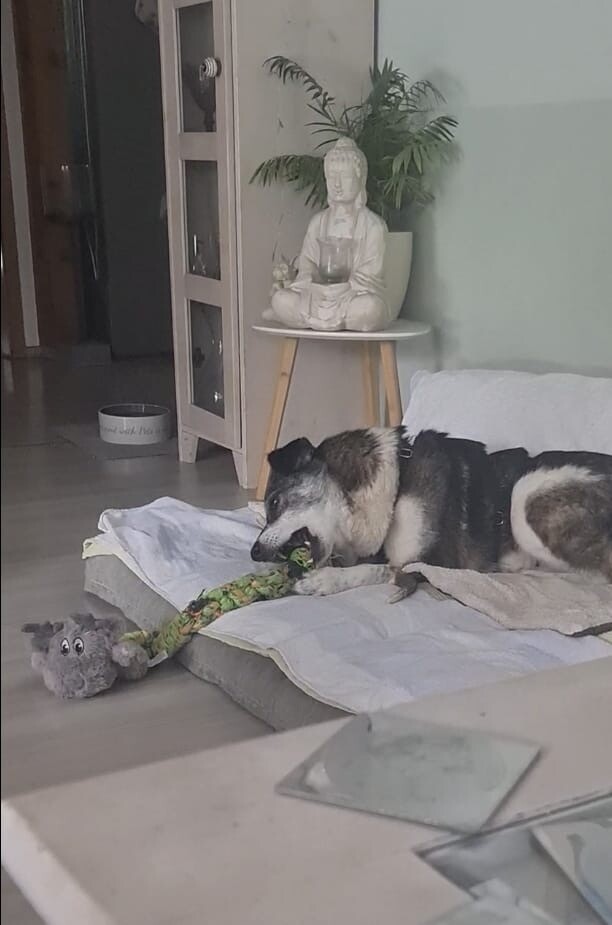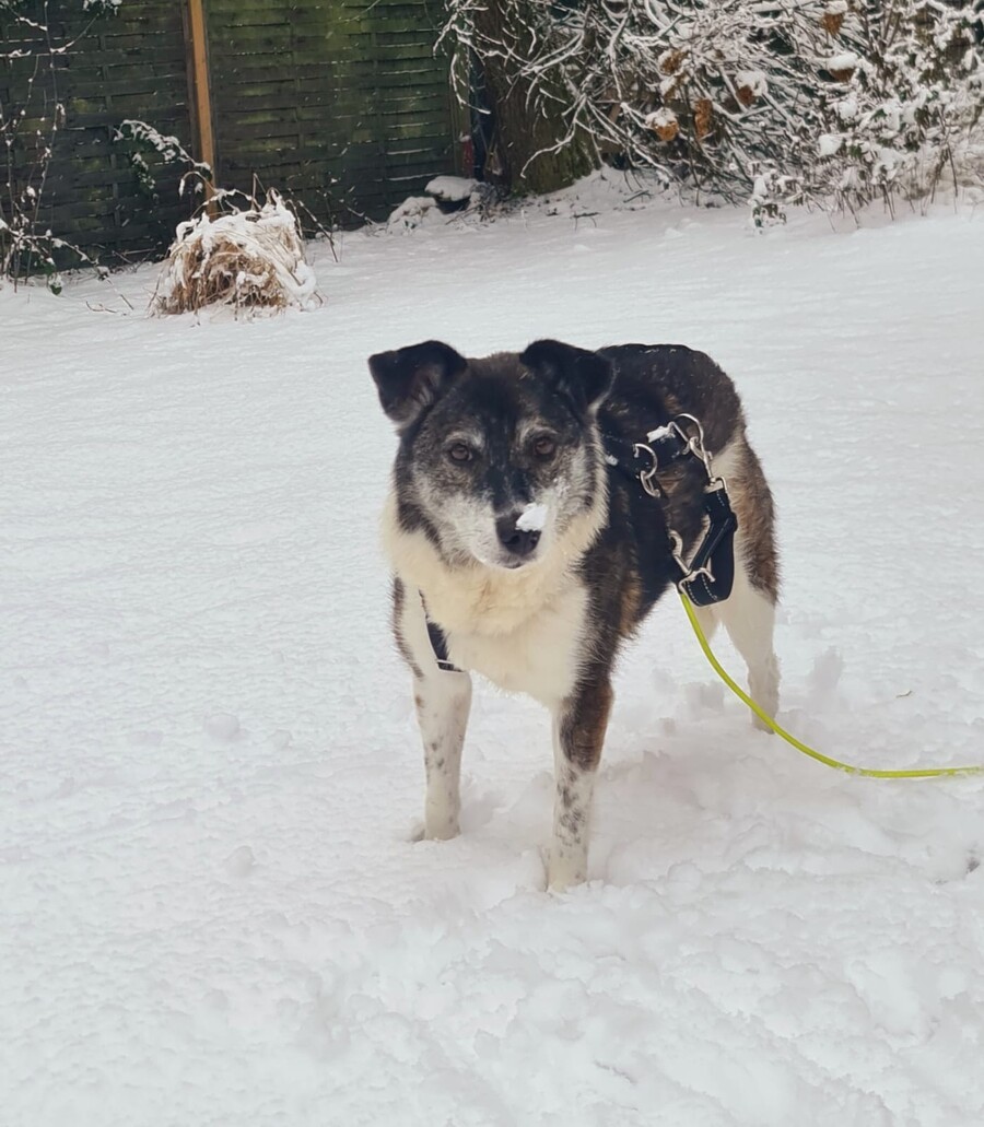 Mit dem vorhandenen Rüden lebt sie harmonisch zusammen, auch eine Katze im Haushalt ist kein Problem. Struktur und feste Abläufe geben ihr Orientierung. Sie lässt sich das Geschirr anlegen, nimmt Leckerlis vorsichtig aus der Hand und bewegt sich im Haus ruhig und unauffällig. Ihre Geschäfte erledigt sie zuverlässig draußen und einige Stunden alleine bleiben meistert sie problemlos.