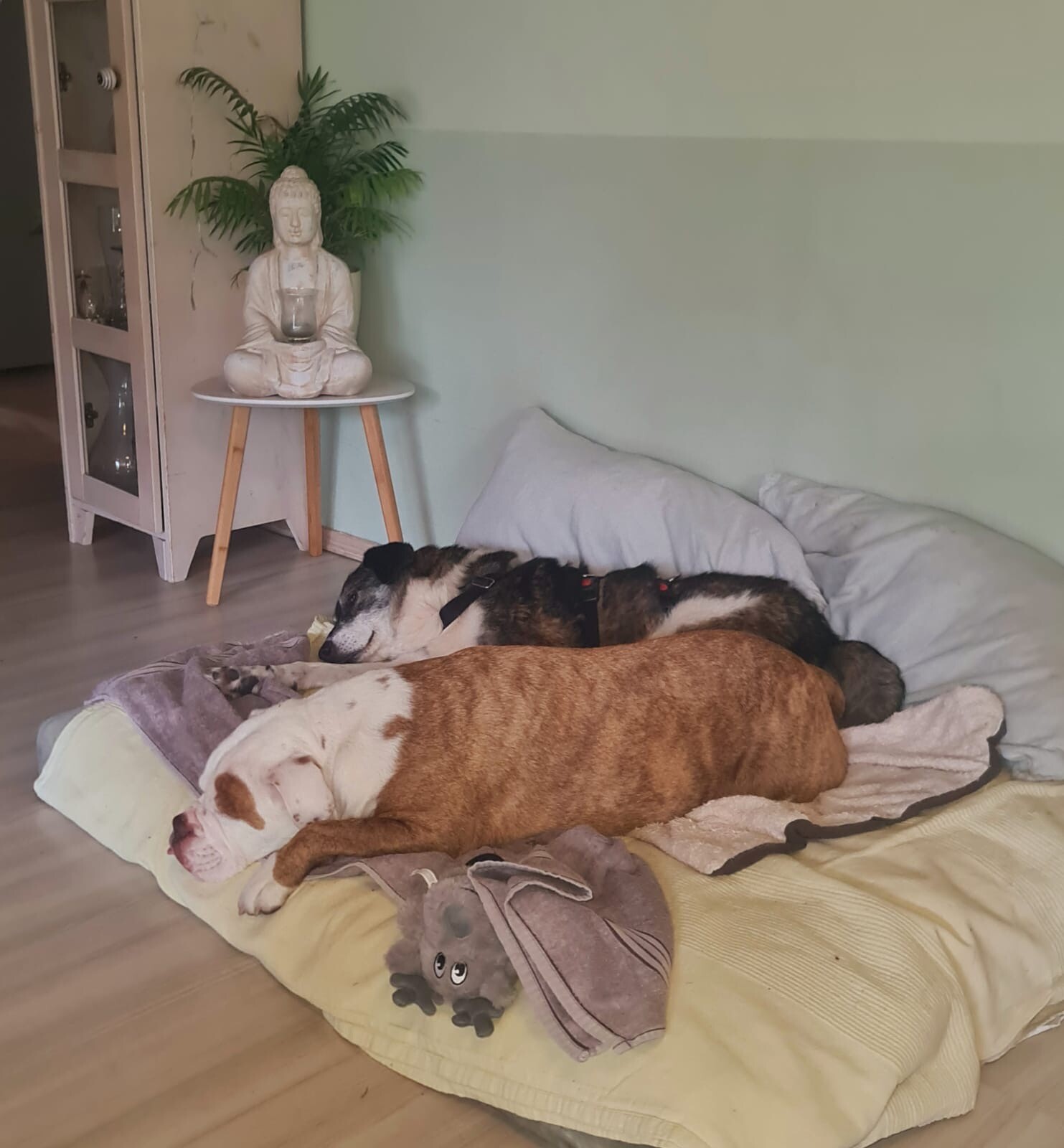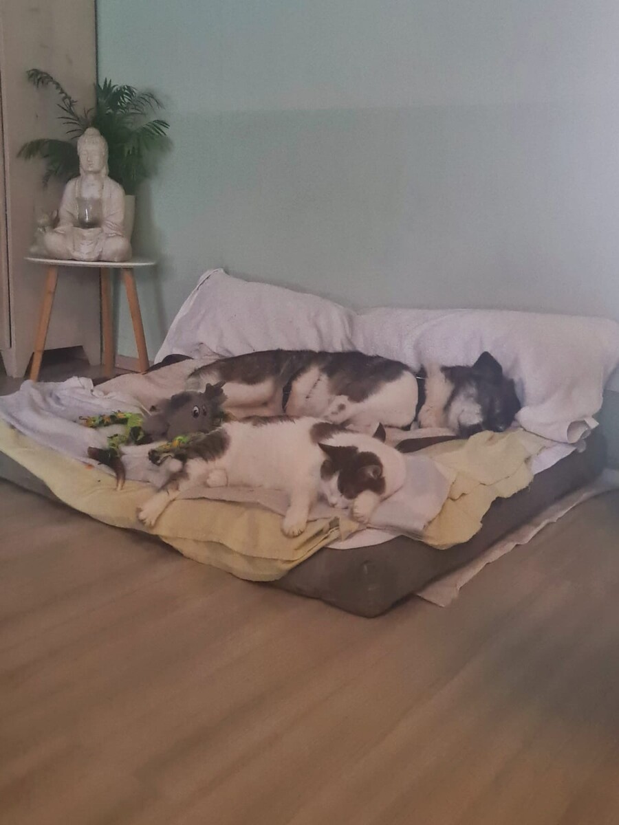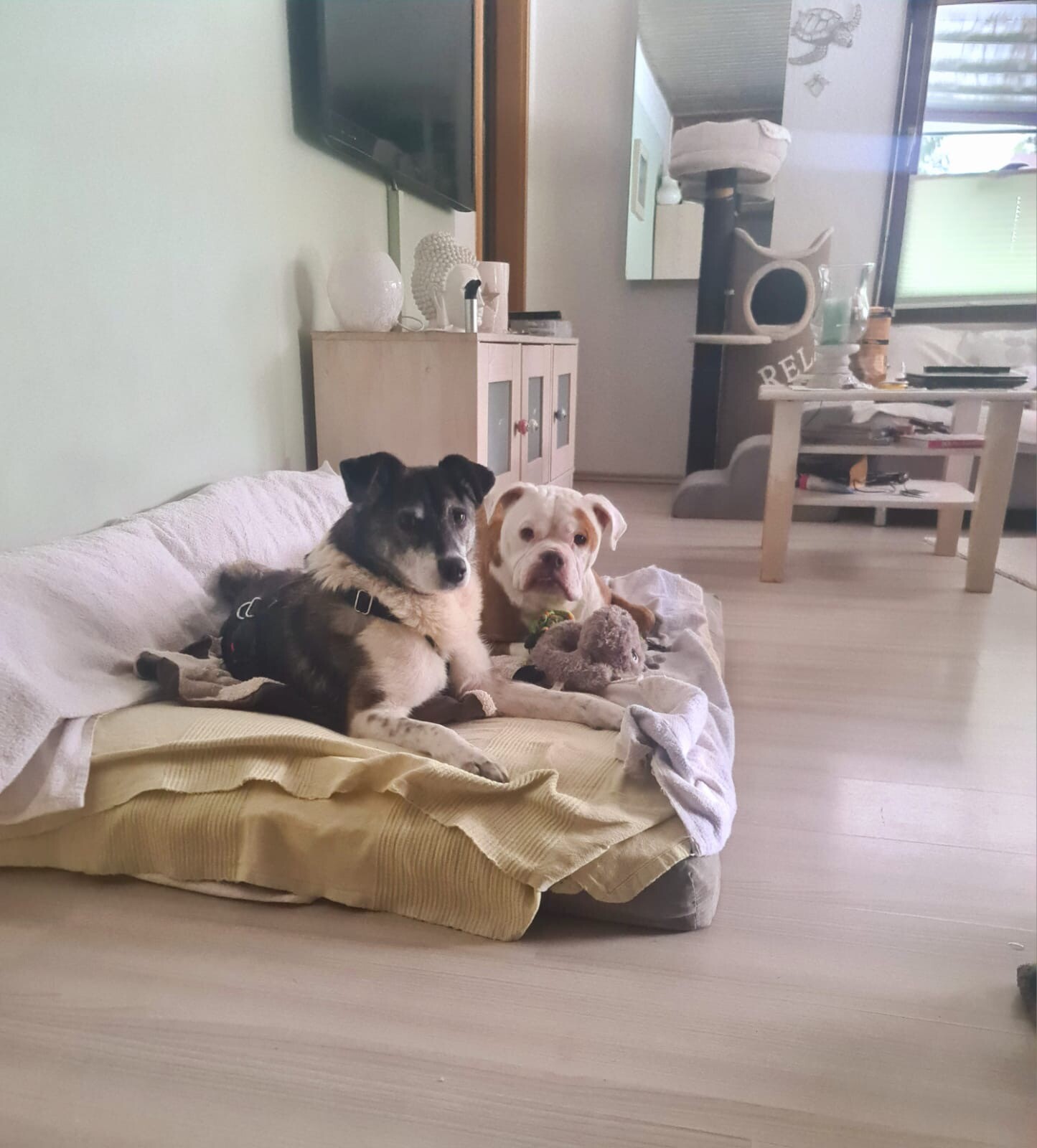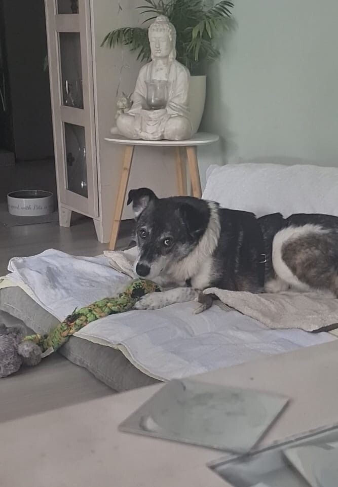 Mit dem vorhandenen Rüden lebt sie harmonisch zusammen, auch eine Katze im Haushalt ist kein Problem. Struktur und feste Abläufe geben ihr Orientierung. Sie lässt sich das Geschirr anlegen, nimmt Leckerlis vorsichtig aus der Hand und bewegt sich im Haus ruhig und unauffällig. Ihre Geschäfte erledigt sie zuverlässig draußen und einige Stunden alleine bleiben meistert sie problemlos.