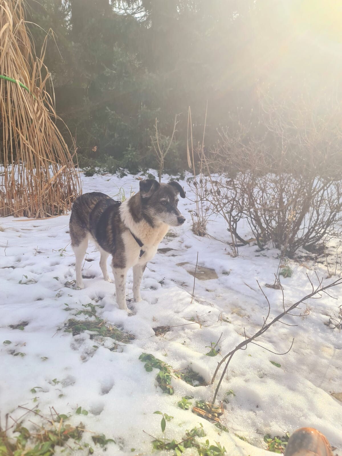 Draußen wie drinnen braucht sie weiterhin einfühlsame, verlässliche Menschen, die sie nicht bedrängen und ihr Sicherheit vermitteln. Mit ihren etwa 18 kg bei 46 cm Größe ist sie eine zarte Hündin, die im geschützten Garten auch ihre fröhliche Seite zeigt und ausgelassen hüpfen kann.