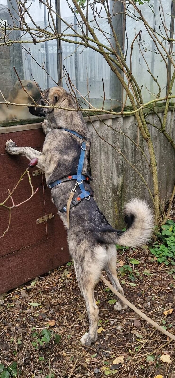 Mona hat mit knapp 1 Jahr bereits eine Schulterhöhe von ca 65 cm . Die junge Hündin sucht ein Zuhause auf dem Land mit einem großen eingezäunten Grundstück . Sie ist anfänglich mit Fremden etwas unsicher und sucht daher Menschen die ihr die Sicherheit geben , damit sie sich zu einer tollen Begleiterin entwickeln kann.