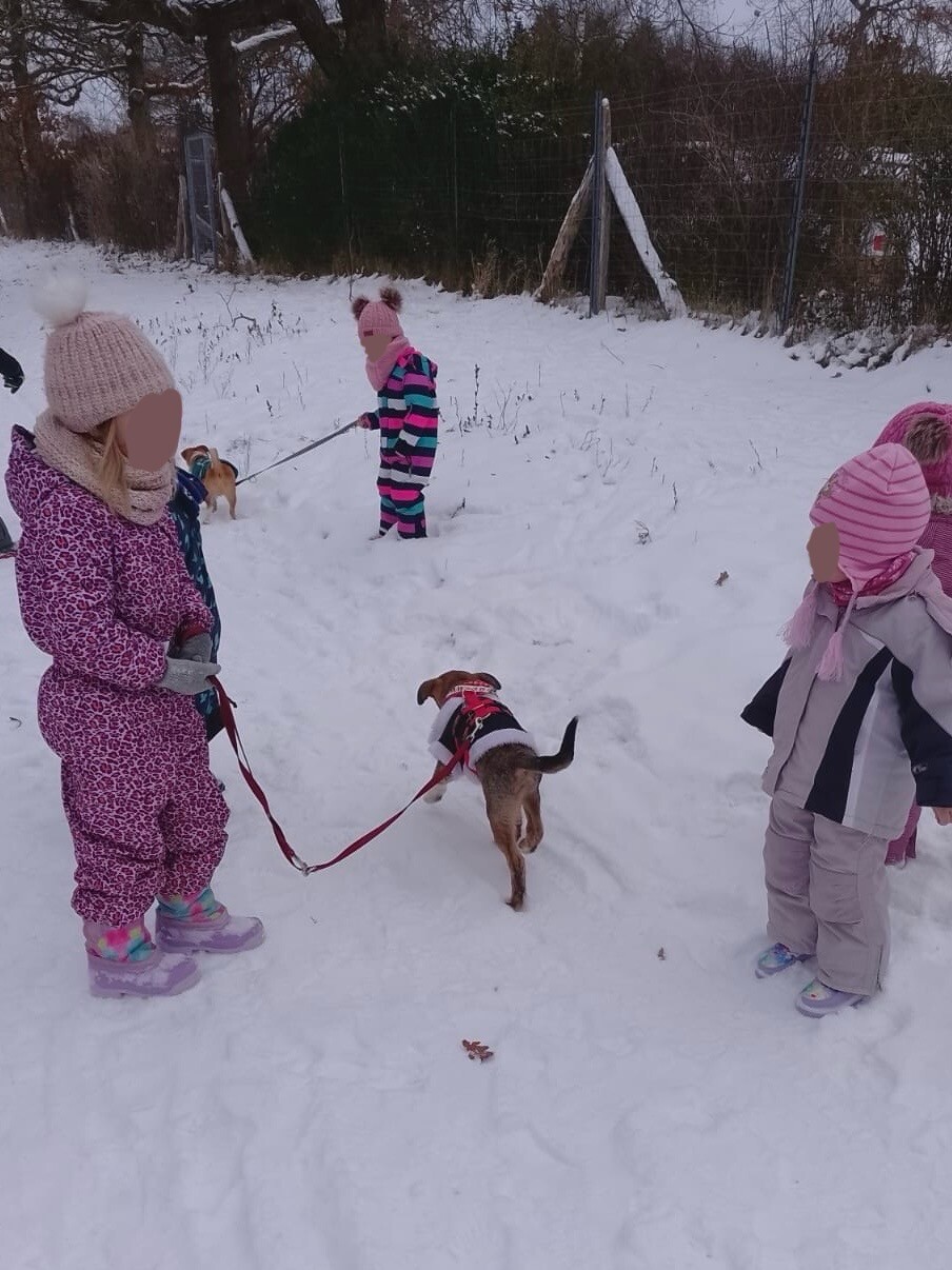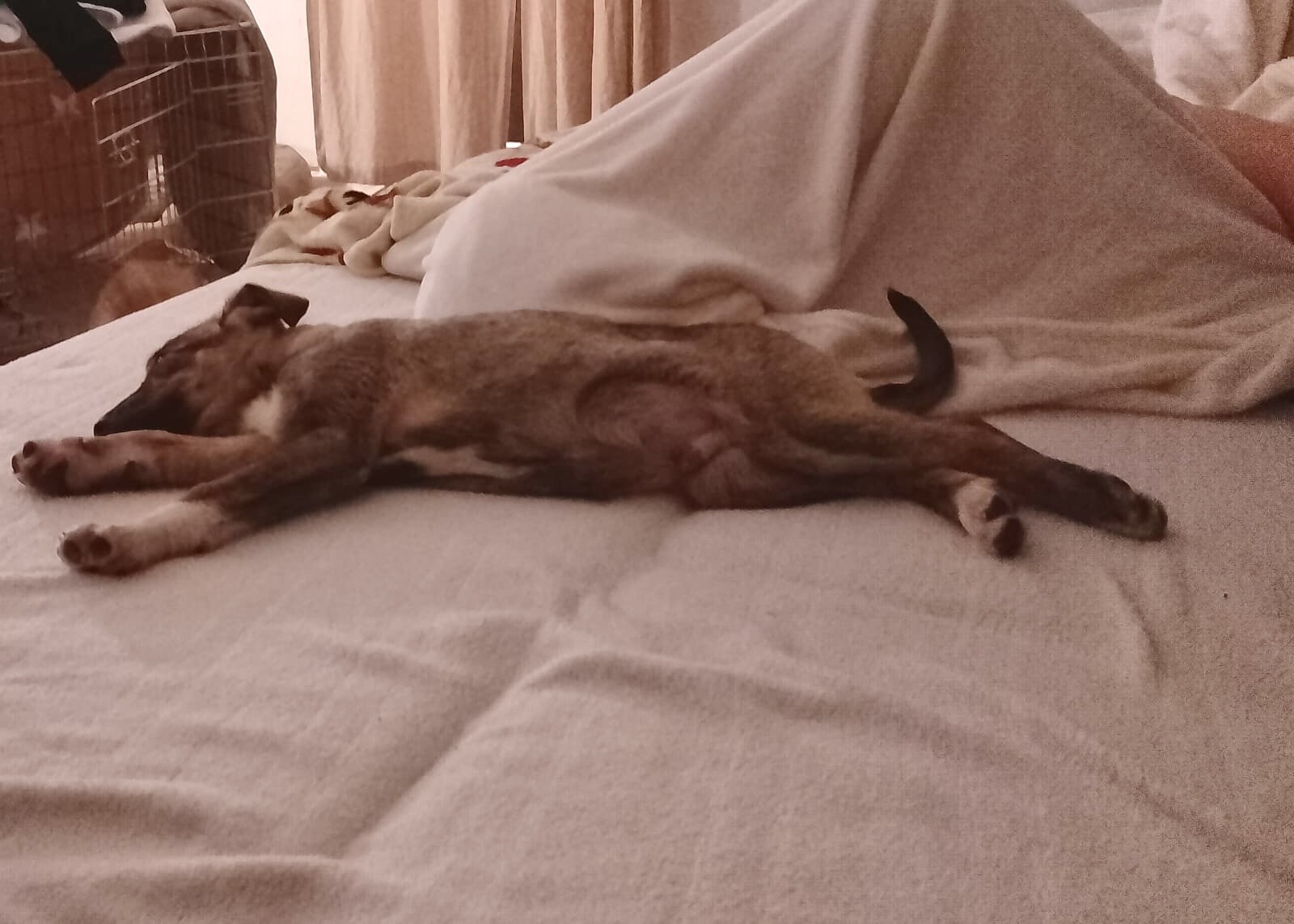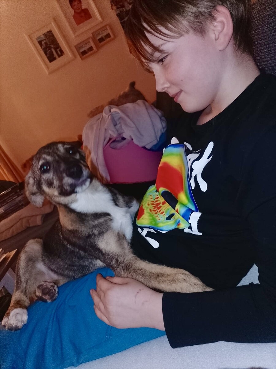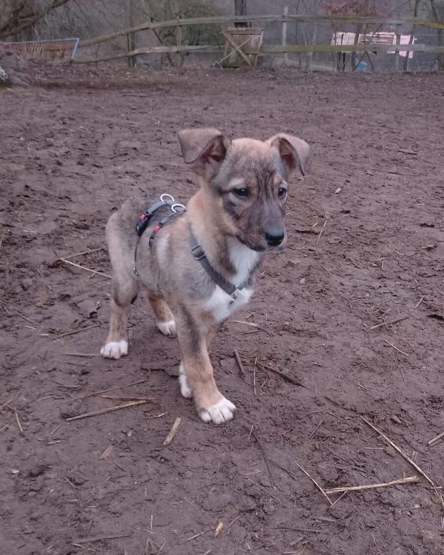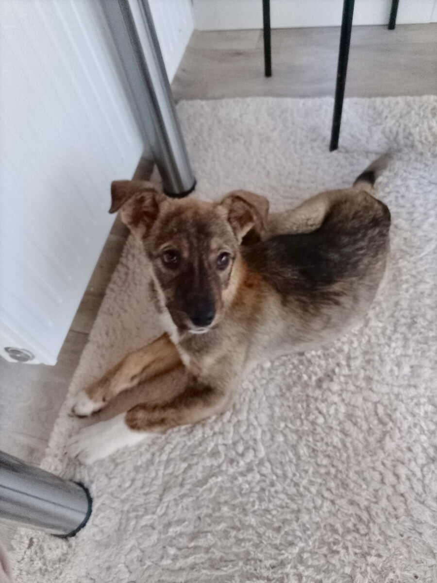 Seit Mitte Dezember 2025 lebt Kojak auf seiner Pflegestelle und darf dort zum ersten Mal in seinem Leben Geborgenheit und einen strukturierten Alltag kennenlernen. Diese neuen Erfahrungen nimmt er mit großer Begeisterung an. Er besucht bereits regelmäßig die Welpenschule und zeigt sich dabei lernwillig und aufmerksam. Das kleine Hunde-Einmaleins – Leinenlaufen, Stubenreinheit, Orientierung am Menschen – lernt er Schritt für Schritt.