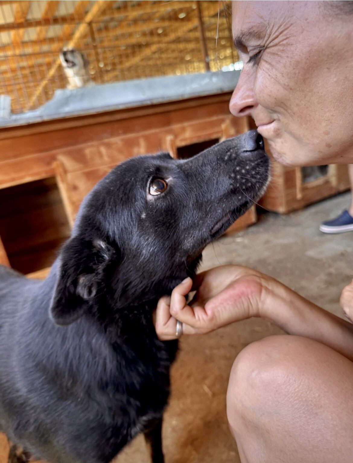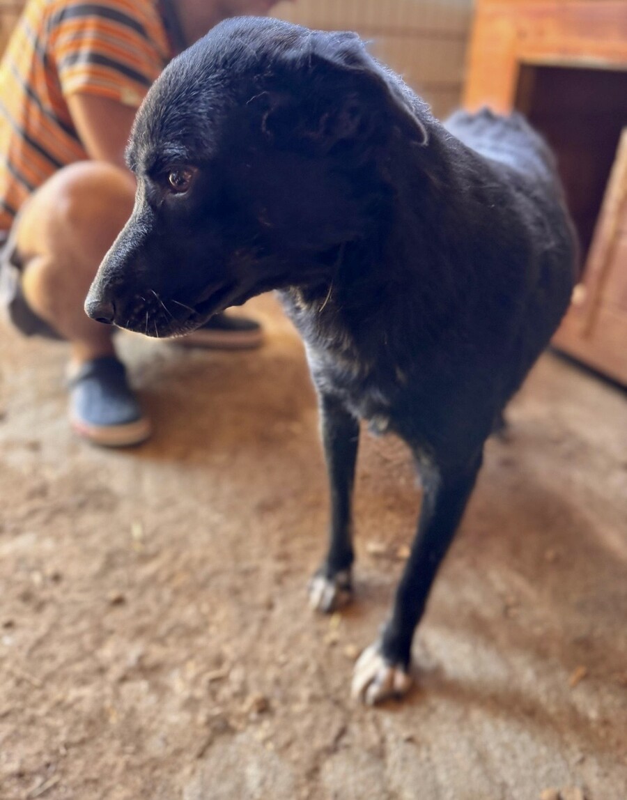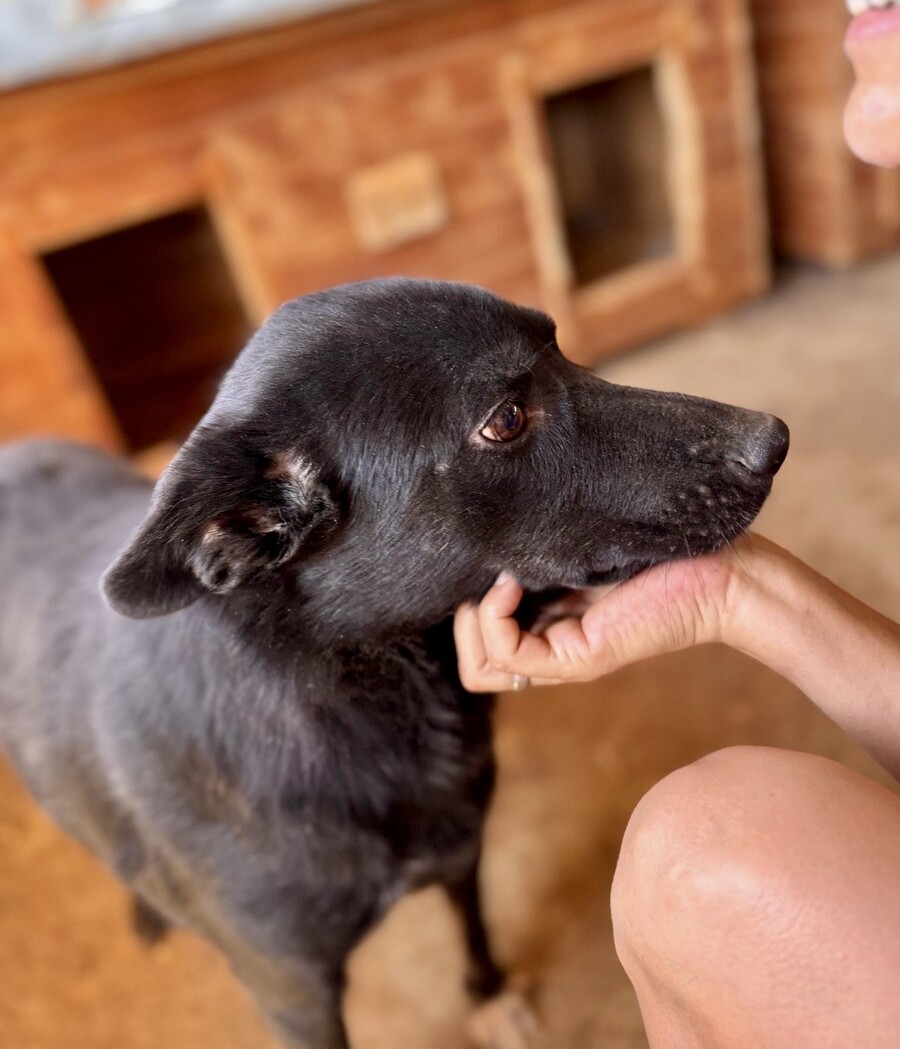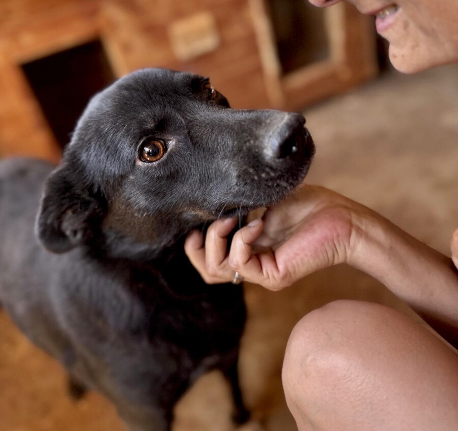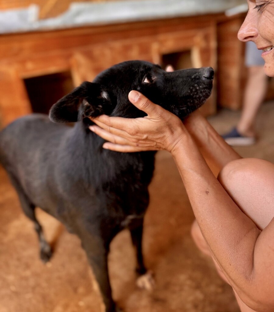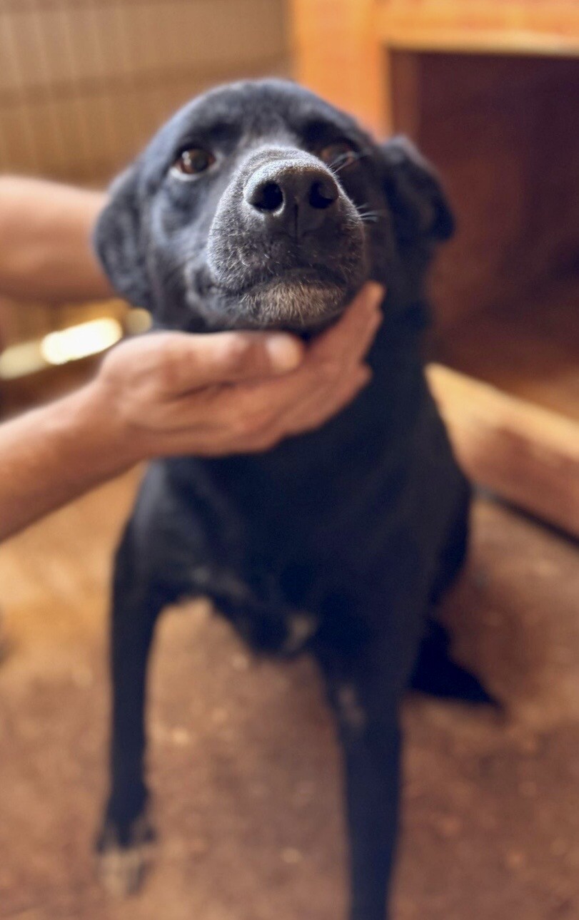 Heute lässt sie sich von ihrer Bezugsperson, dem Shelterbetreiber, umarmen und knuddeln. Sie genießt diese Nähe – vorsichtig, aber ehrlich. Man spürt, dass sie sich nach Zuwendung sehnt, auch wenn sie noch nicht jedem sofort vertraut. Blacky ist eine dieser jungen Hündinnen, die leise zeigen, wie viel Liebe in ihnen steckt.