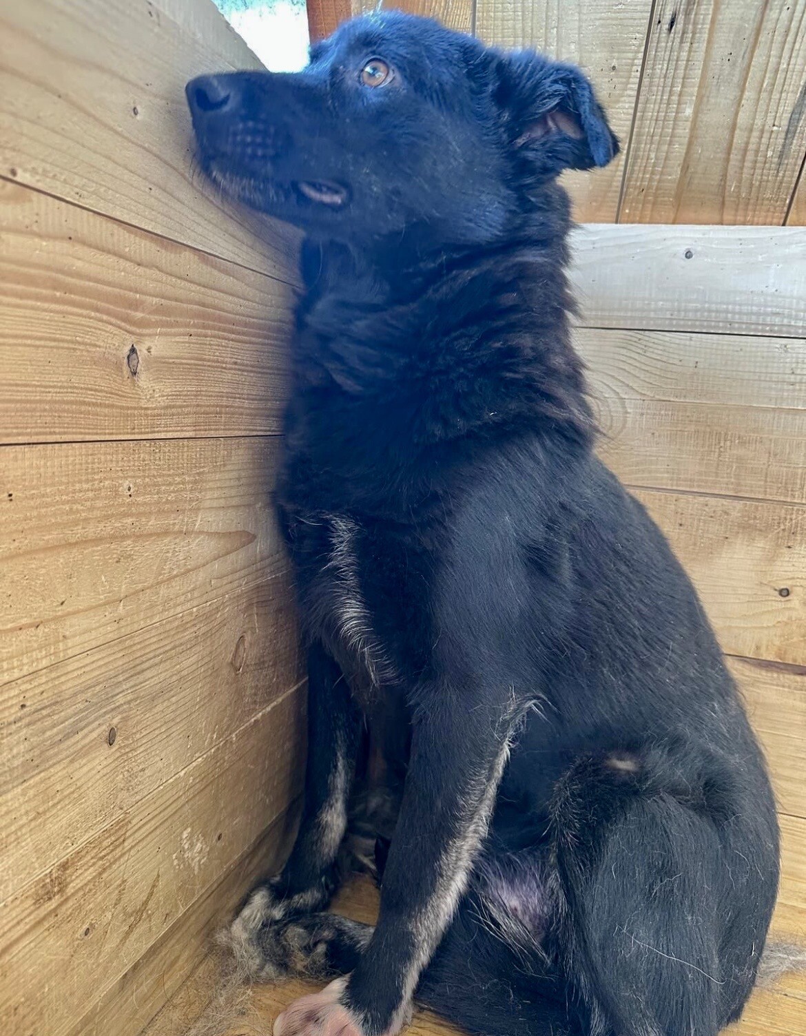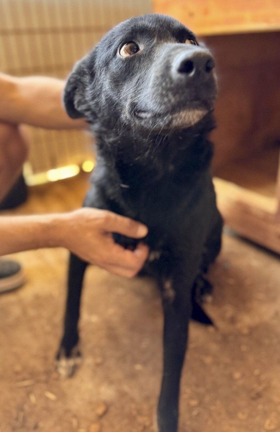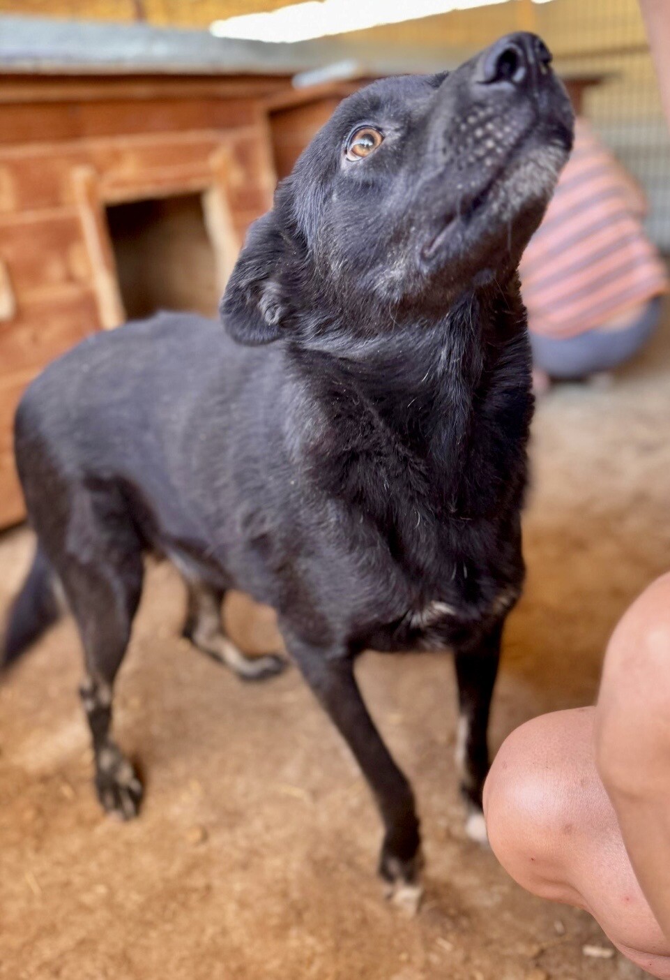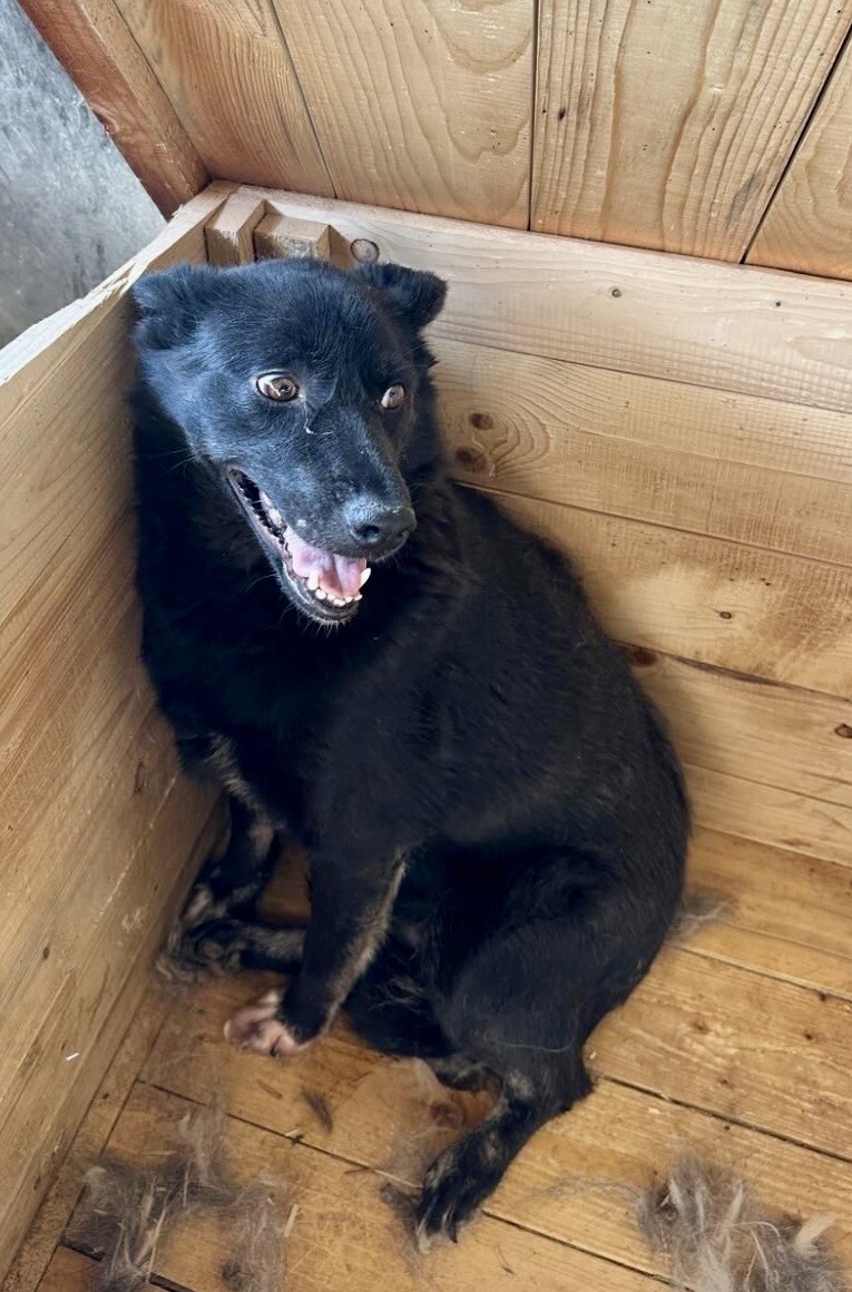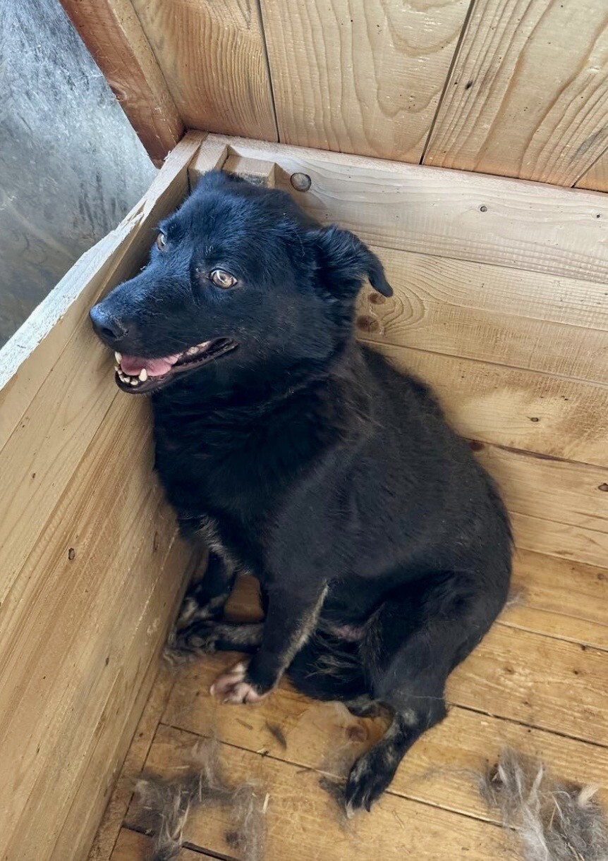 Heute lässt sie sich von ihrer Bezugsperson, dem Shelterbetreiber, umarmen und knuddeln. Sie genießt diese Nähe – vorsichtig, aber ehrlich. Man spürt, dass sie sich nach Zuwendung sehnt, auch wenn sie noch nicht jedem sofort vertraut. Blacky ist eine dieser jungen Hündinnen, die leise zeigen, wie viel Liebe in ihnen steckt.