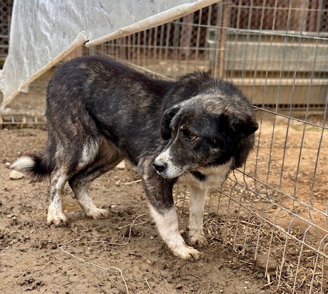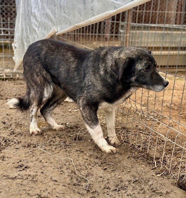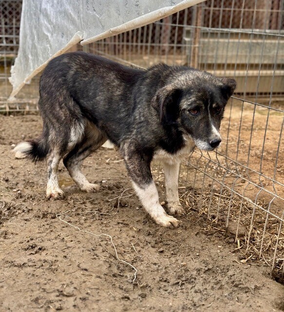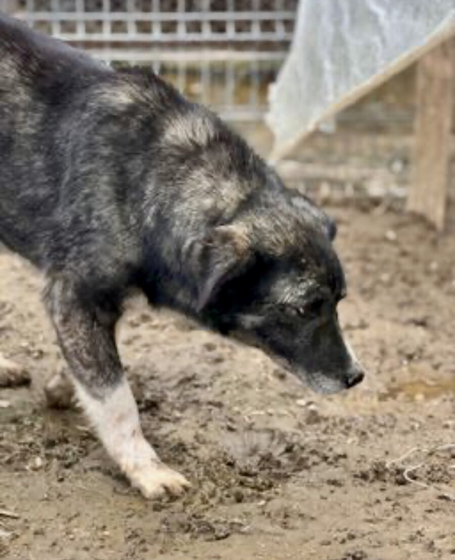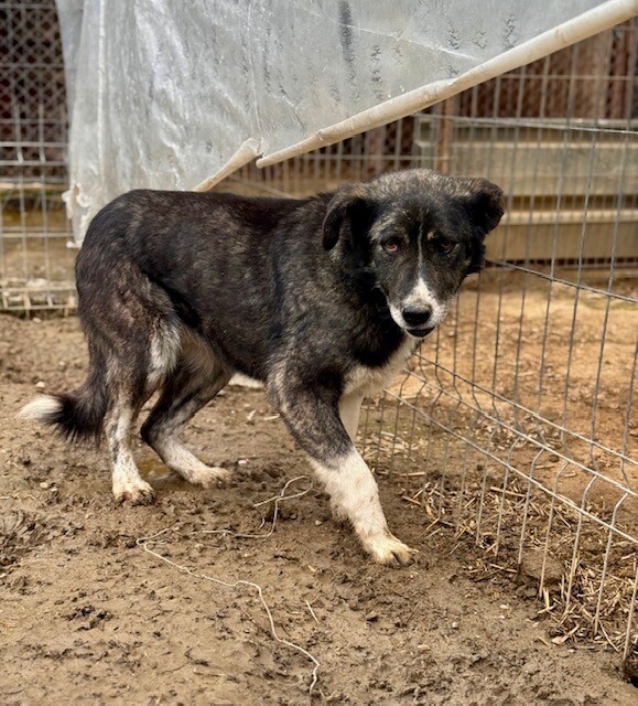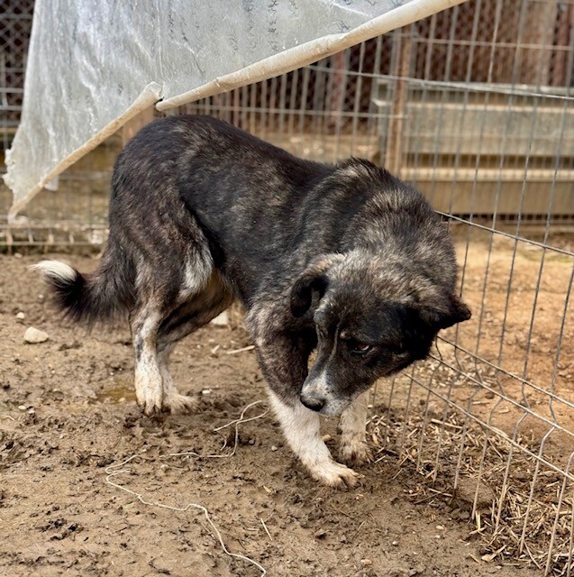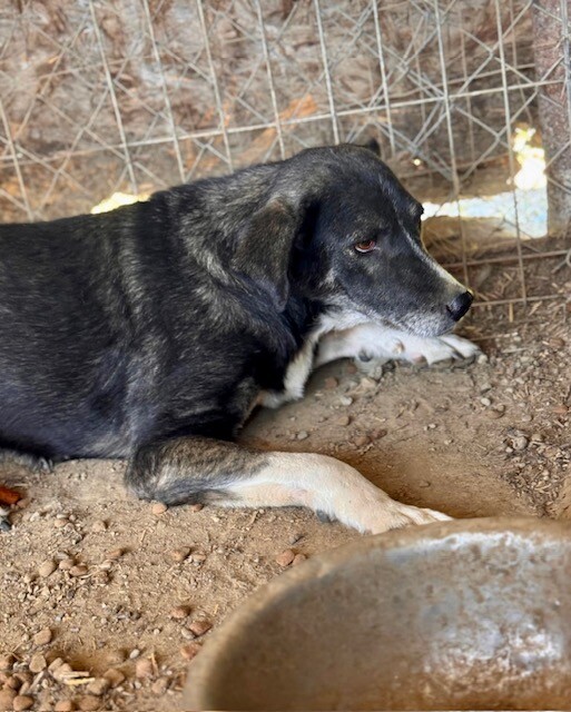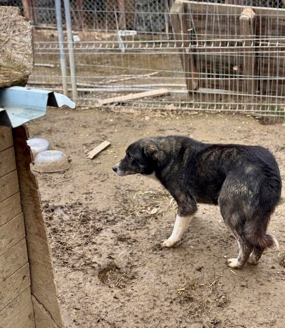 Betty (geb. 2017) gehört zu den Hunden aus der großen Targu‑Jiu‑Rettung im Juni 2023. Sie ist eine stille, vorsichtige Seele, die Zeit, Ruhe und einfühlsame Menschen braucht. Bei Besuchern zieht sie sich zunächst zurück und sucht Schutz hinter ihrer Hütte – ein Verhalten, das zeigt, wie sehr sie gelernt hat, sich selbst zu schützen.