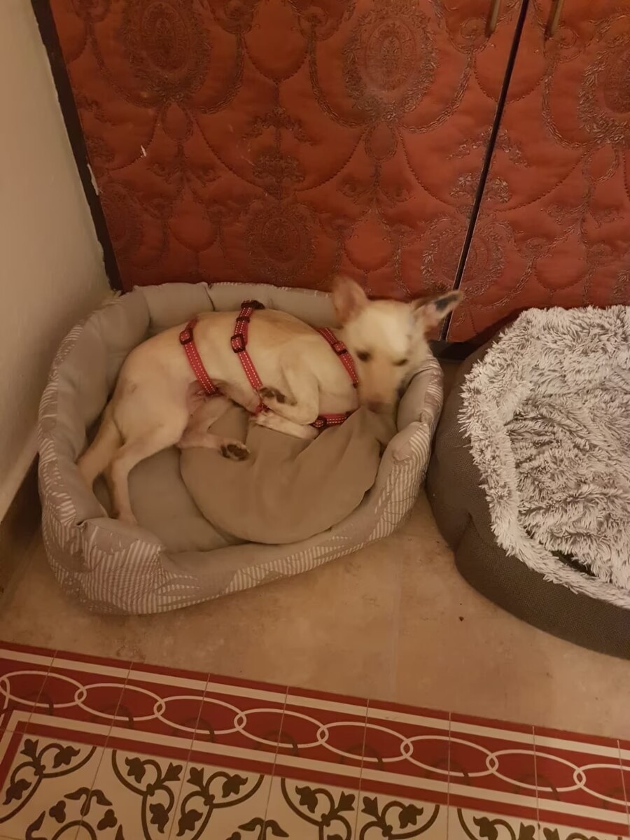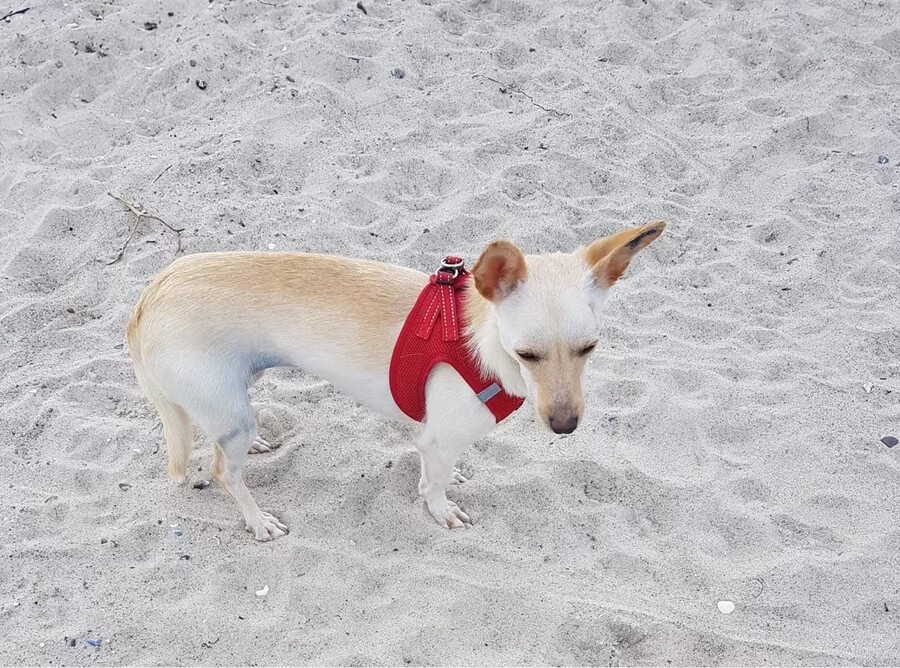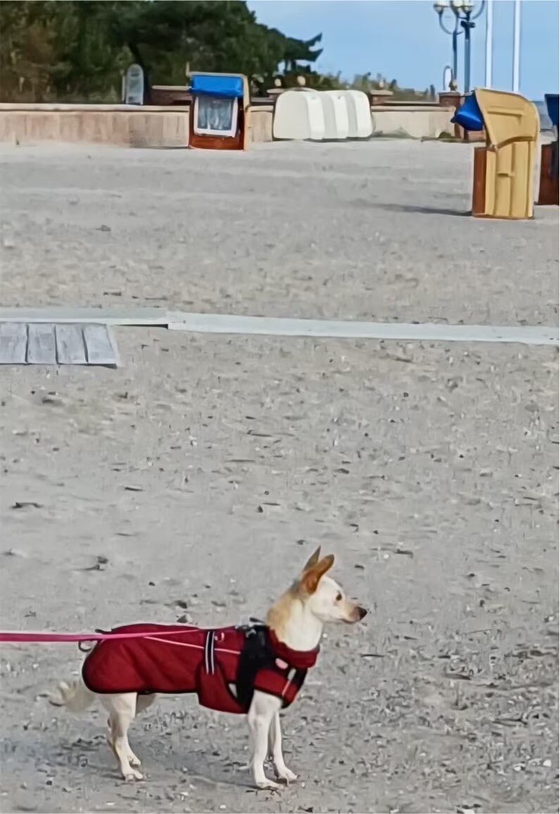 Athena hatte das Glück vor kurzer Zeit auf ihre Pflegestelle bei Grömitz ziehen zu dürfen . Die zarte Hündin hat die erste Zeit ihres Lebens nicht viel Gutes erleben dürfen . Umso mehr freuen wir uns nun für sie das sie bei unserer Helga nun auf ihr zukünftiges Leben vorbereitet wird bevor sie nun in ihr endgültiges Zuhause ziehen darf .